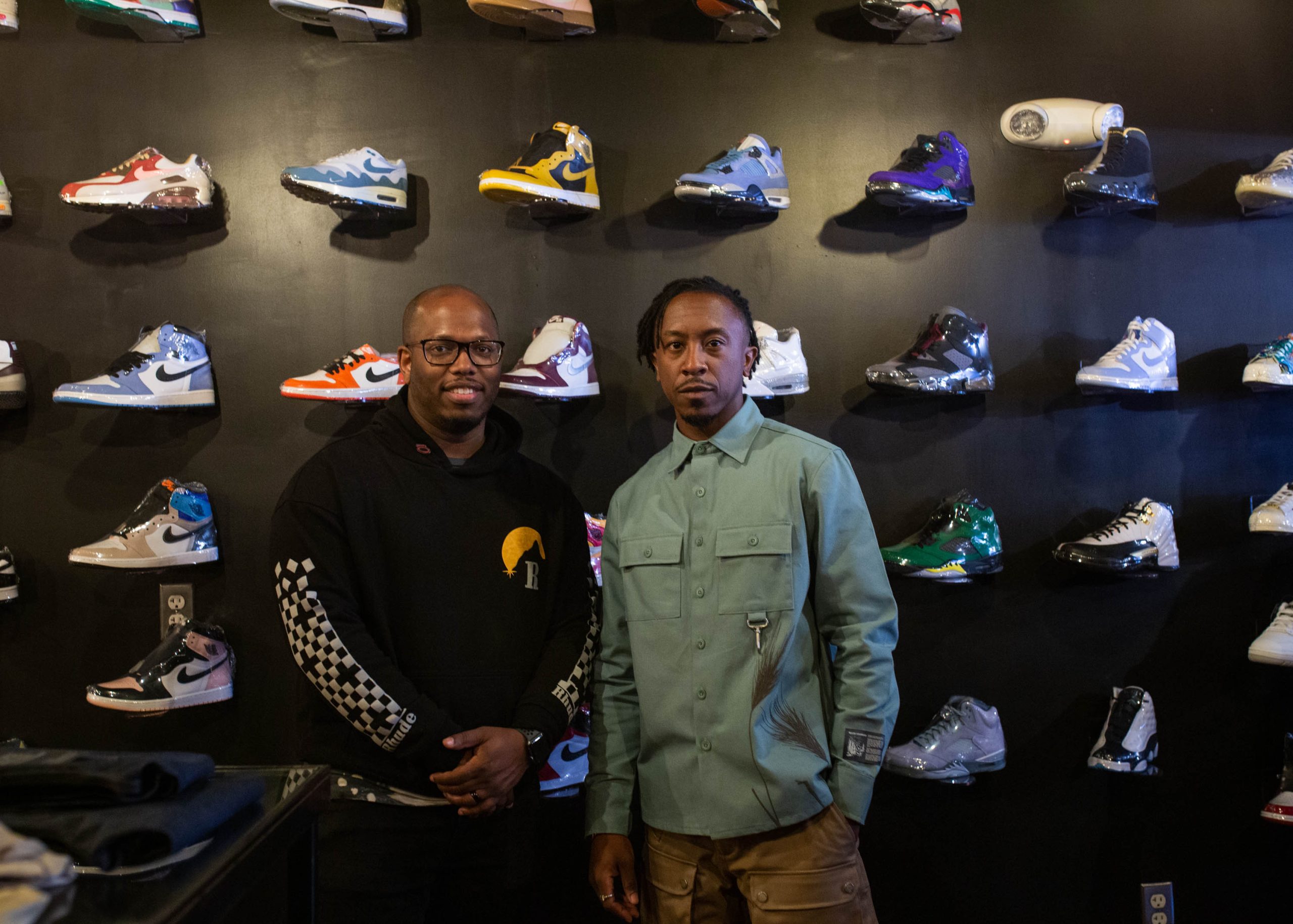 Antonio Forte II and Lee Grant Allen, co-owners of the new store BAU-HOUSE, pose for a photo during their grand opening on June 18, 2022, as part of the Black Buckham Juneteenth Celebration event. (KT Kanazawich | Flint Beat)