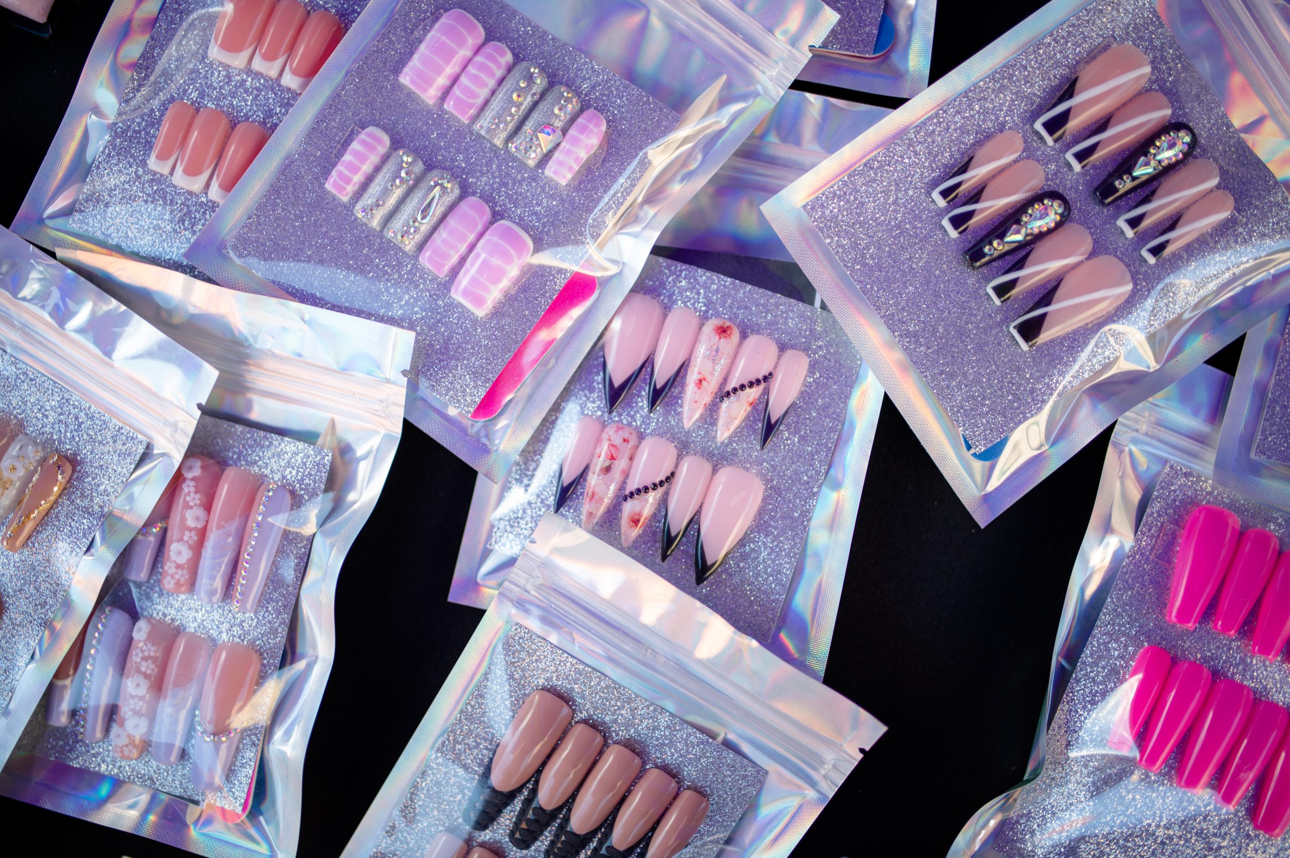 Nails rest on the table of Pure Made By Daveena, a beauty products shop owned by Daveena James, during Glizzy Fest in Downtown Flint, Mich. on August 6, 2022. (Michael Indriolo | Flint Beat)