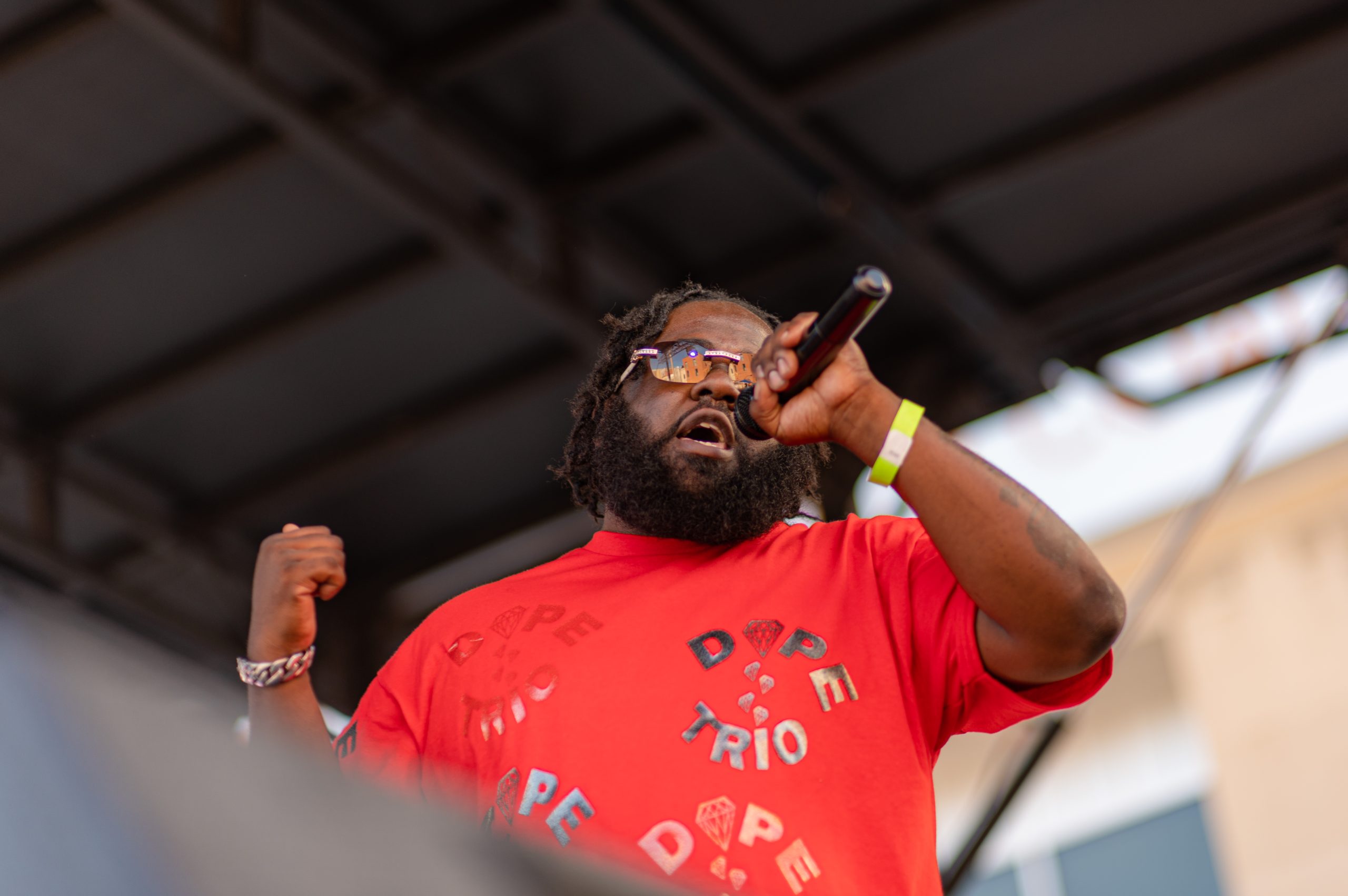 Flint-based rapper Solidified Dee performs during Glizzy Fest in Downtown Flint, Mich. on August 6, 2022. (Michael Indriolo | Flint Beat)