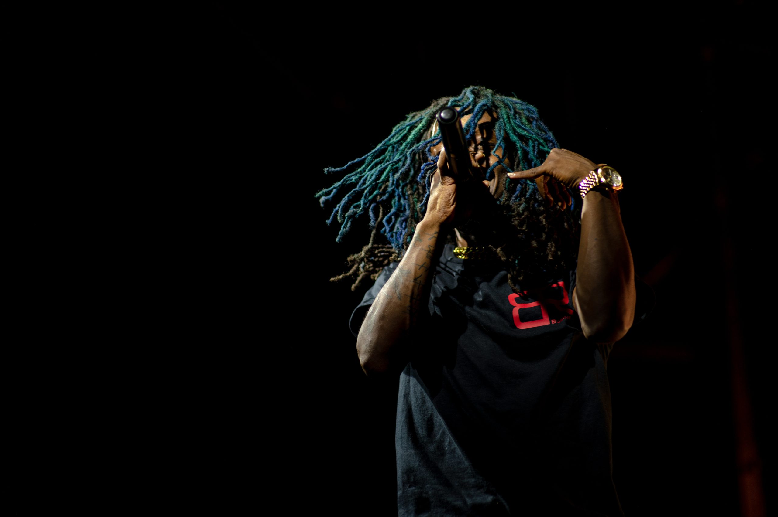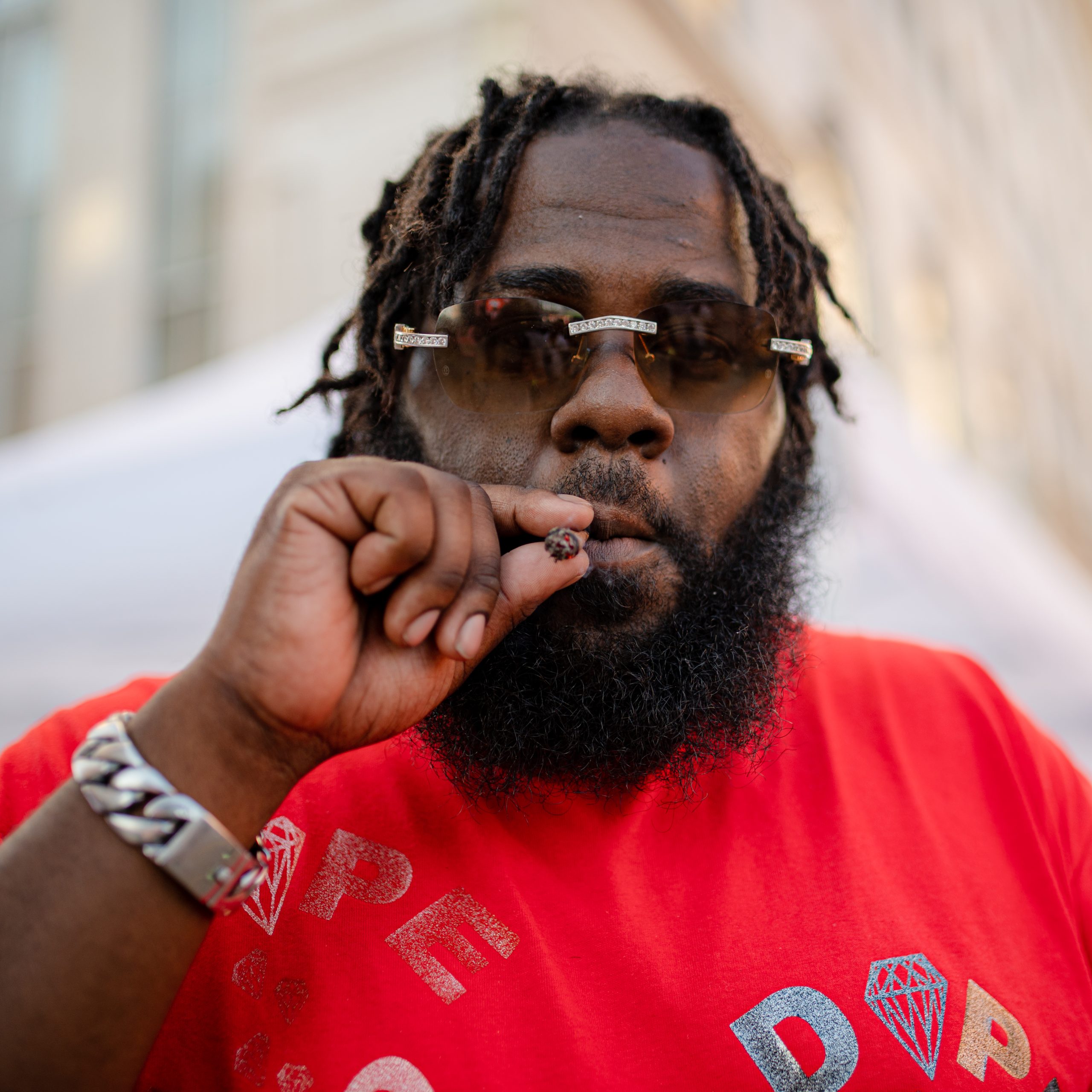 Flint-based rapper Trio Gang JJFLI performs during Glizzy Fest in Downtown Flint, Mich. on August 6, 2022. (Michael Indriolo | Flint Beat)Flint-based rapper Triogang JJFLI smokes a blunt after performing at Glizzy Fest in Downtown Flint, Mich. on August 6, 2022. (Michael Indriolo | Flint Beat)