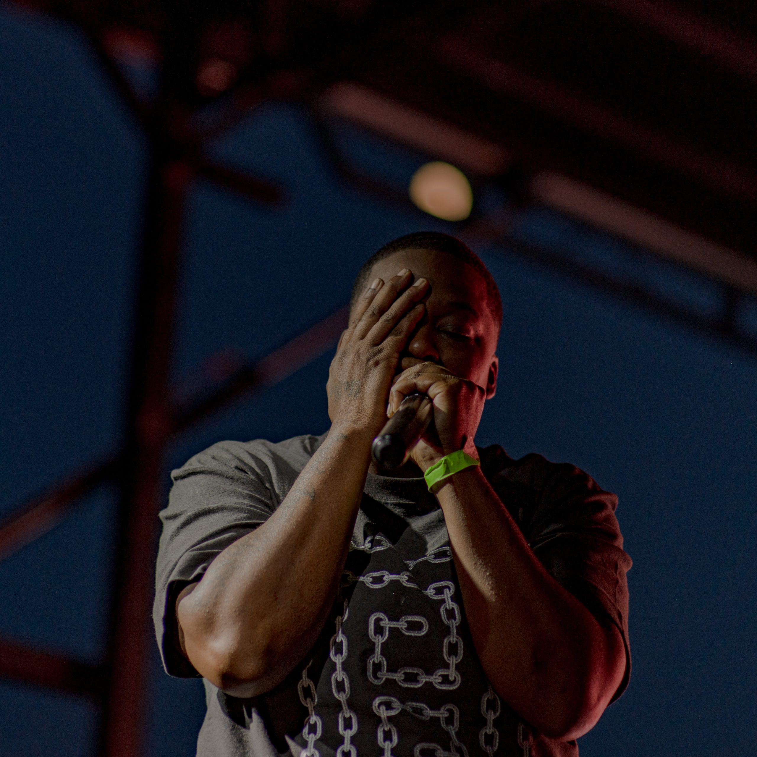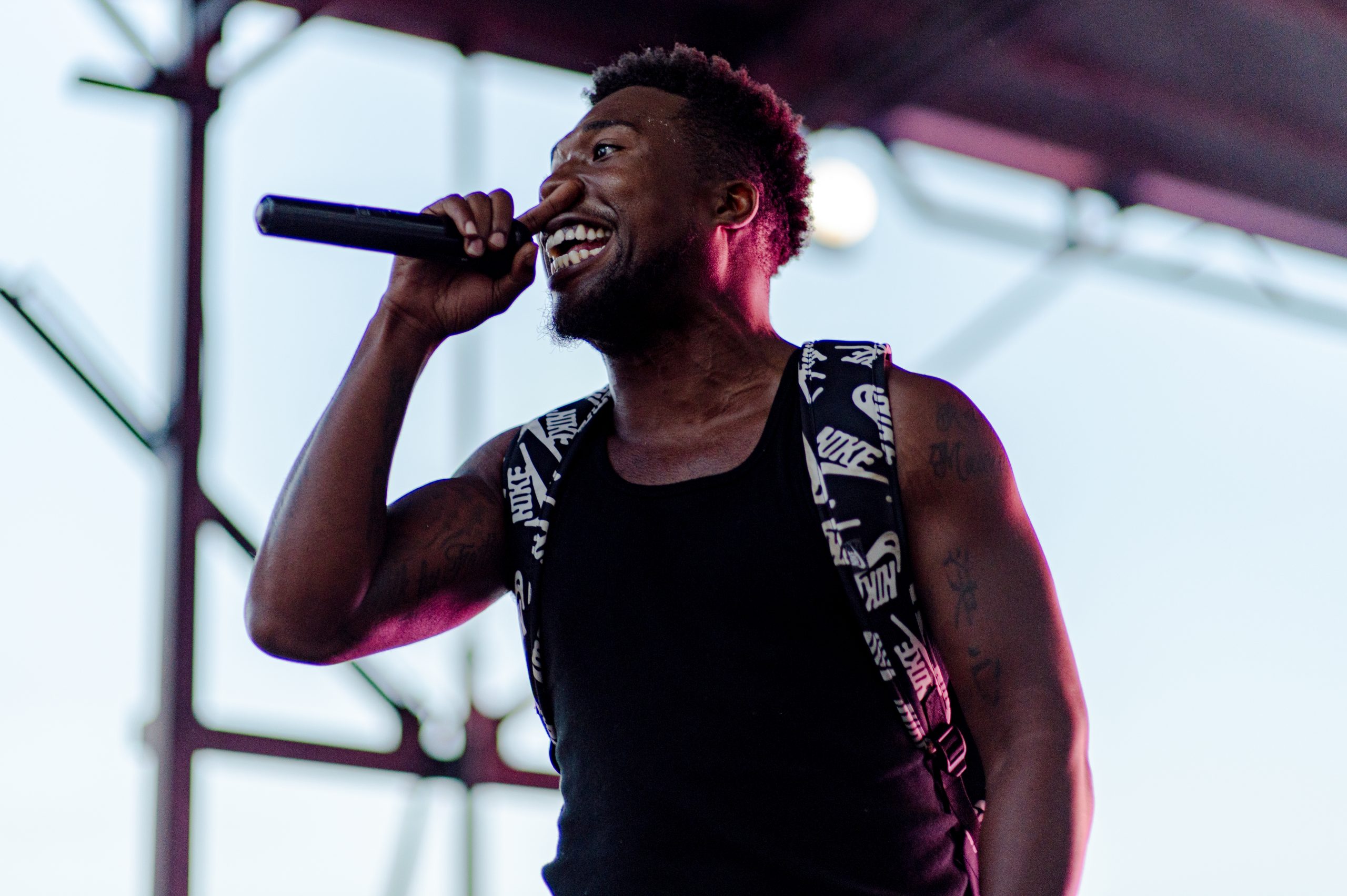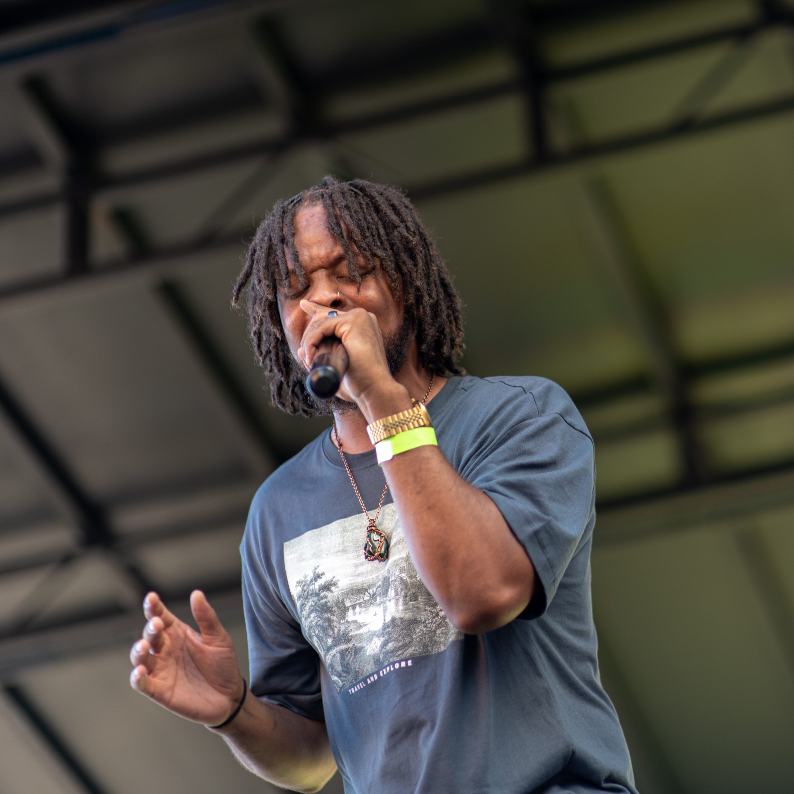 Flint-based musician Jurell poses for a portrait during Glizzy Fest in Downtown Flint, Mich. on August 6, 2022. (Michael Indriolo | Flint Beat)