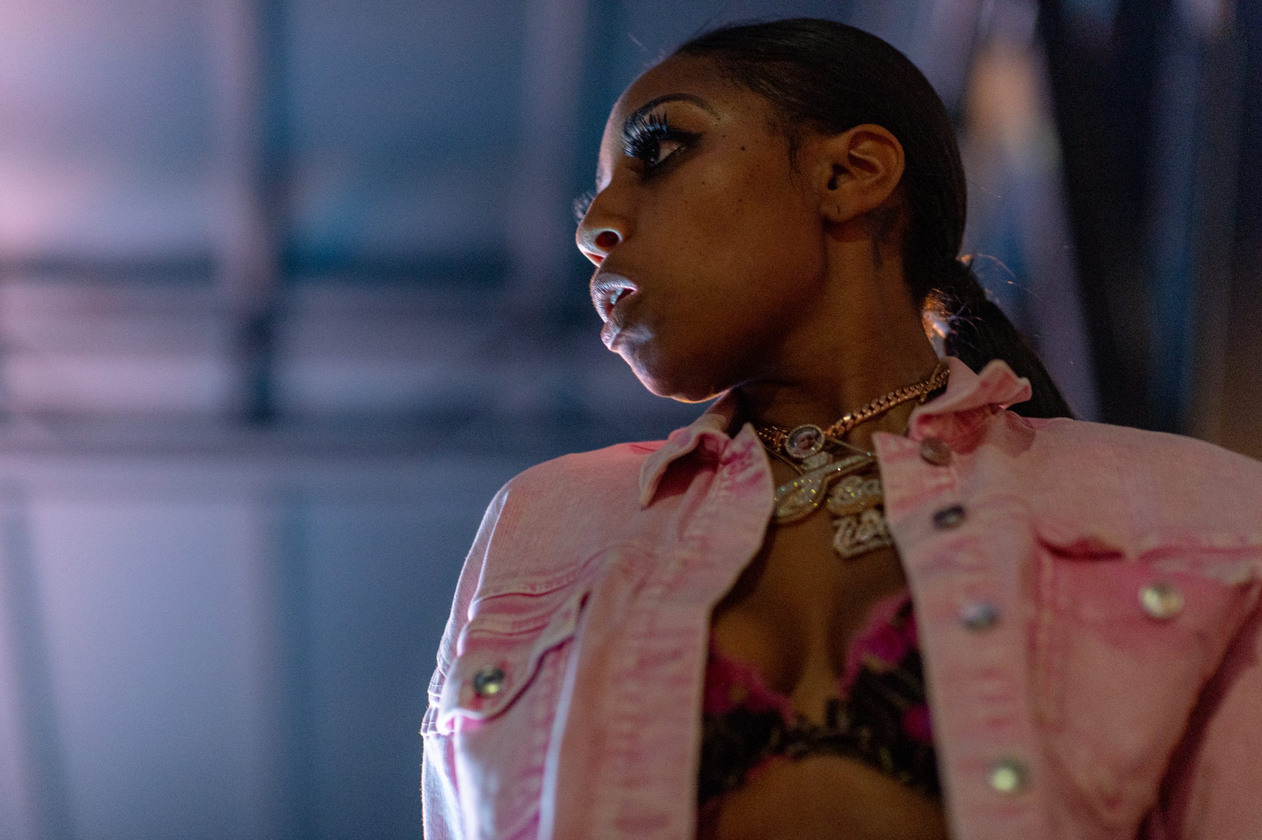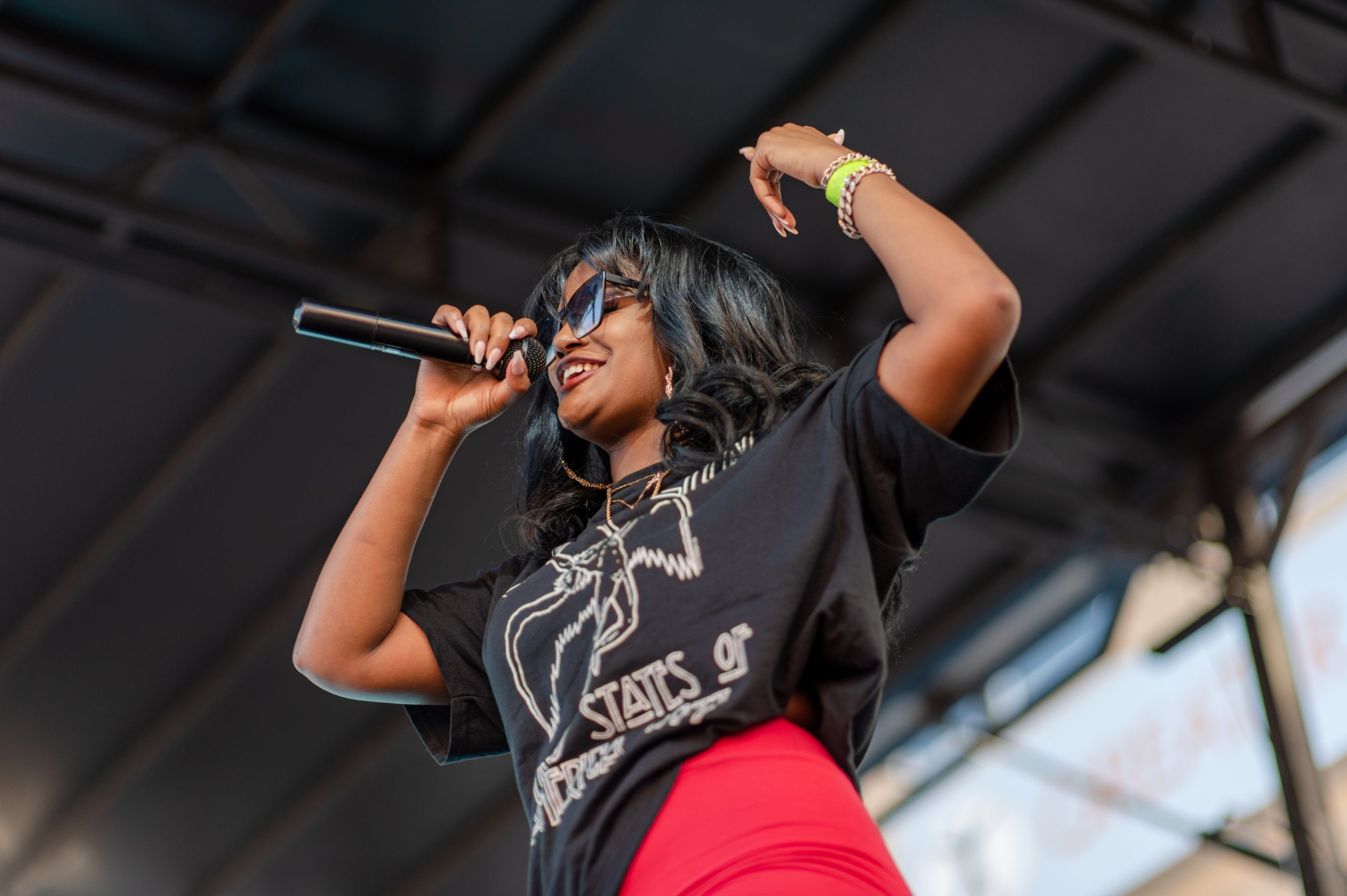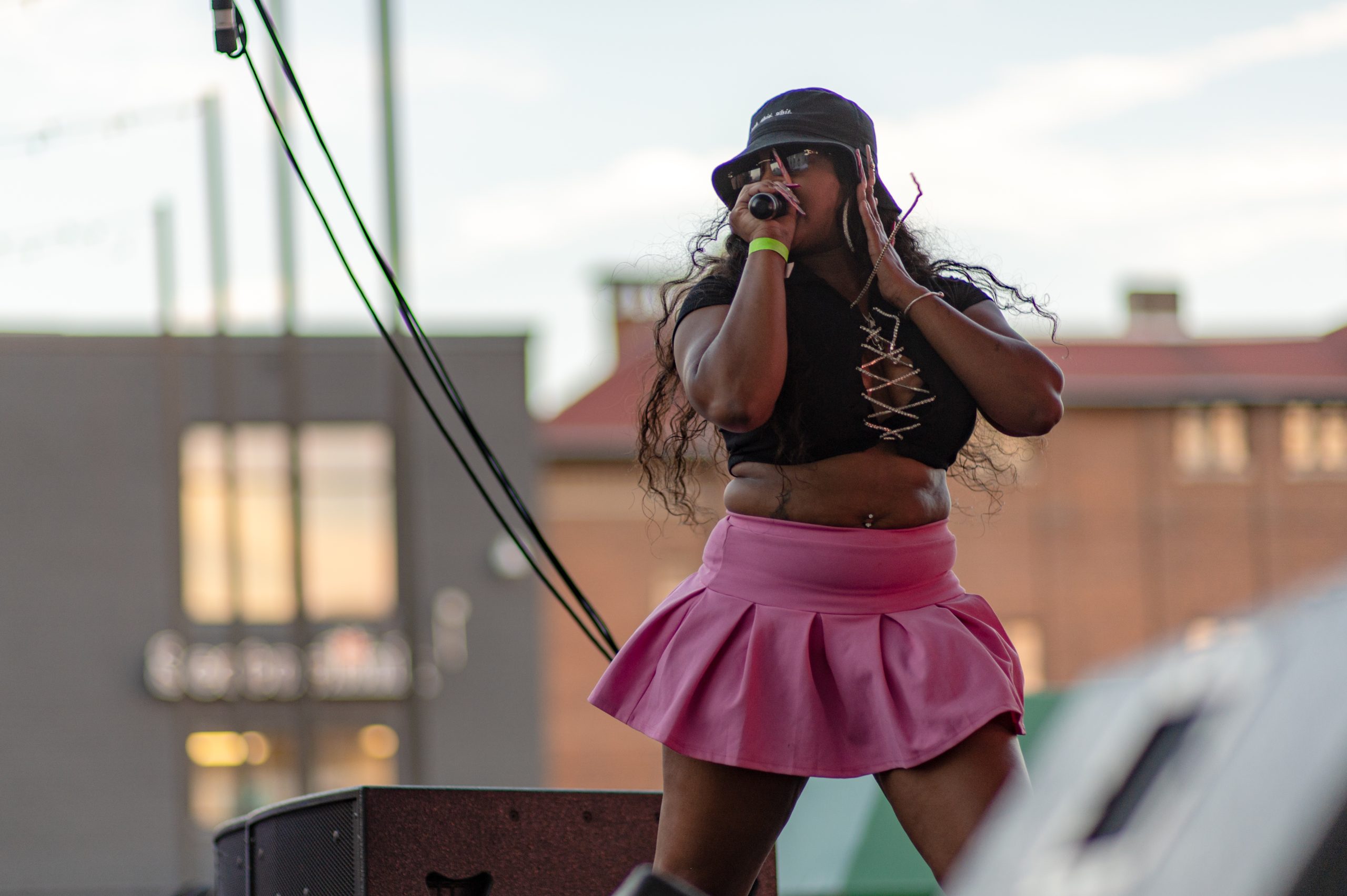 Flint-based rapper Tiera Santoya performs during Glizzy Fest in Downtown Flint, Mich. on August 6, 2022. (Michael Indriolo | Flint Beat)