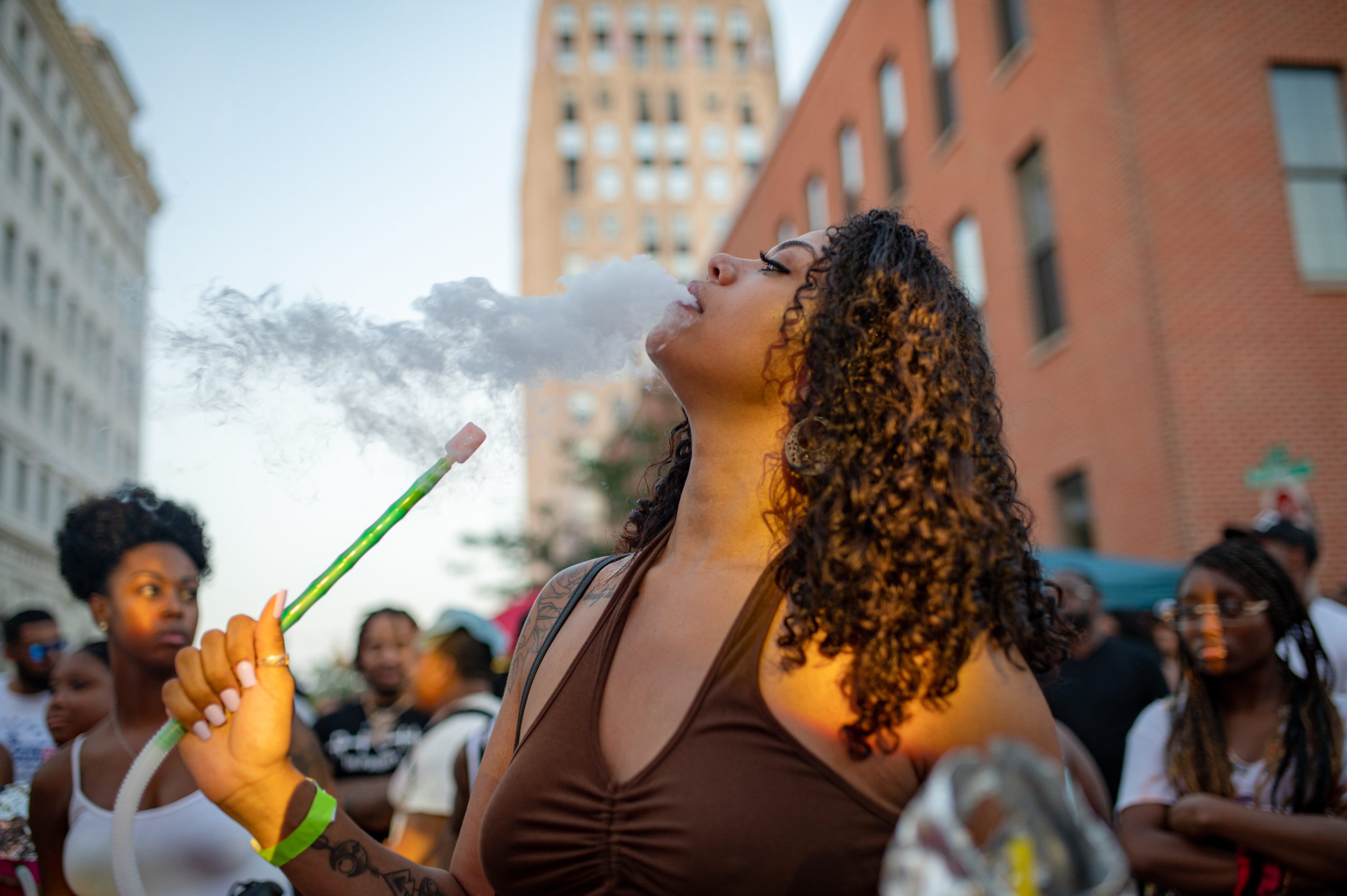 Festival attendees watch Flint-based rapper DFFrnt perform at Glizzy Fest in Downtown Flint, Mich. on August 6, 2022. (Michael Indriolo | Flint Beat)Toyedda Williams dances during Glizzy Fest in Downtown Flint, Mich. on August 6, 2022. (Michael Indriolo | Flint Beat)Flint-based rapper YBG Travo performs during Glizzy Fest in Downtown Flint, Mich. on August 6, 2022. (Michael Indriolo | Flint Beat)Flint-based rapper FTL Quey performs during during Glizzy Fest in Downtown Flint, Mich. on August 6, 2022. (Michael Indriolo | Flint Beat)Trudie Bruce blows smoke from a portable hookah during Glizzy Fest in Downtown Flint, Mich. on August 6, 2022. (Michael Indriolo | Flint Beat)
