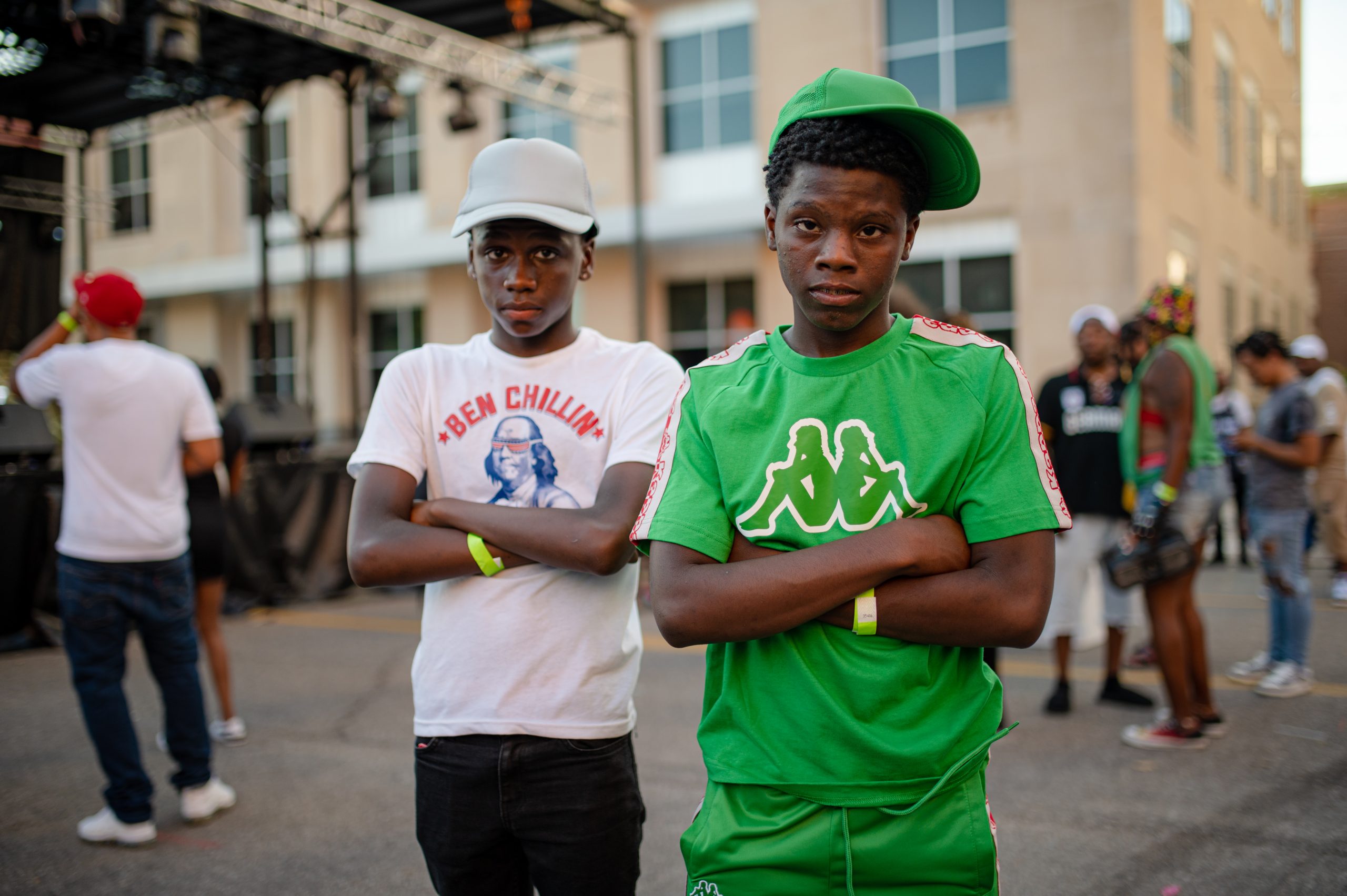 TayTripp and Christian pose for a portrait during Glizzy Fest in Downtown Flint, Mich. on August 6, 2022. (Michael Indriolo | Flint Beat)