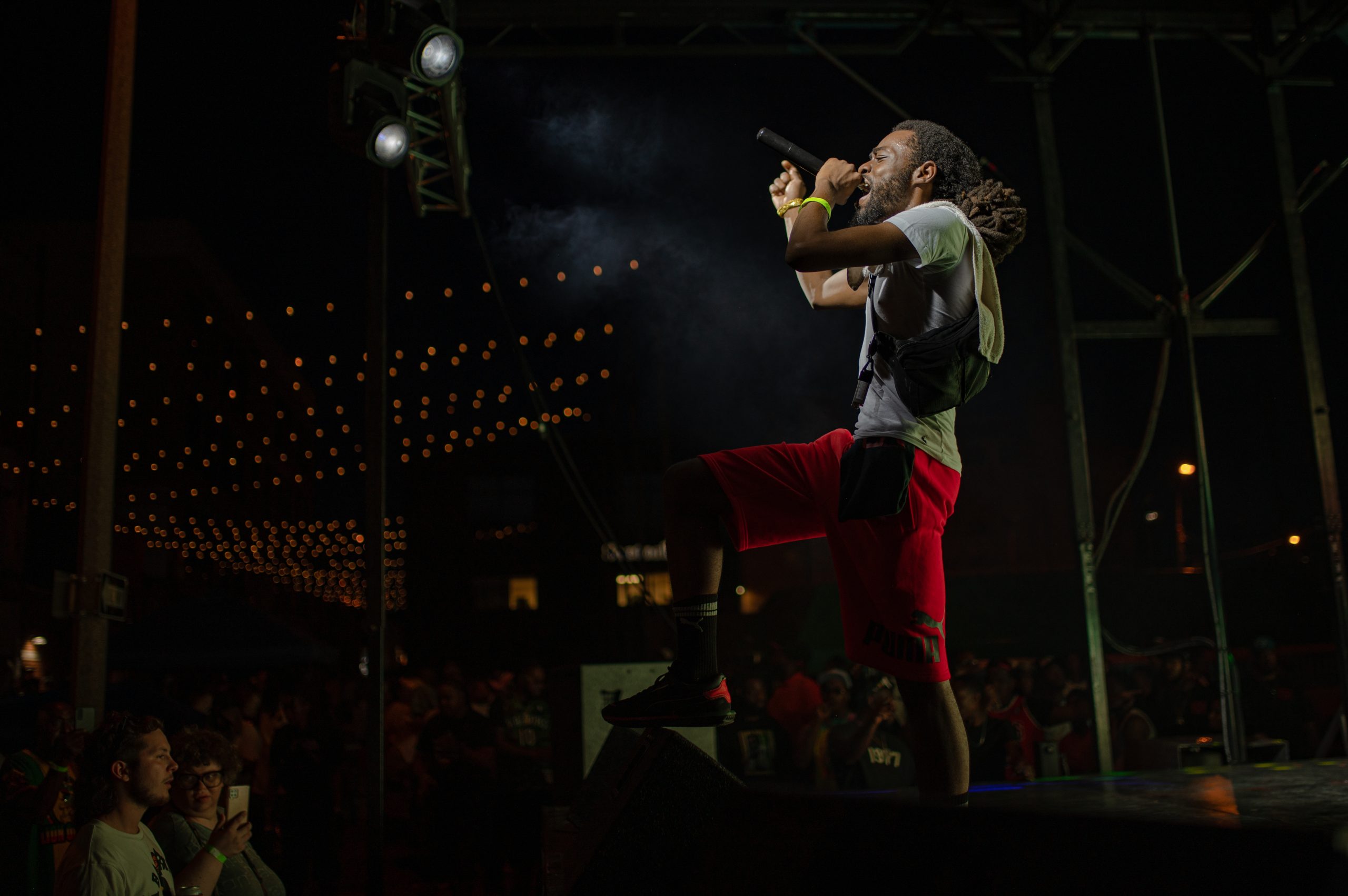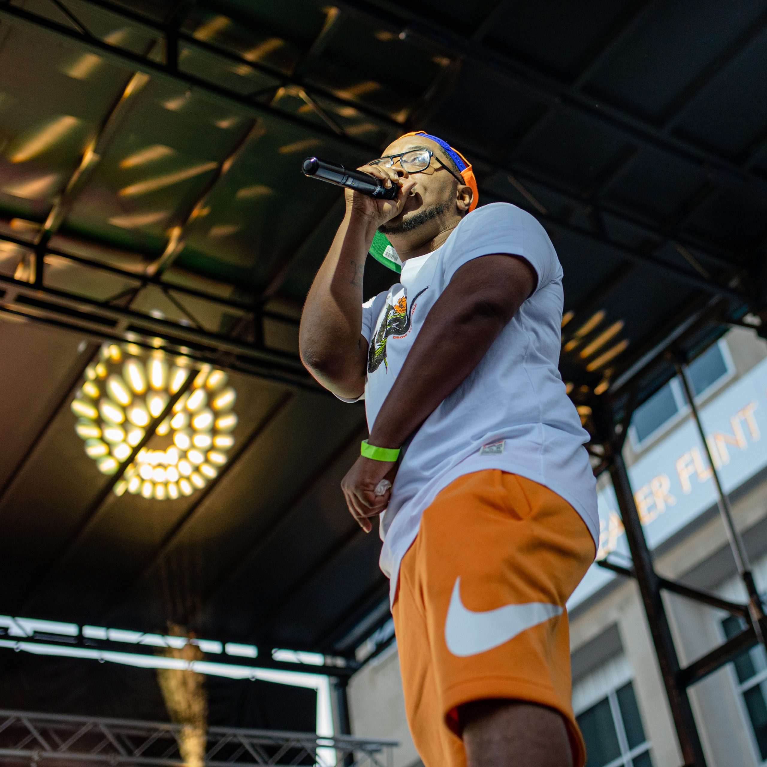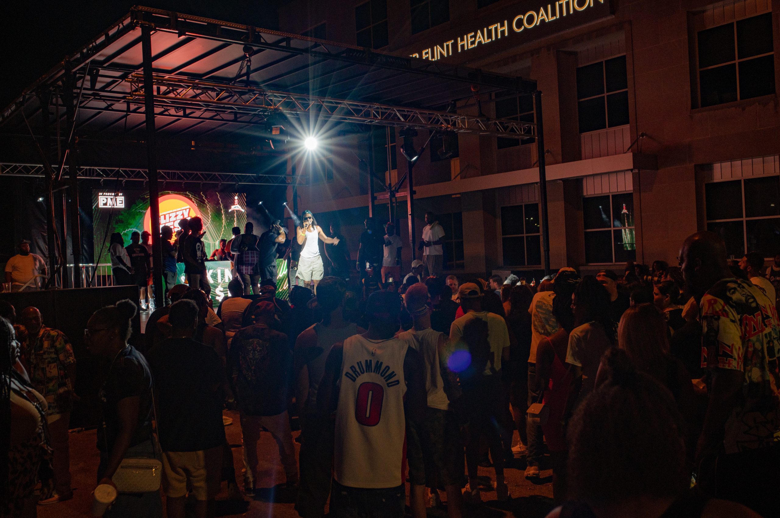 A festival attendee watches Jeff Skigh perform during Glizzy Fest in Downtown Flint, Mich. on August 6, 2022. (Michael Indriolo | Flint Beat)Flint-based rapper Twicee performs during Glizzy Fest in Downtown Flint, Mich. on August 6, 2022. (Michael Indriolo | Flint Beat)Flint-based rapper King Ca$hes sparks a blunt on stage during Glizzy Fest in Downtown Flint, Mich. on August 6, 2022. (Michael Indriolo | Flint Beat)