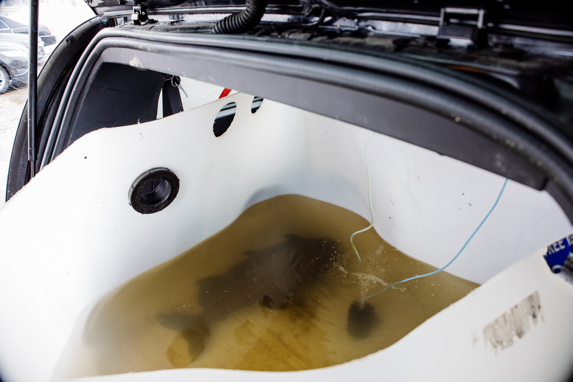 But on this chilly Sunday, he was in a plastic tub en route to a 3,000-gallon tank three hours away in Strongsville.