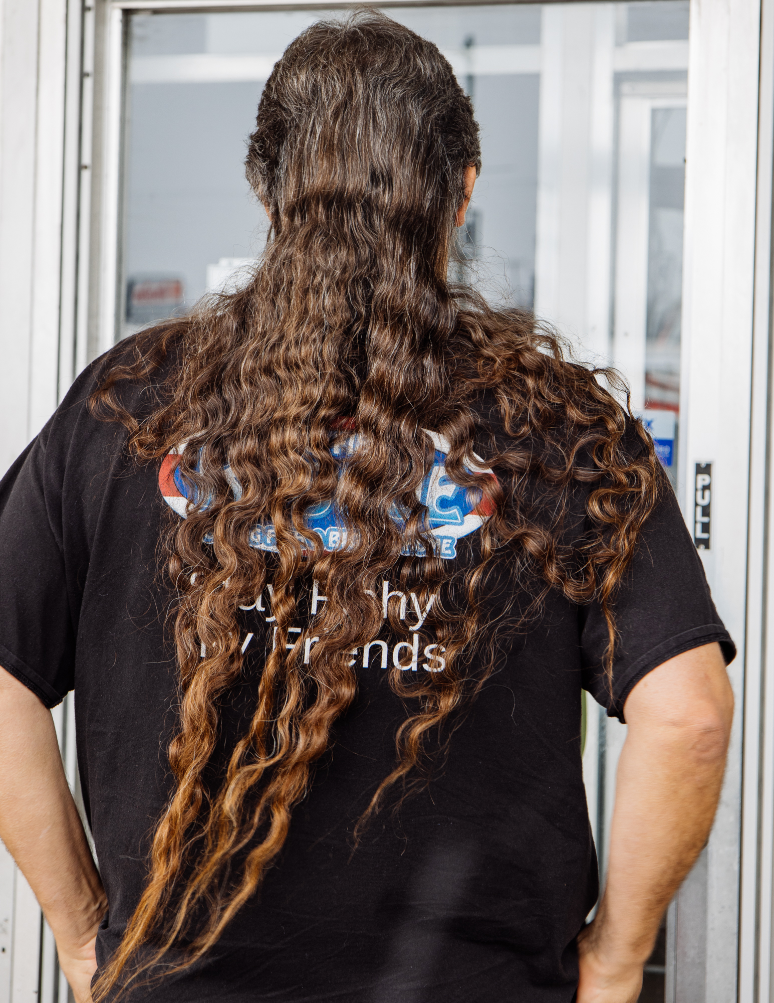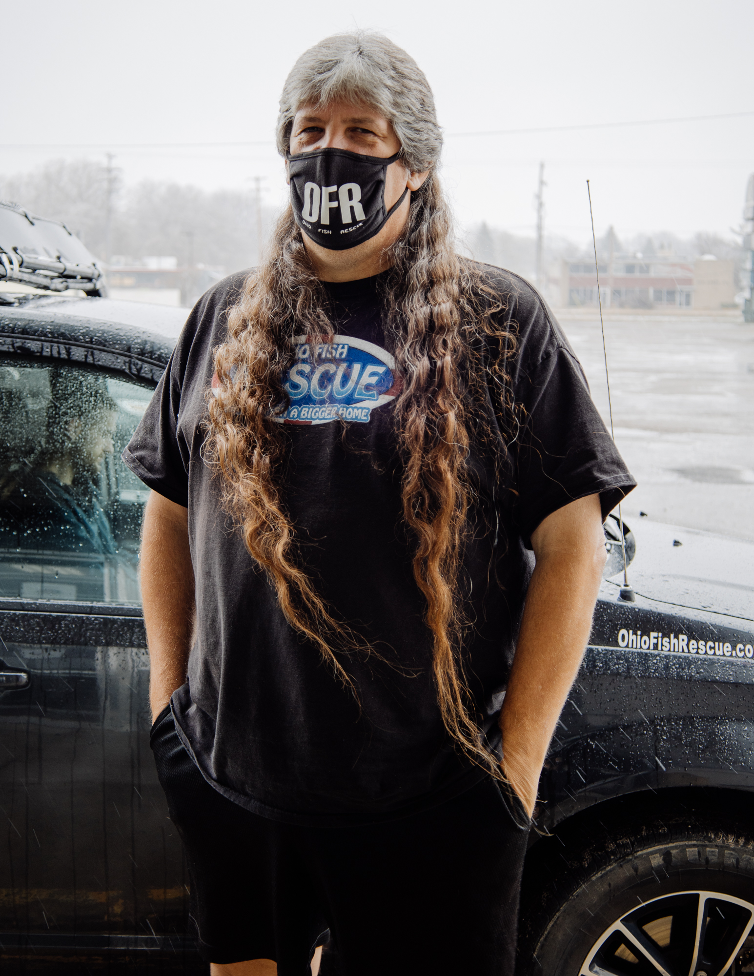 Price, originally from Florida, and dressed like that’s where he was headed, came to retrieve the fish sporting an “Ohio Fish Rescue” T-shirt, shorts, and sandals. His hair comes down to his waist, but not all of it– short in the front, and long in the back, but not to be referred to as a mullet under any circumstances.