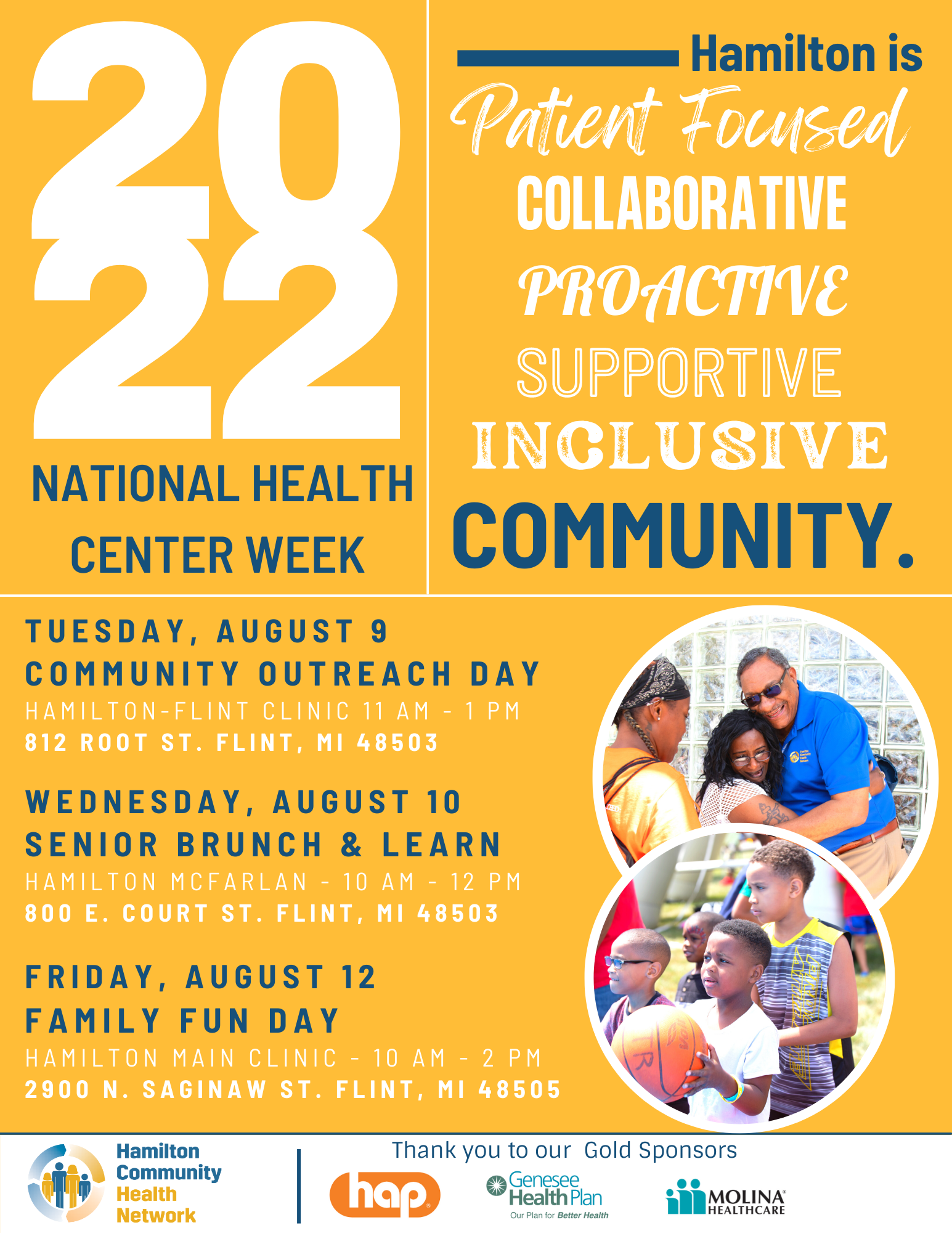 Flint, MI—Beginning on Aug. 9, 2022, the Hamilton Community Health Network will be hosting a series of events for the annual National Health Center Week.