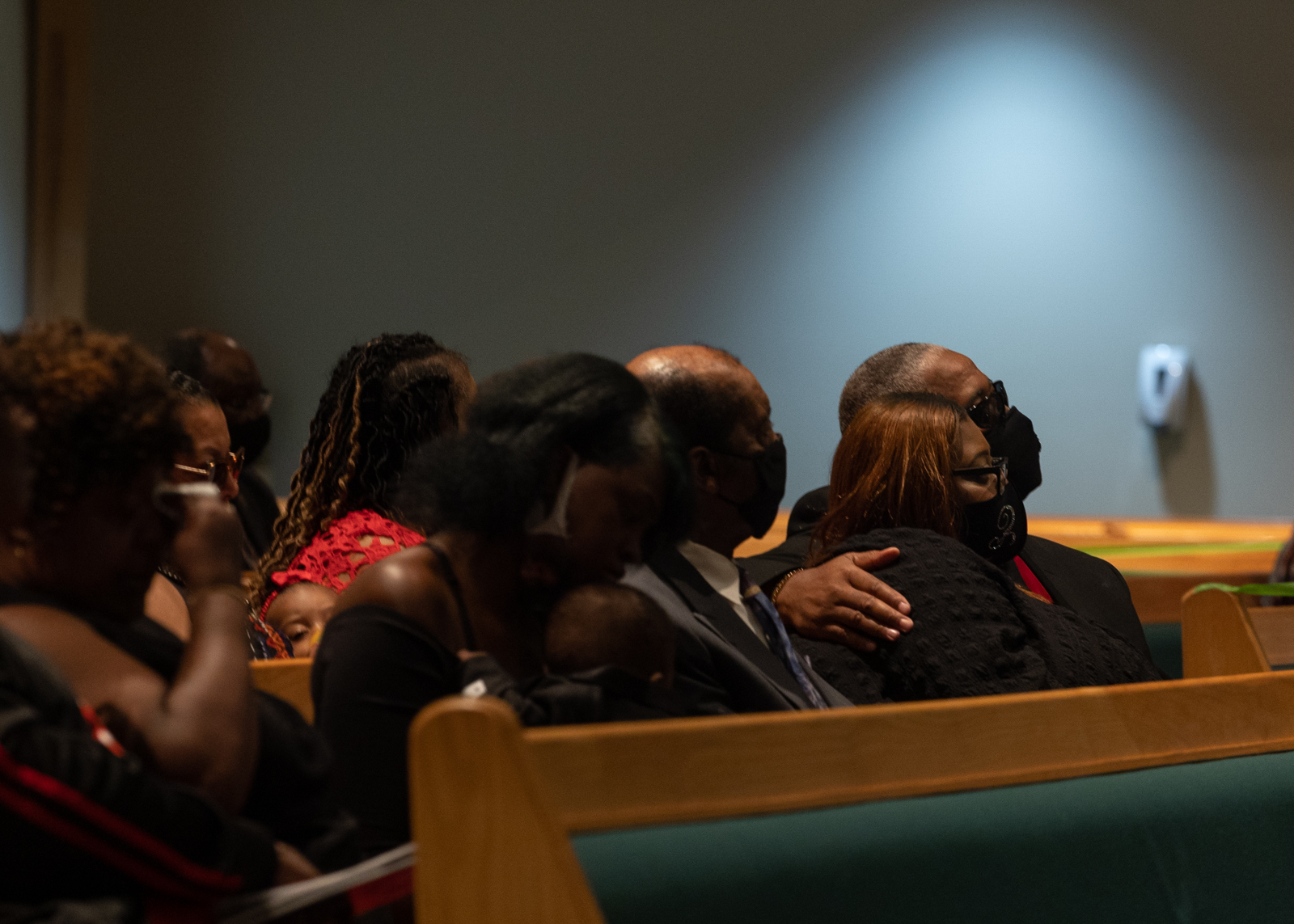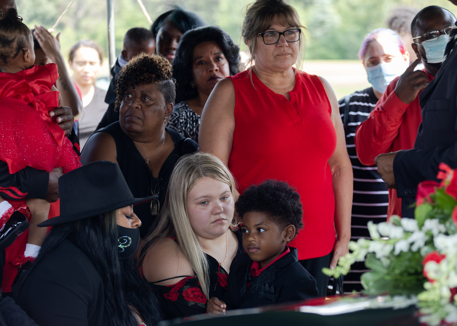 He walked Chereathe to her seat. She took a tissue someone offered her and, as she wiped her eyes, Elvin Sr. returned to his son’s casket.