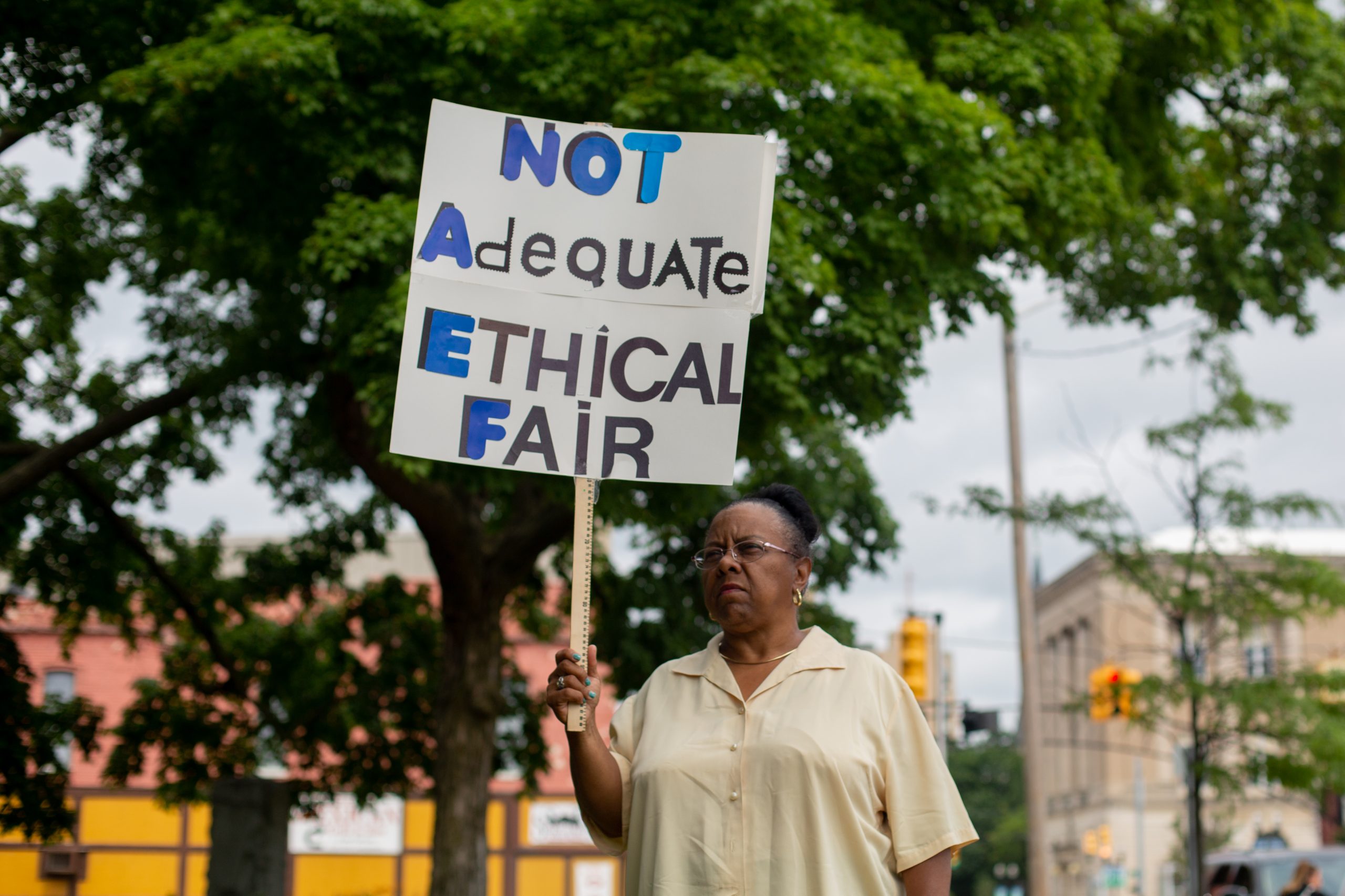 Flint resident Connie Edwards, 68, attended a protest against a water crisis settlement on July 13, 2021. According to Edwards, she had a niece who died and two nephews who were affected by the water crisis, which inspired her to join the protest.
