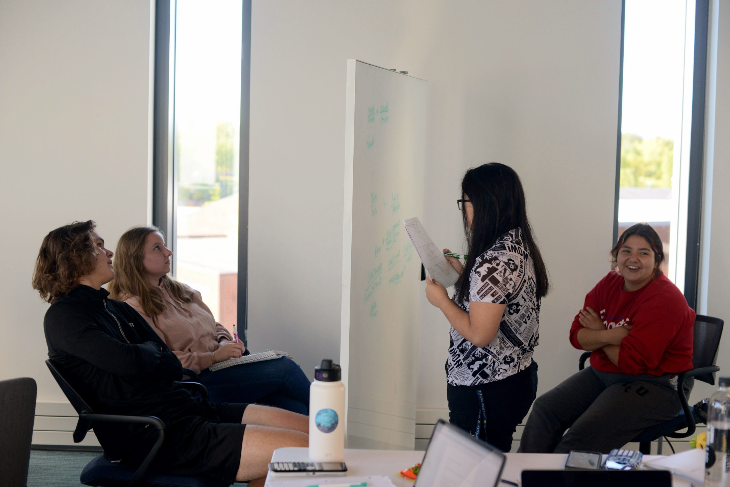 In one of the d.spaces, Elena Pizaña was joined by fellow students as she studied for her upcoming pre-calculus final. Pizaña, a first-year student majoring in general engineering, noted that the Learning Commons is a great place for the community.