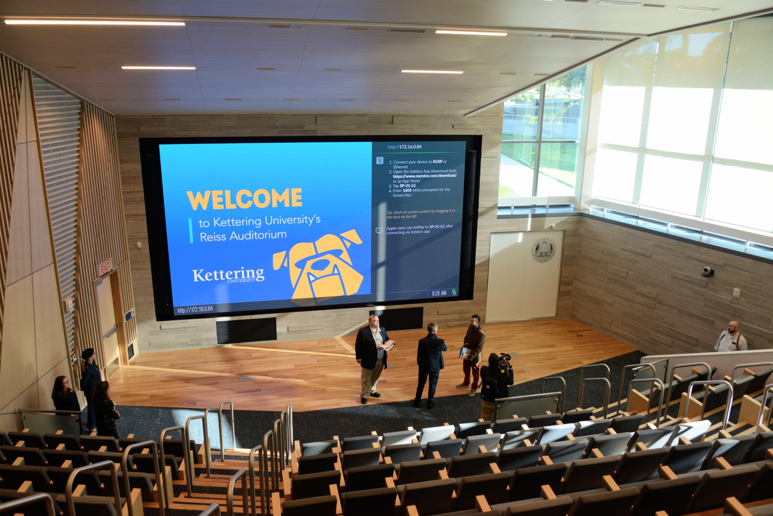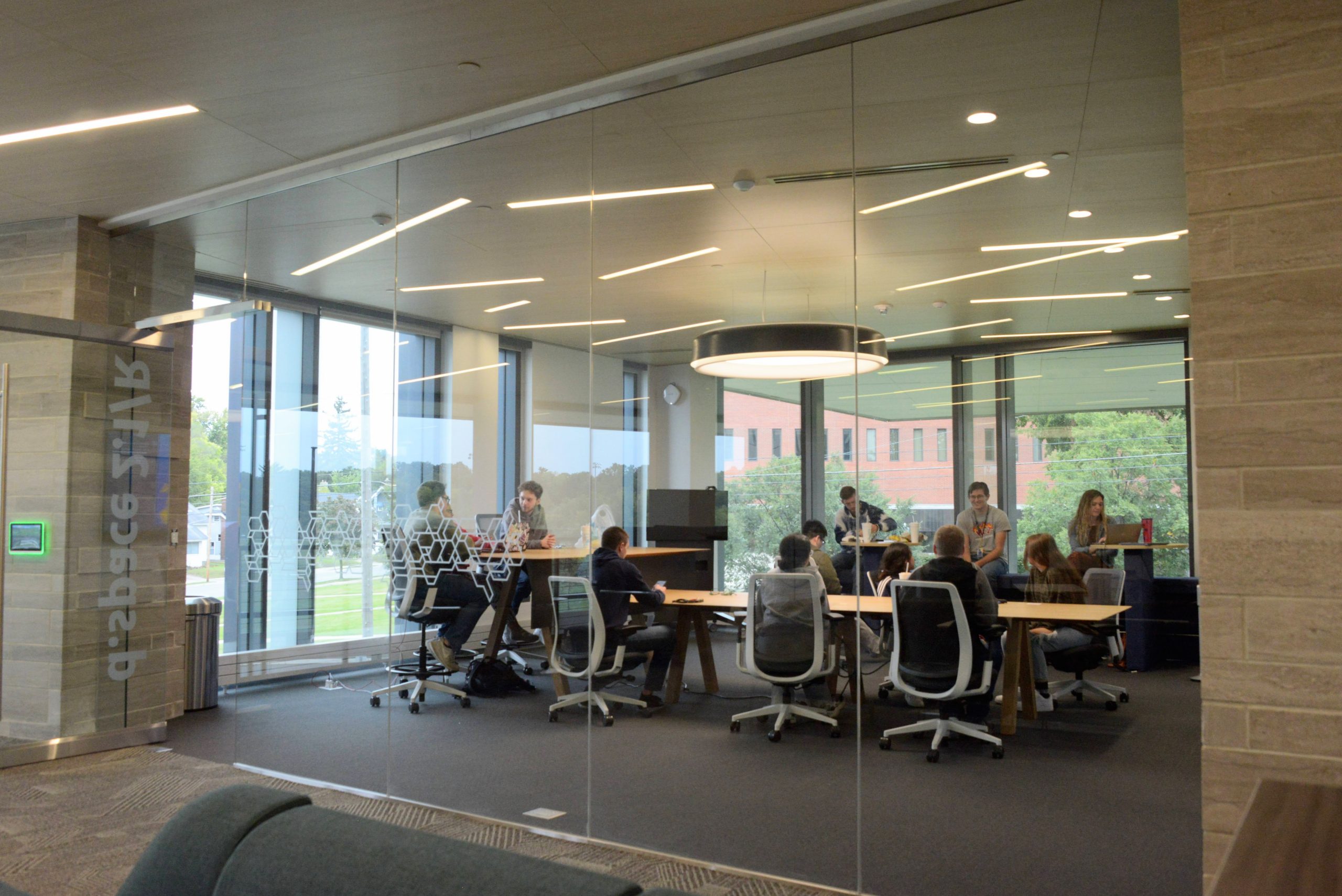Flint, MI—Students filled the spaces of Kettering University’s Learning Commons, studying for their finals at the end of the summer semester. Scholars scribbled math formulas on whiteboards and worked together in collaboration spaces, or d.spaces, while guests from the Learning Commons’ grand opening ceremony peered through the rooms’ glass walls, taking a closer look at the new building’s interior design.