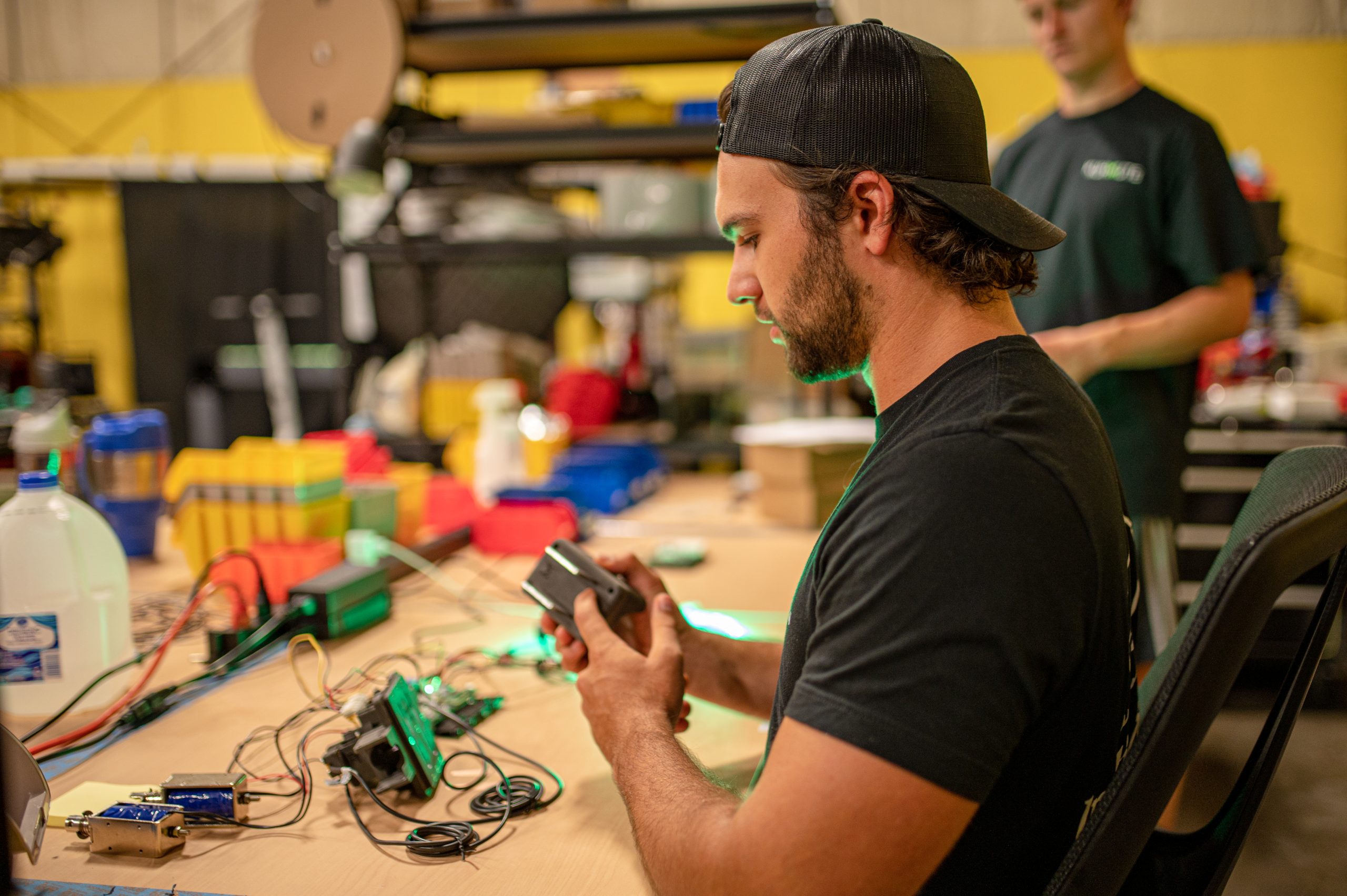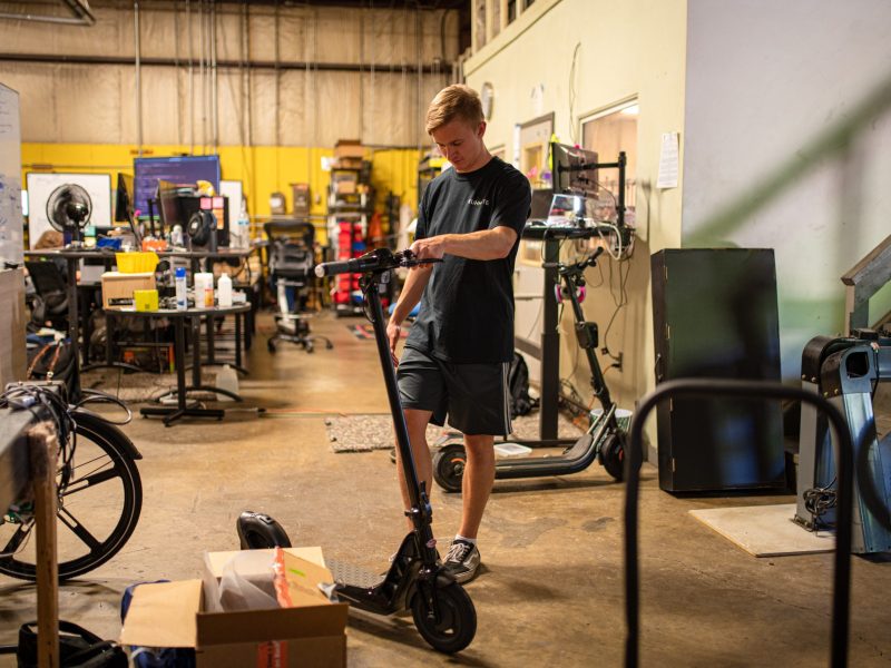 “In all transparency, it has mainly been companies coming to us with 30 different scooters they want to put these on,” Holmes said, holding up an unfinished adapter from a desk full of wires and loose-leaf paper.