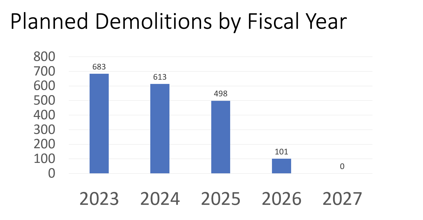 “We’d like to exceed that,” Finholm said of the demo numbers shown per year, “and get more money and do more demos and save more houses and keep people here. One hundred percent. If we can move faster, we will.”