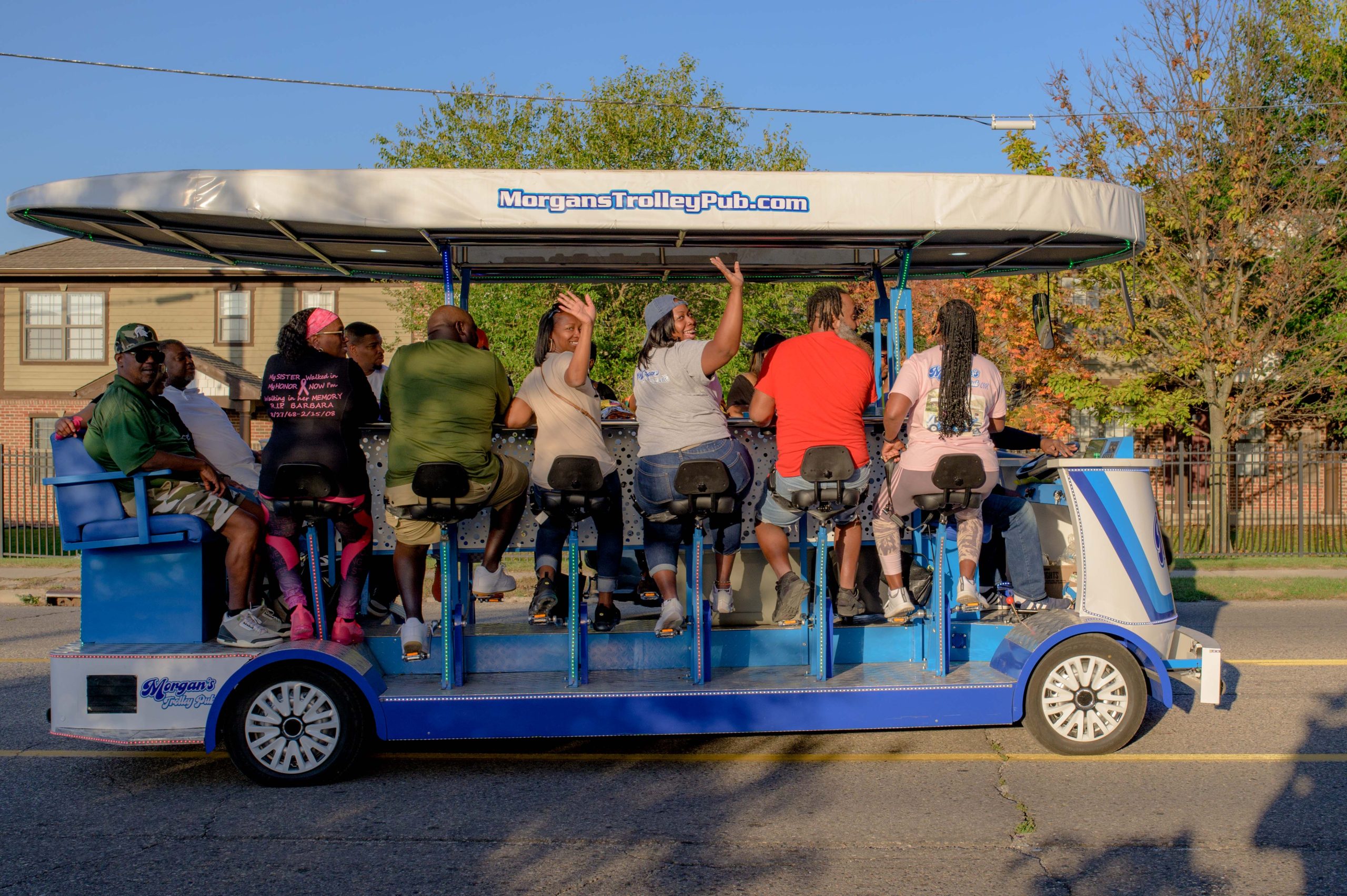 Morgan’s Trolley Pub operates Wednesday through Sunday, starting and ending at Tenacity Brewing. Trips last one hour and 45 minutes and can be booked for eight to 14 guests. The last trip departs at 9 p.m. as the new city ordinance requires operations to cease by 11 p.m.