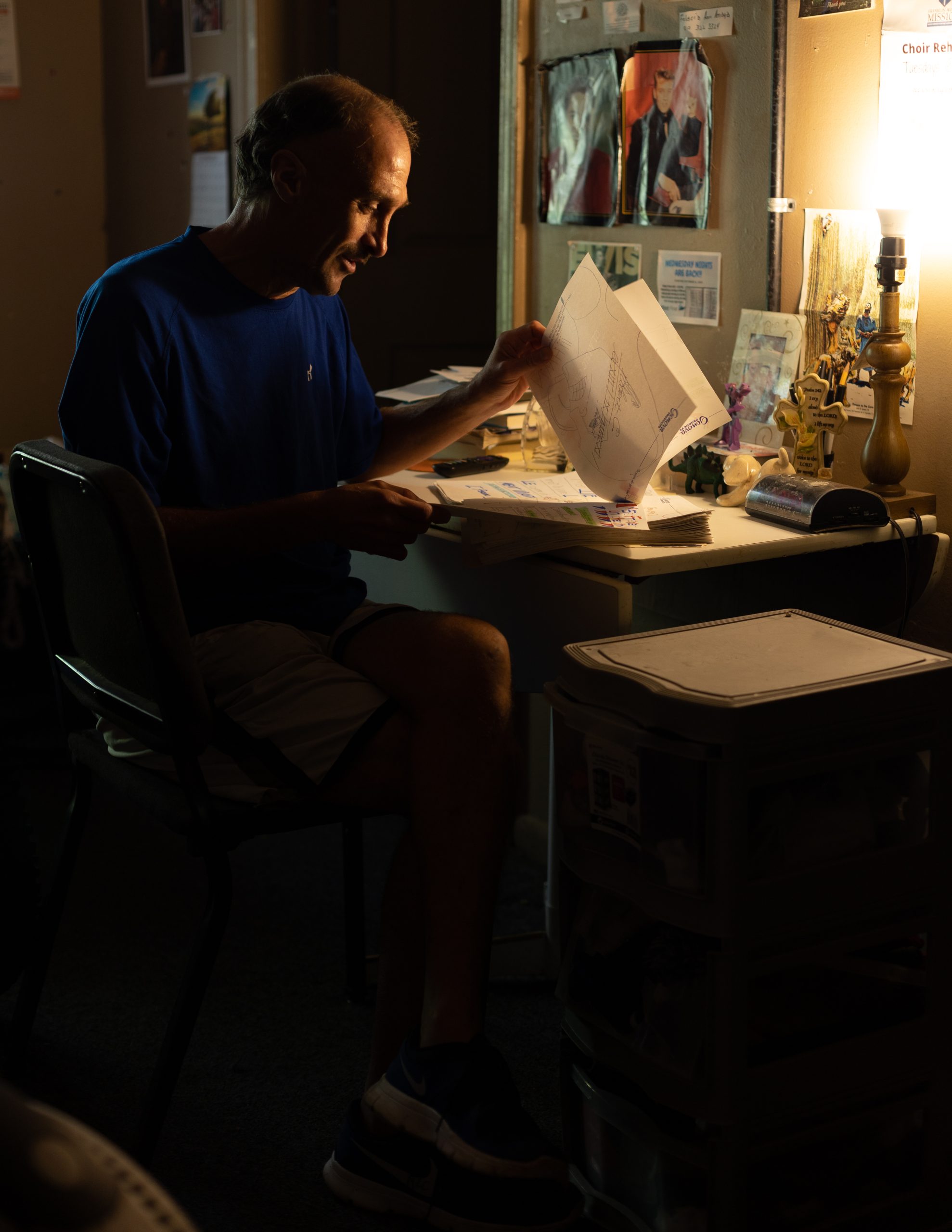Straightening up, he turned his attention away from his feet and out the open window, talking about his relationship with God and how it saved him from a fate like his friend’s.