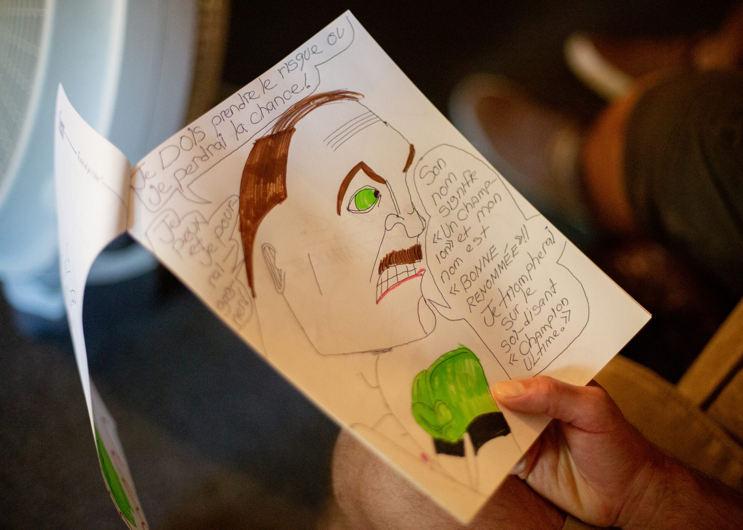Most, if not all of the drawings Bob has, feature his characters speaking in French with each other.