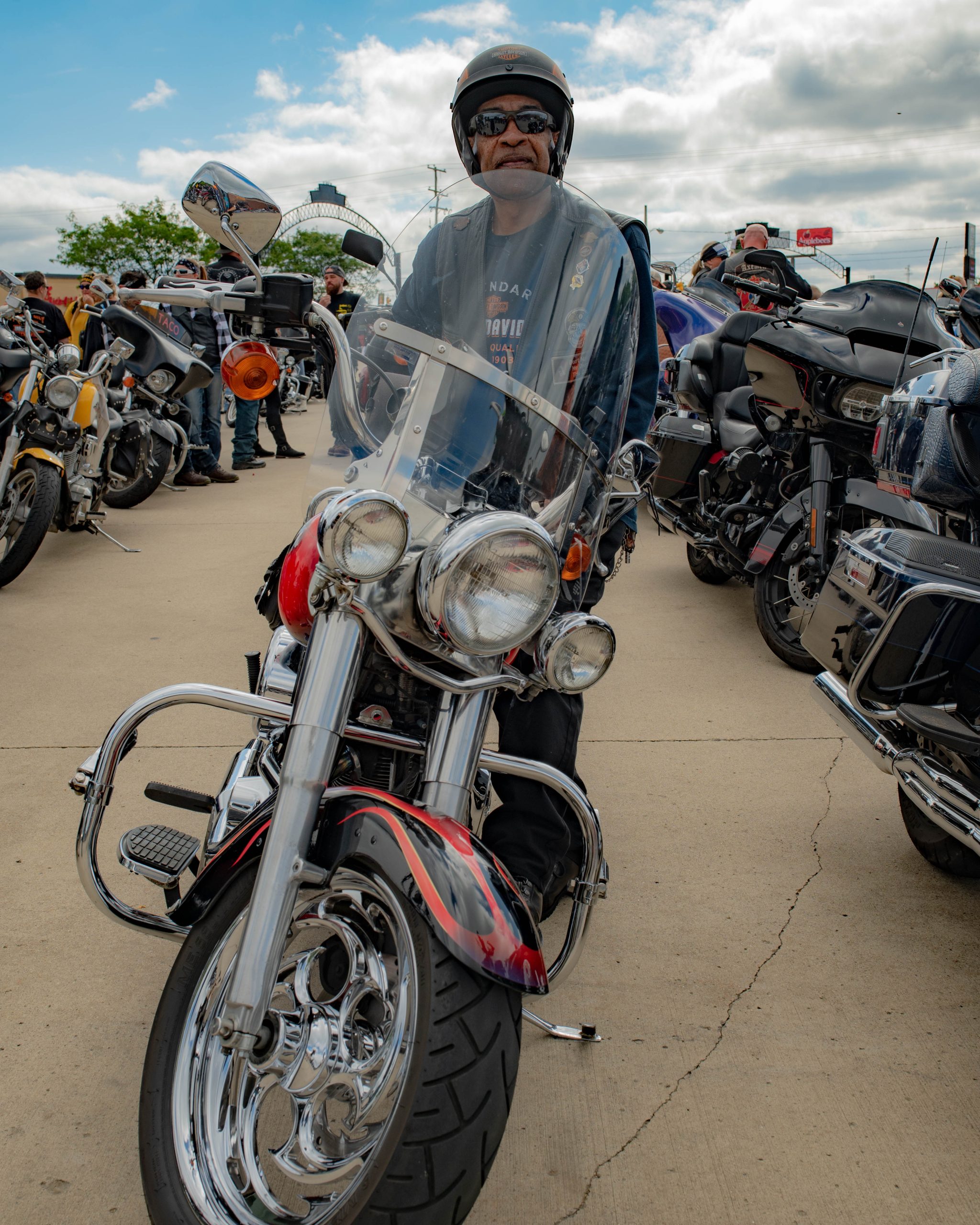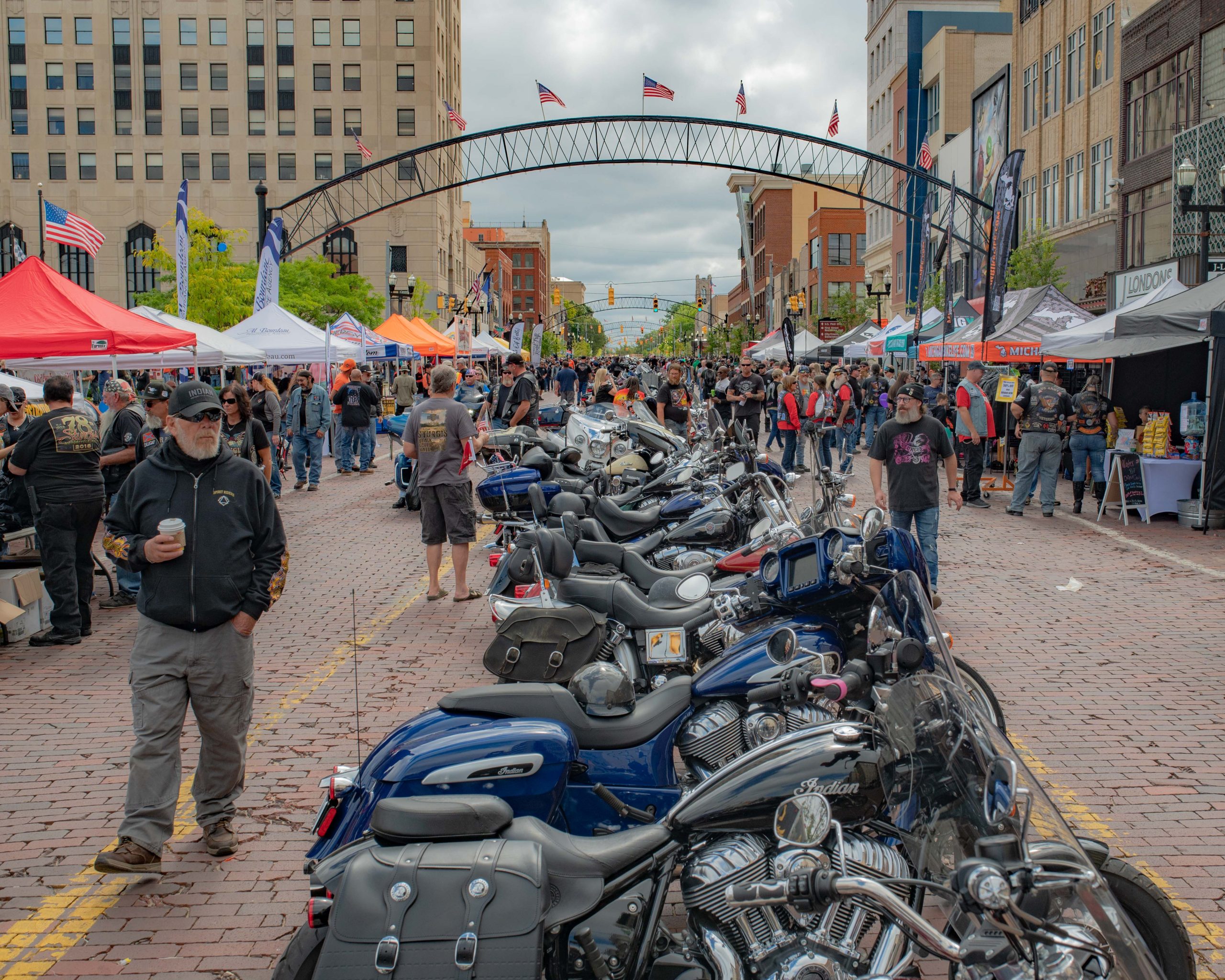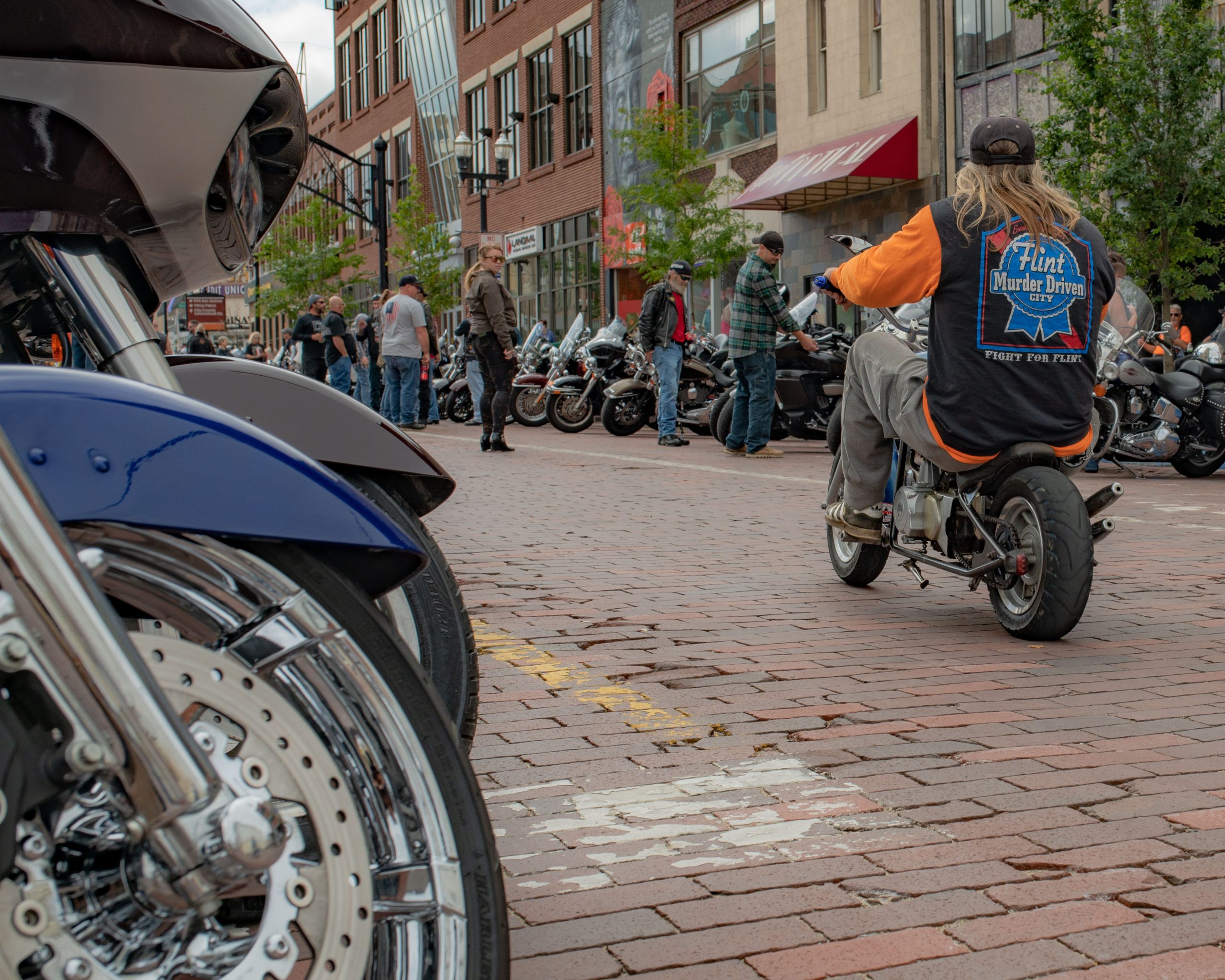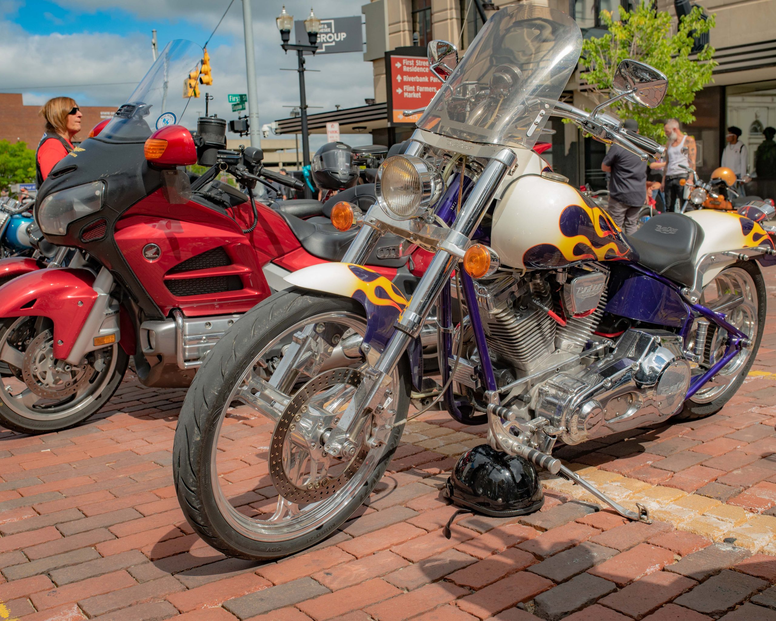 Me Me and Blade pose for a picture with their motorcycles on Saginaw Street during Bikes on the Bricks in downtown Flint, Mich. on Saturday, Sept. 9, 2023. (Michael Indriolo | Flint Beat)A tattered U.S. Army flag waves in the wind on the back of a motorcycle during Bikes on the Bricks in downtown Flint, Mich. on Saturday, Sept. 9, 2023. (Michael Indriolo | Flint Beat)Motorcycles are parked on Saginaw Street during Bikes on the Bricks in downtown Flint, Mich. on Saturday, Sept. 9, 2023. (Michael Indriolo | Flint Beat)Motorcycles are parked on Saginaw Street during Bikes on the Bricks in downtown Flint, Mich. on Saturday, Sept. 9, 2023. (Michael Indriolo | Flint Beat)
