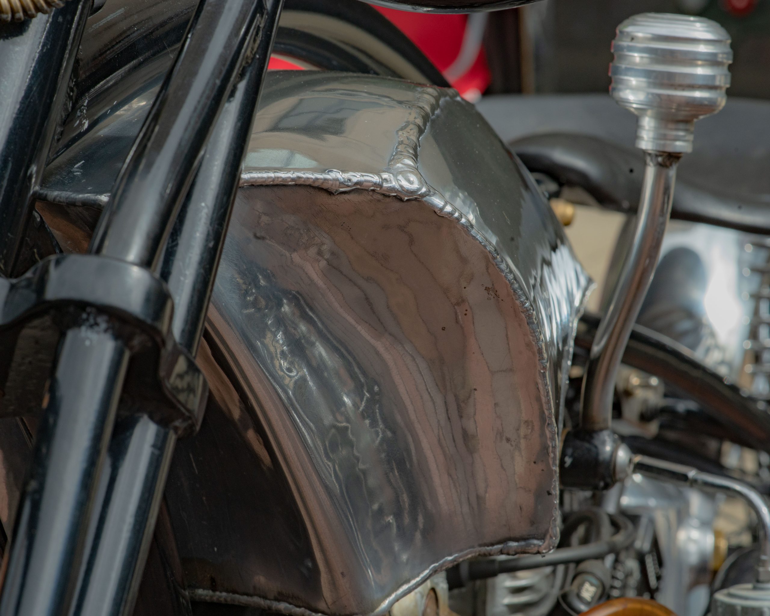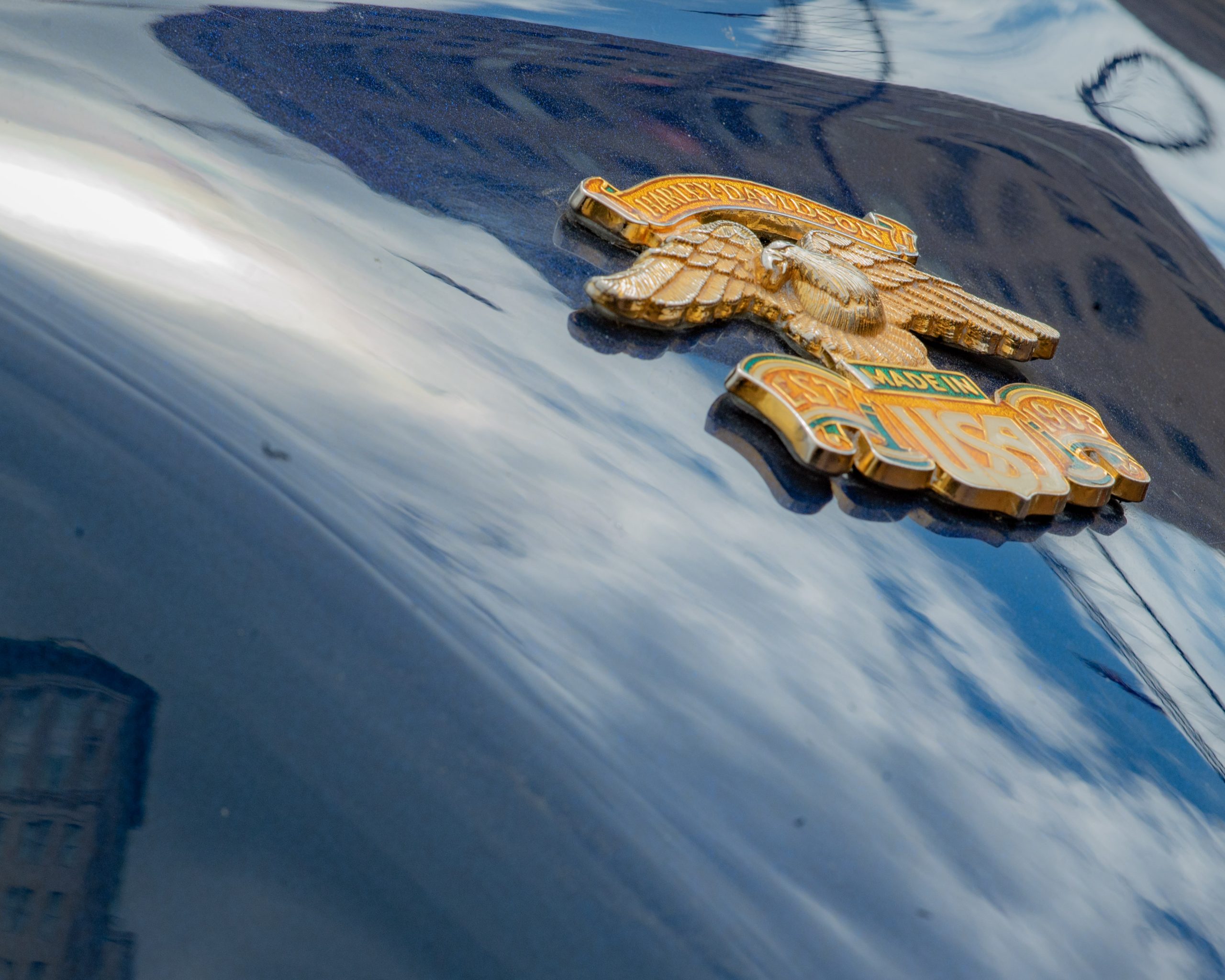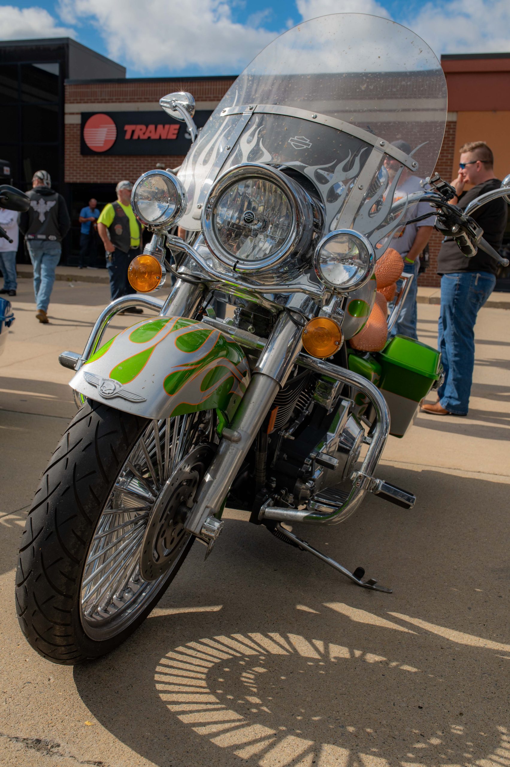A motorcycle’s clutch cover is in the shape of a skull at the Vehicle City Harley-Davidson as motorcyclists prepare to roll out on a police-escorted to Bikes on the Bricks in downtown Flint, Mich. on Saturday, Sept. 9, 2023. (Michael Indriolo | Flint Beat)