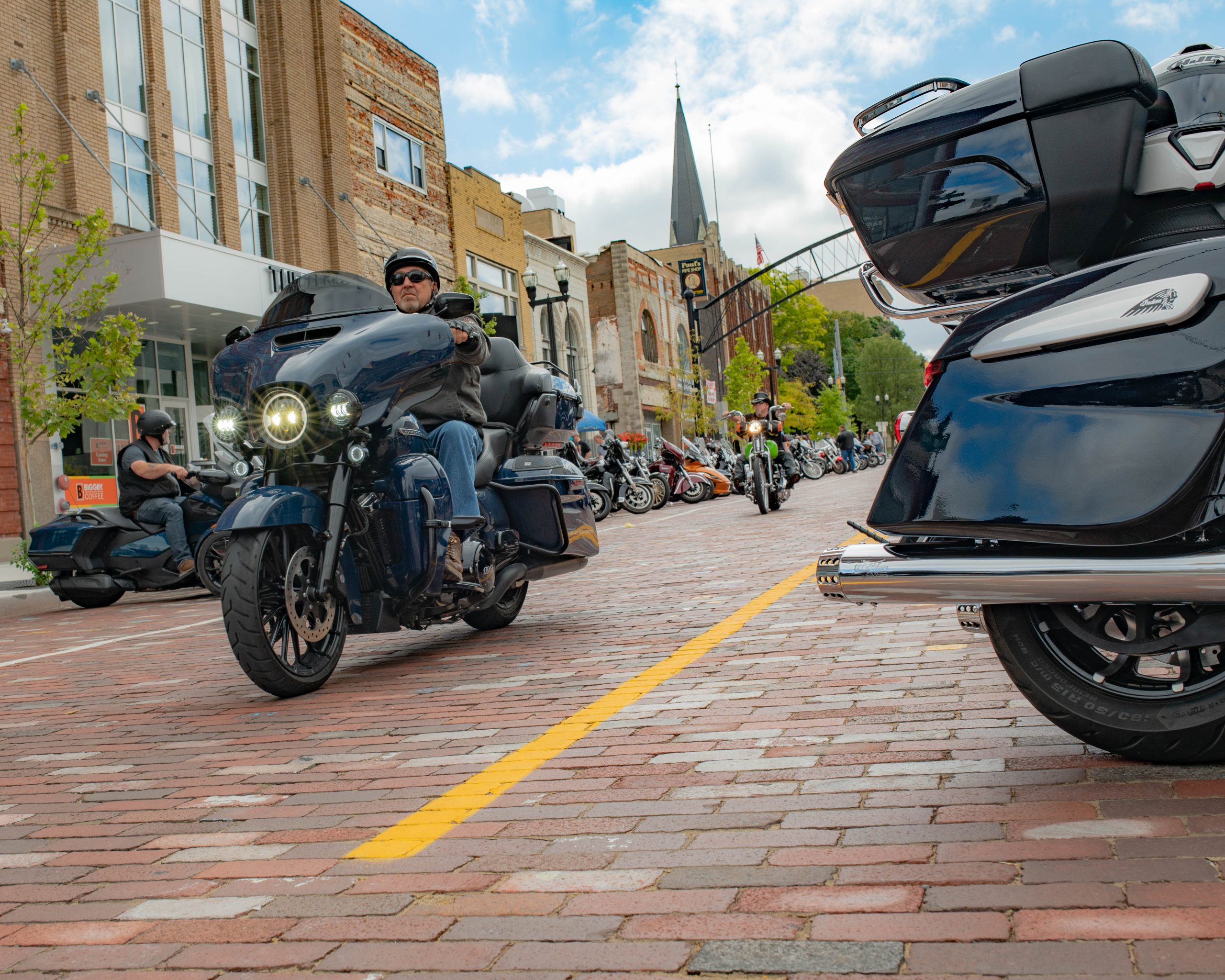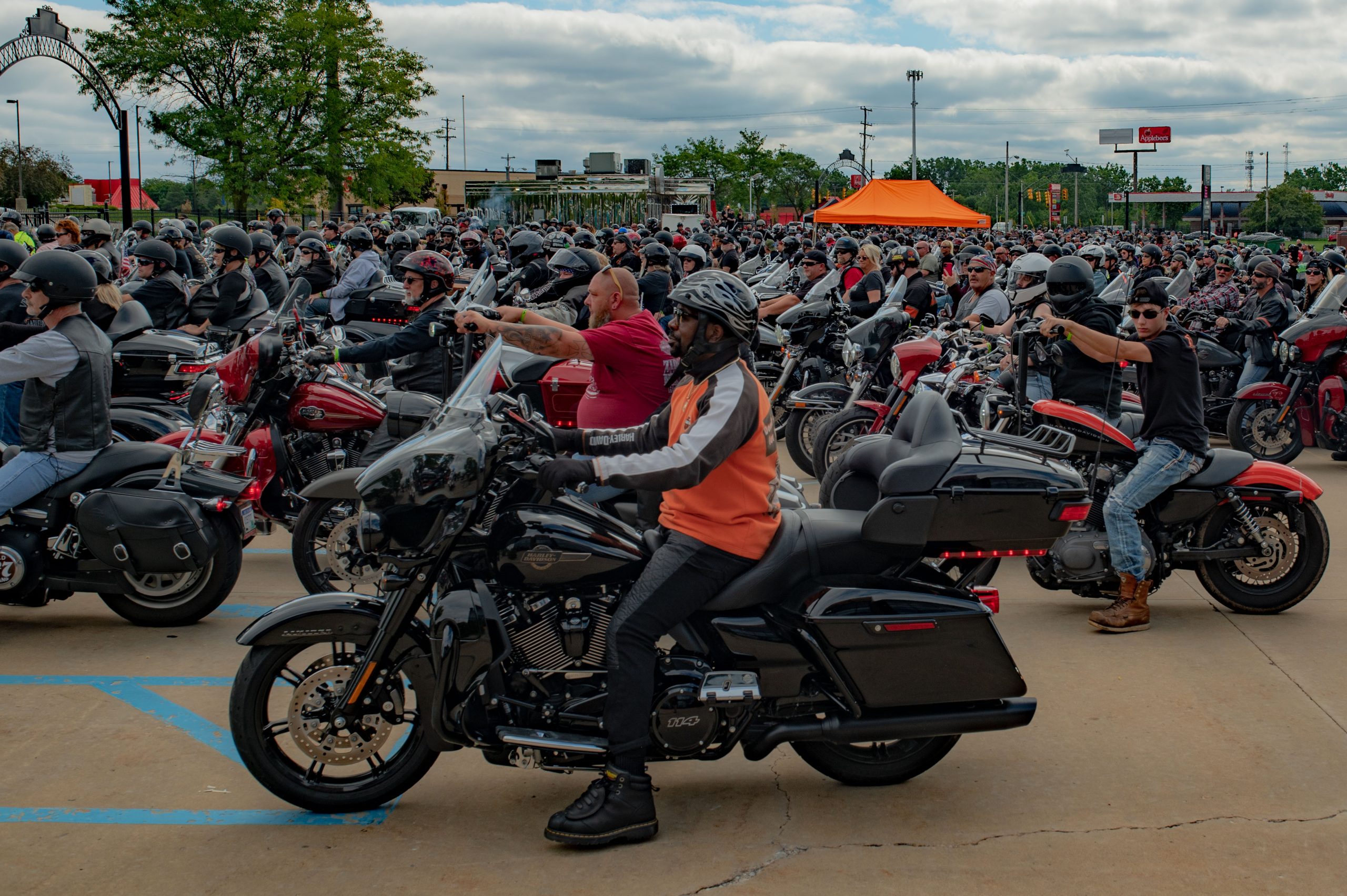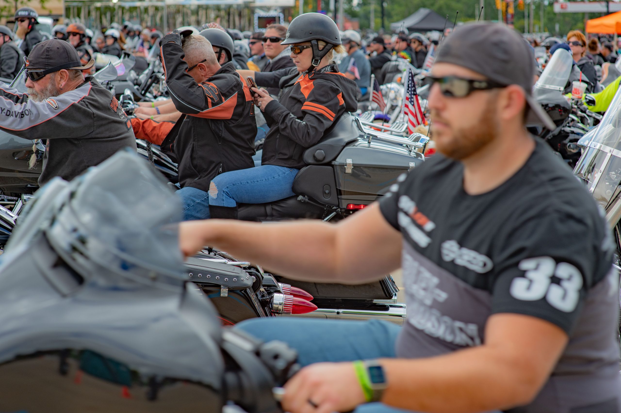 Motorcyclists at the Vehicle City Harley-Davidson prepare to roll out on a police-escorted to Bikes on the Bricks in downtown Flint, Mich. on Saturday, Sept. 9, 2023. (Michael Indriolo | Flint Beat)Motorcyclists at the Vehicle City Harley-Davidson prepare to roll out on a police-escorted to Bikes on the Bricks in downtown Flint, Mich. on Saturday, Sept. 9, 2023. (Michael Indriolo | Flint Beat)