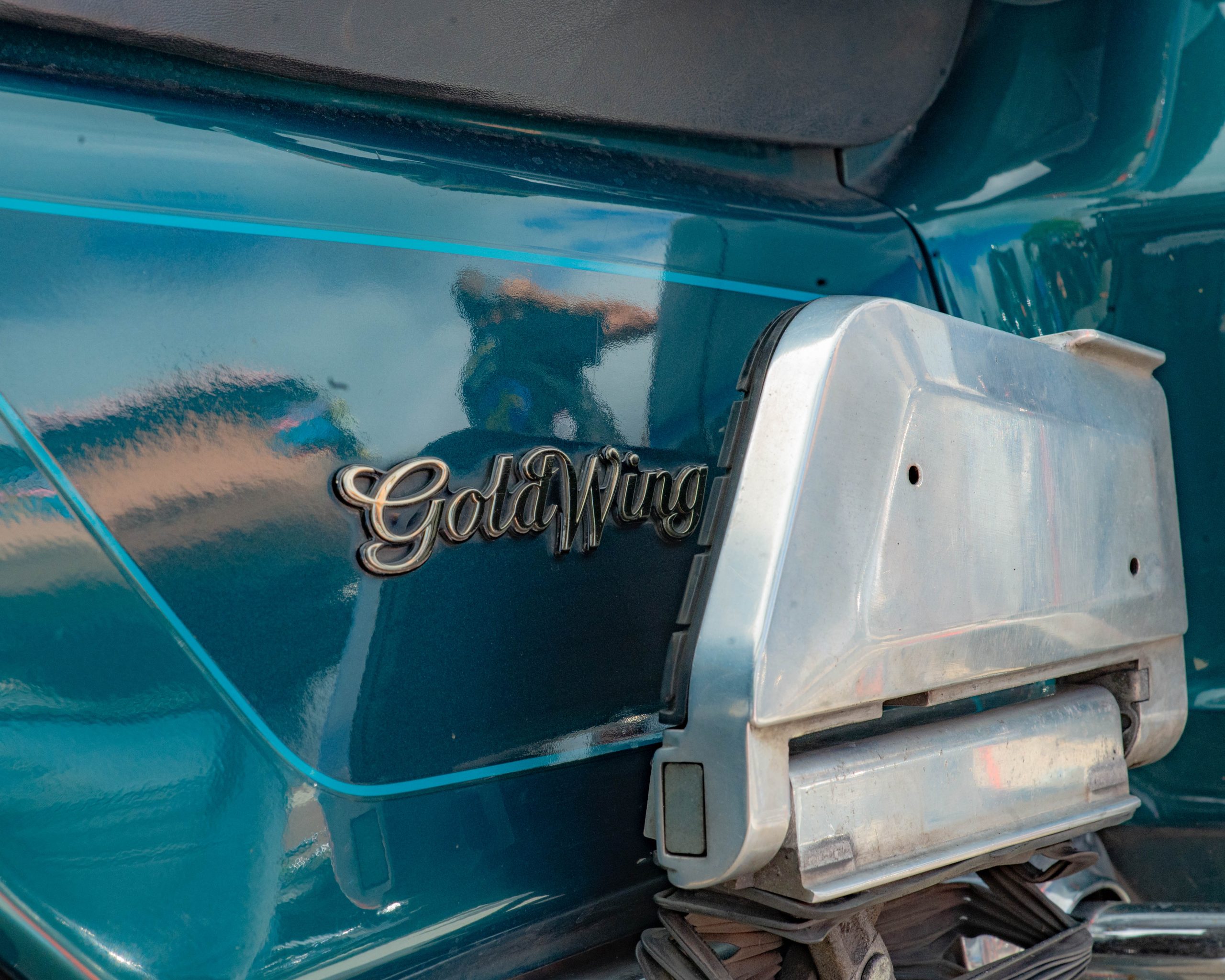 A Honda Gold Wing is parked on Saginaw Street during Bikes on the Bricks in downtown Flint, Mich. on Saturday, Sept. 9, 2023. (Michael Indriolo | Flint Beat)