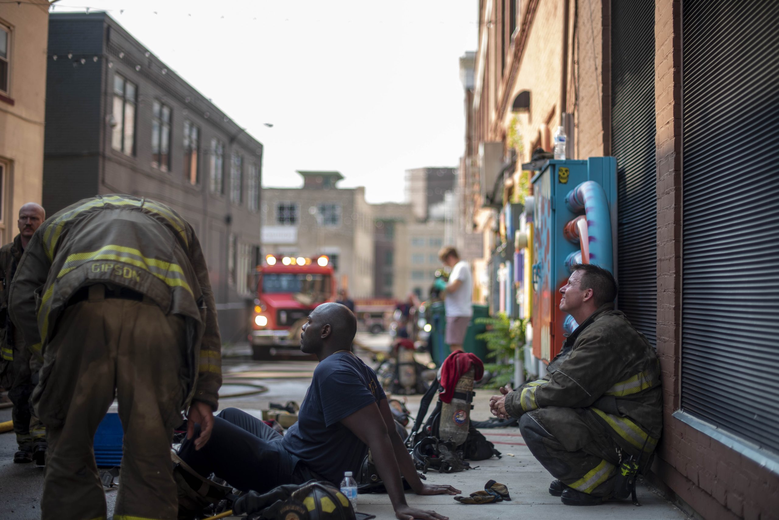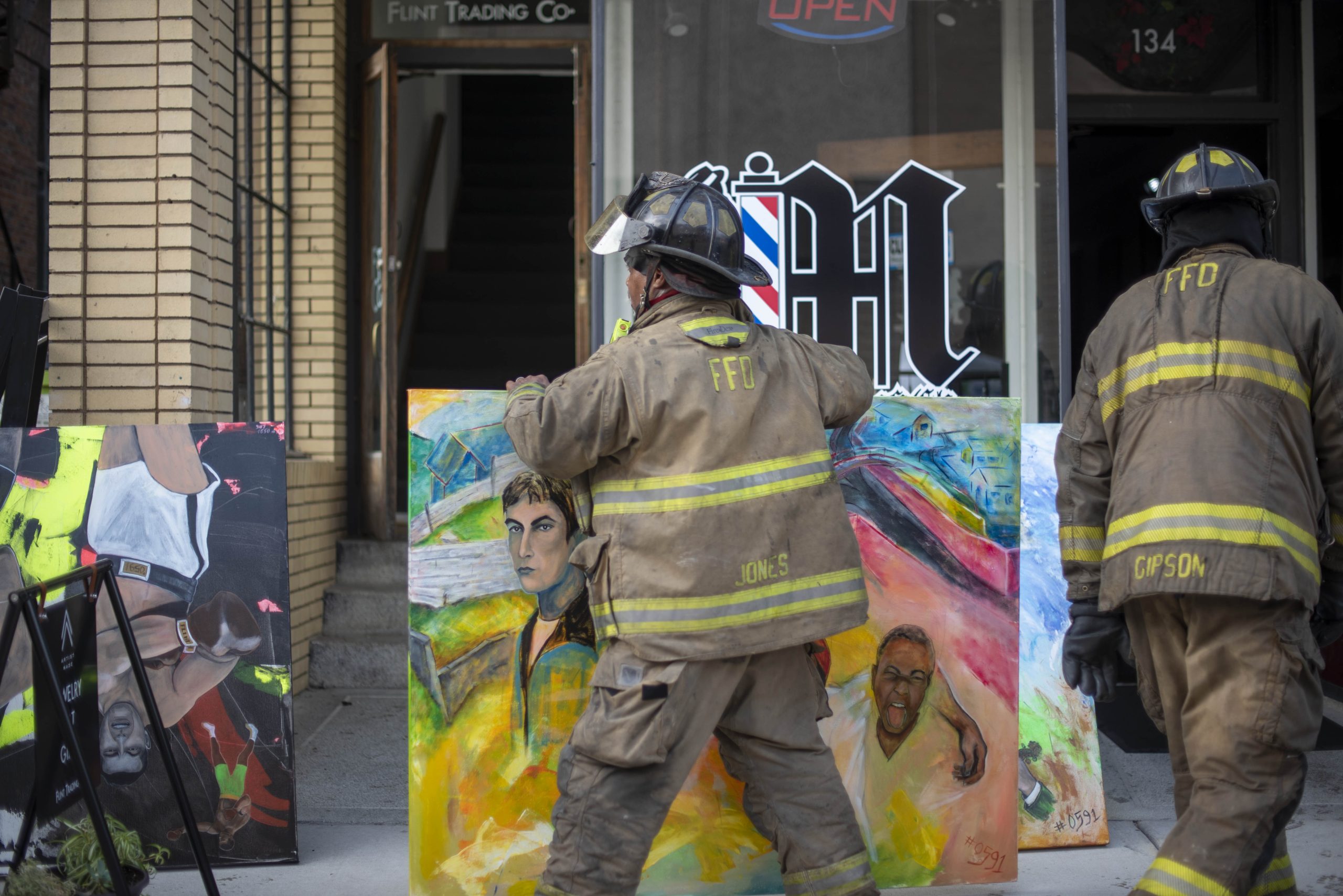 Kranz had come to check on his workplace neighbors and survey the possible damage to his artwork, but had not yet been allowed inside the building. He said he expected there would be a lot of water damage since his studio is directly under the area of the building where the fire had taken place.