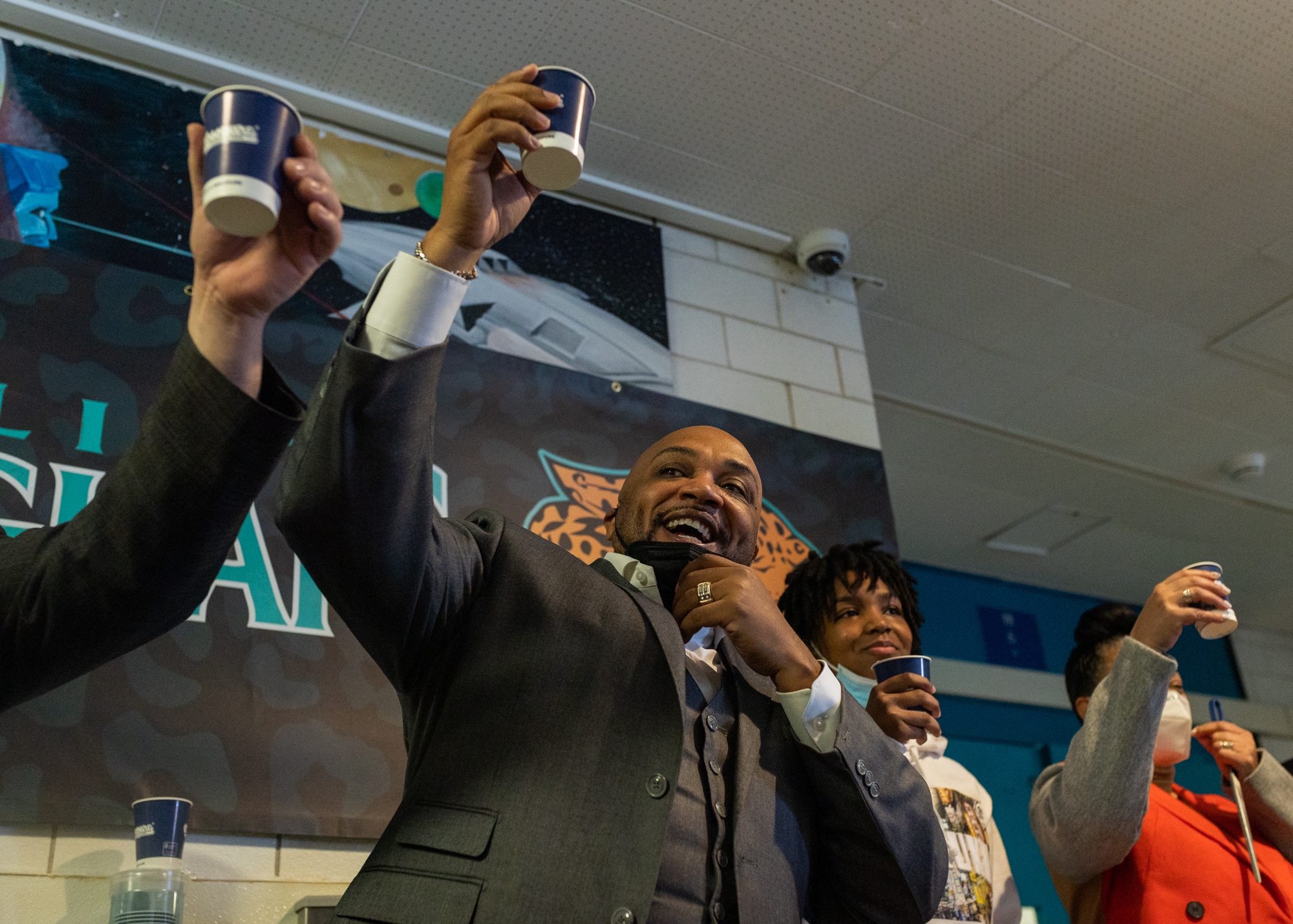 The district unveiled its new hydration stations in February 2022. It was the first time in years that students and staff could safely drink from a Flint school water fountain.