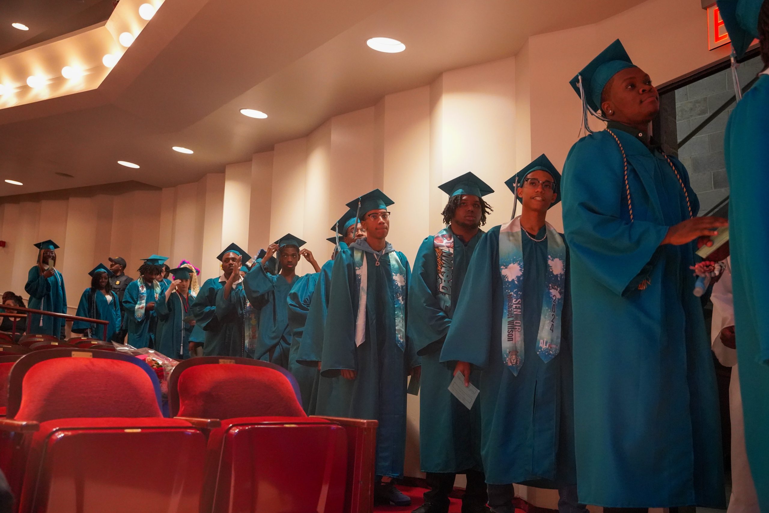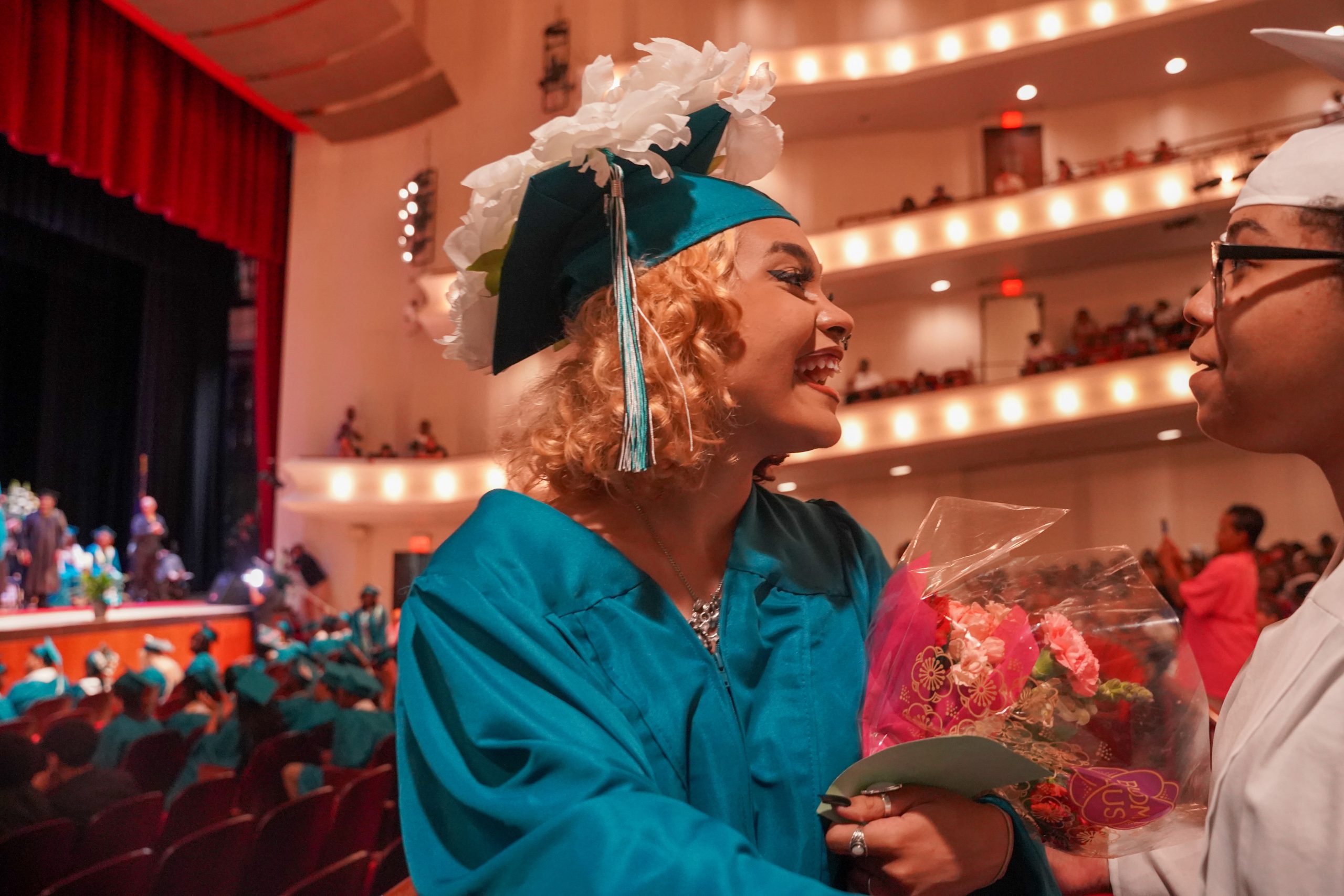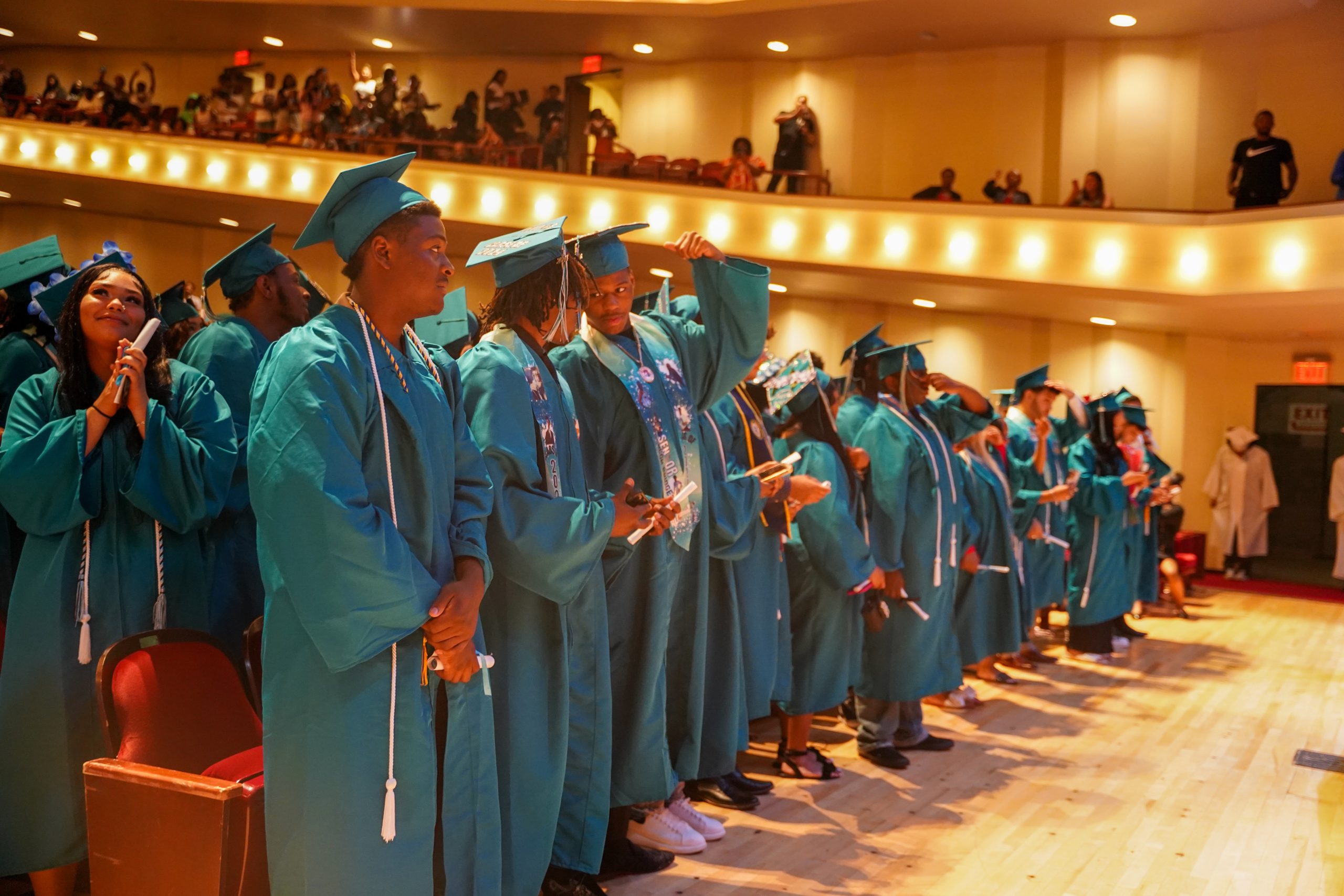 Nearly 120 Flint Community Schools graduates walked the stage at the Whiting on Tuesday, June 4, 2024, as they ended their high school careers to start a new journey. (Joshua Johnson | Flint Beat)