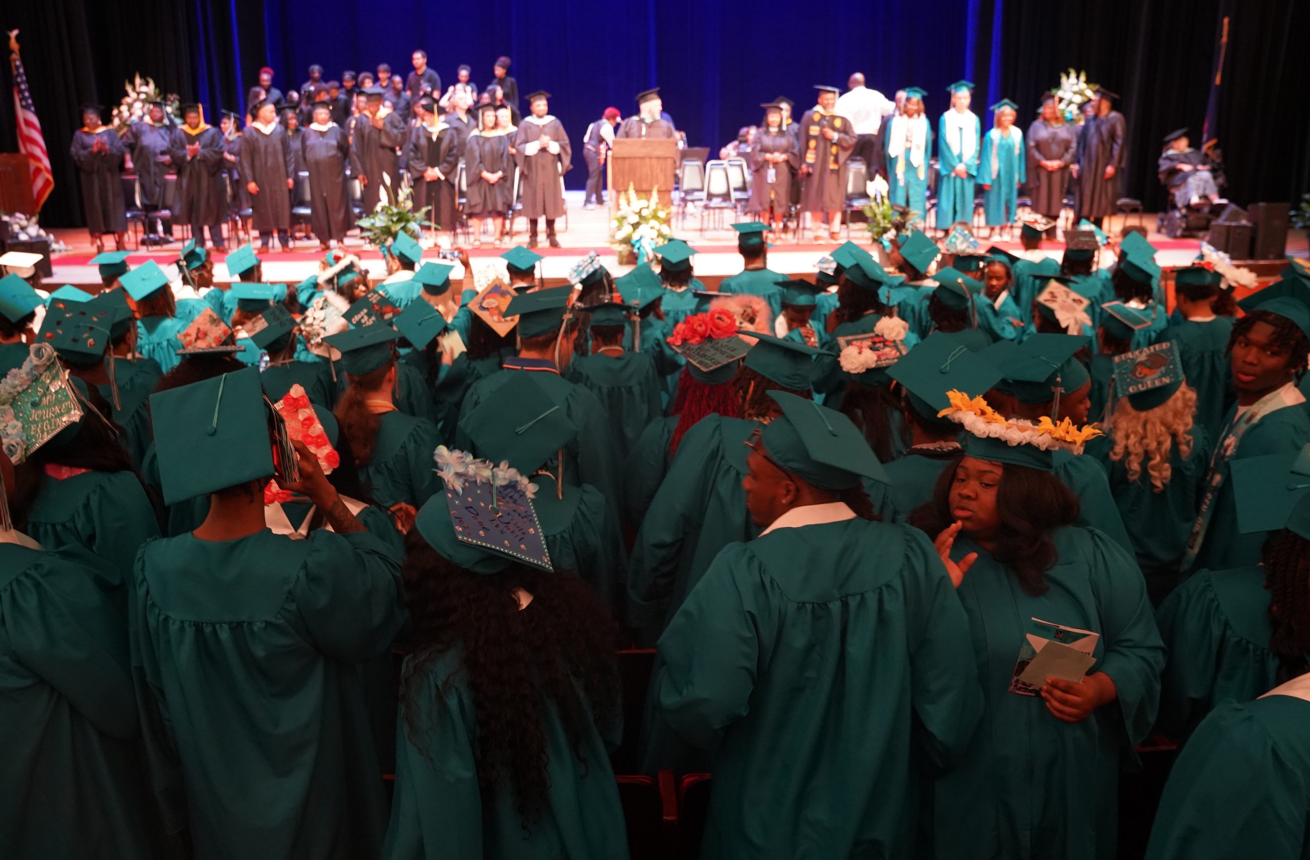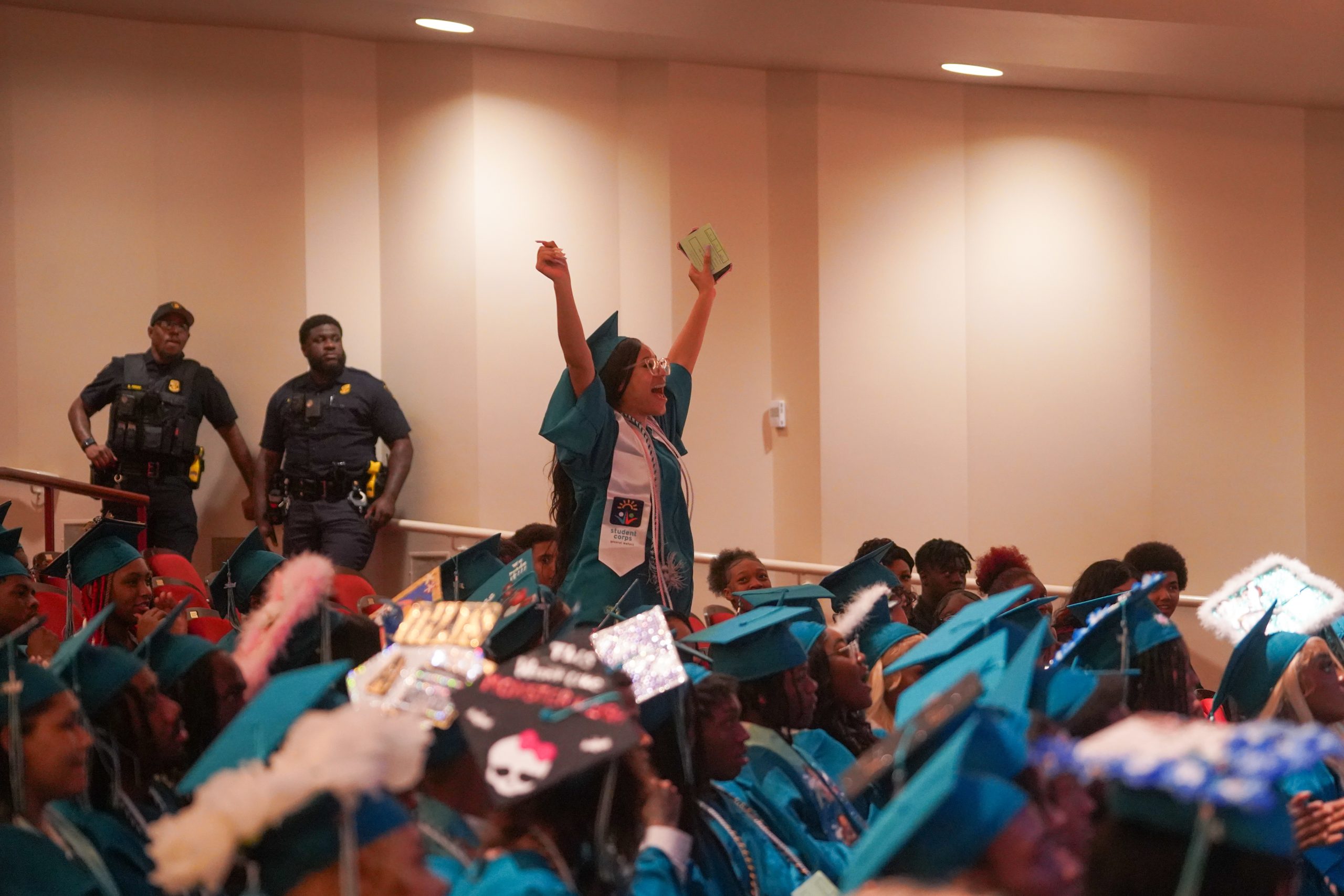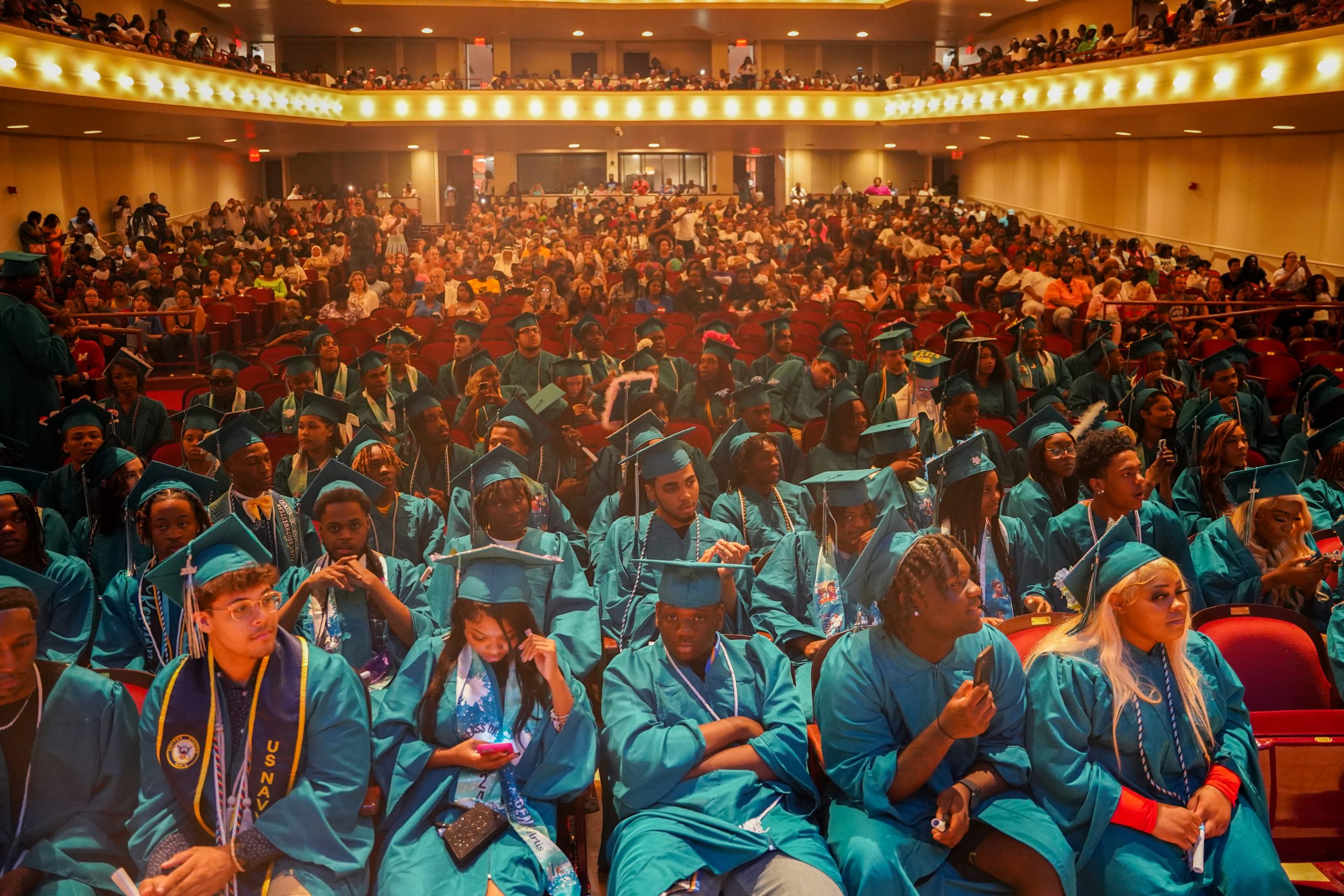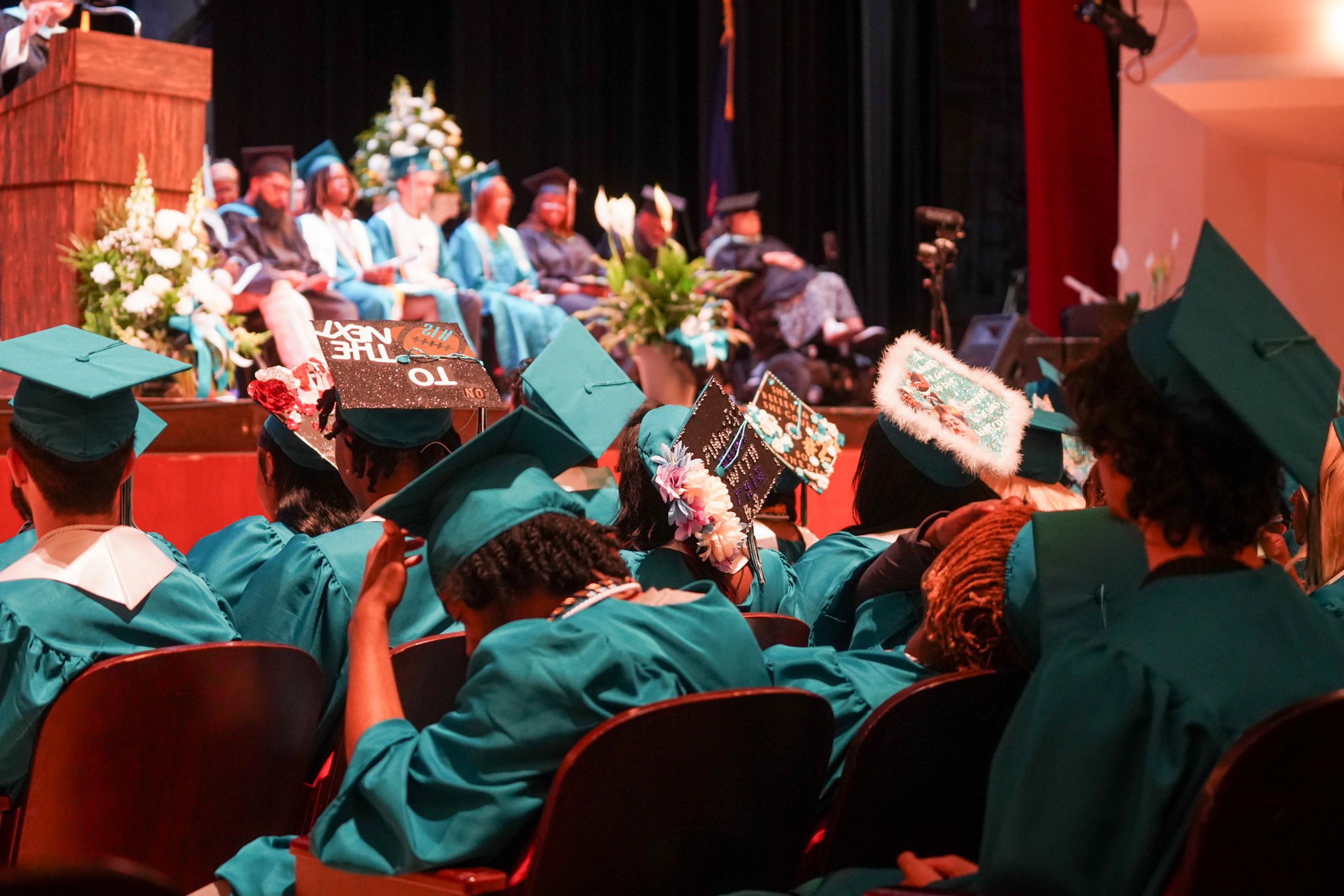Nearly 120 Flint Community Schools graduates walked the stage at the Whiting on Tuesday, June 4, 2024, as they ended their high school careers to start a new journey. (Joshua Johnson | Flint Beat)