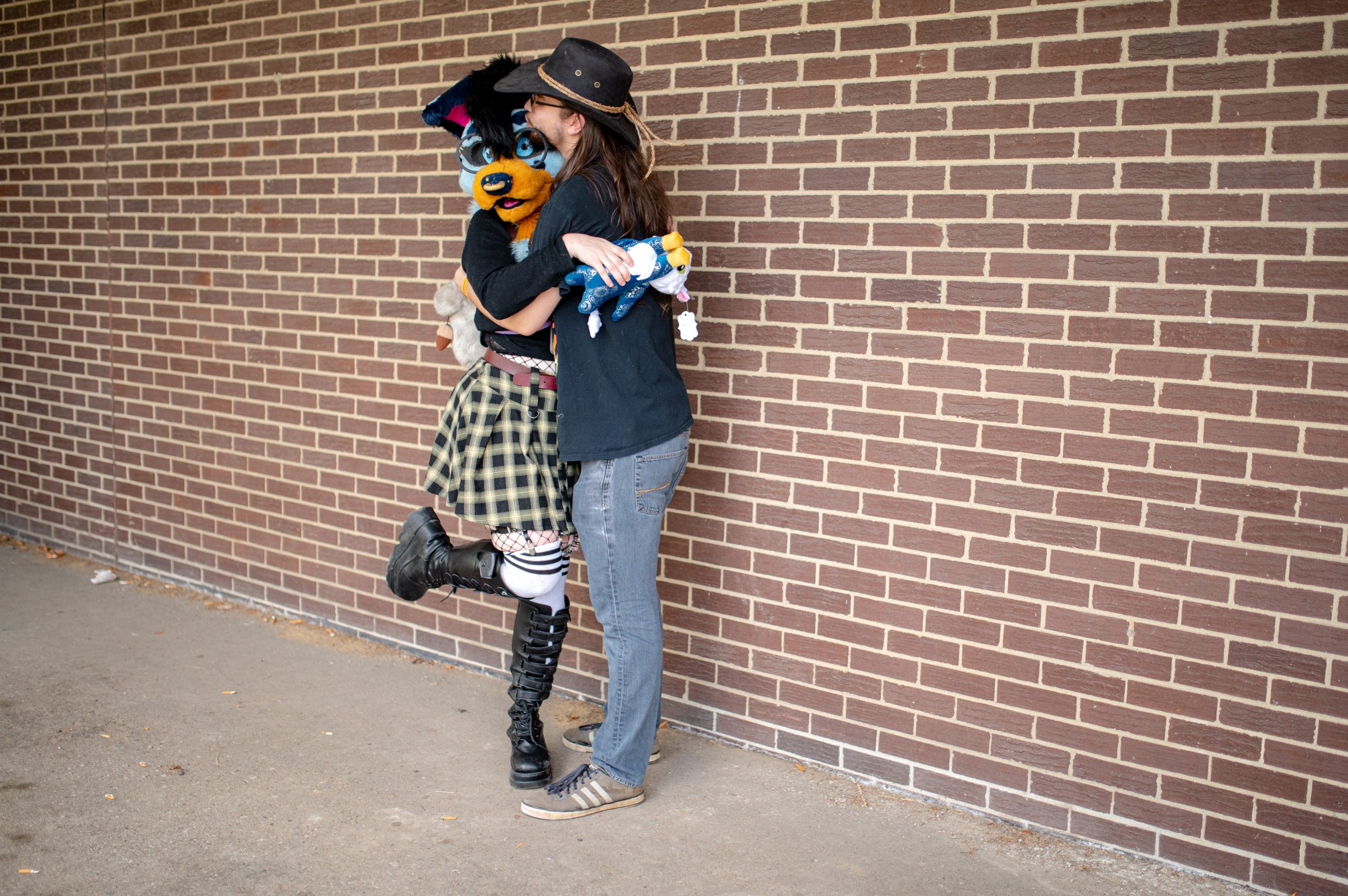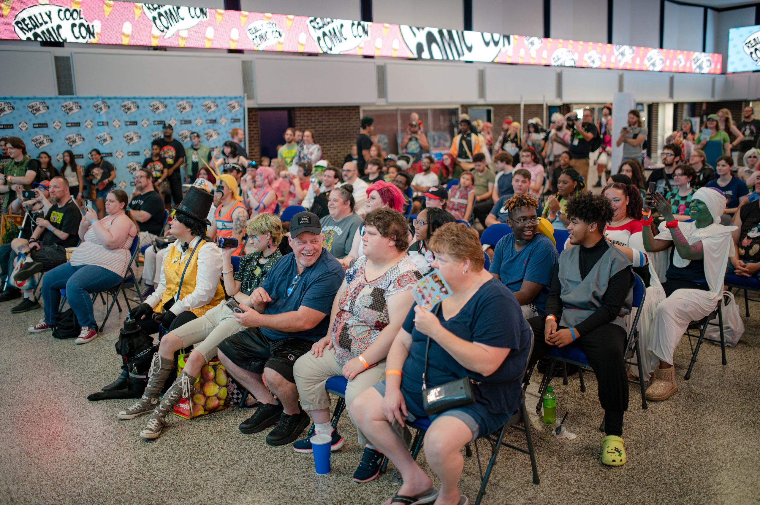 Attendees react during the Cosplay Contest at Really Cool Comic Con at the Dort Financial Center in Flint, Mich. on August 6, 2022. (Michael Indriolo | Flint Beat)Mark Leverette, dressed as the “Batman” villian The Painter, poses for a photo during the Cosplay Contest at Really Cool Comic Con at the Dort Financial Center in Flint, Mich. on August 6, 2022. This was Leveretee’s first comic con, he said, and he chose to dress up as The Painter because he could relate to the character and liked his look. (Michael Indriolo | Flint Beat)Celeste hugs her boyfriend Wyatt during Really Cool Comic Con at the Dort Financial Center in Flint, Mich. on August 6, 2022. (Michael Indriolo | Flint Beat)