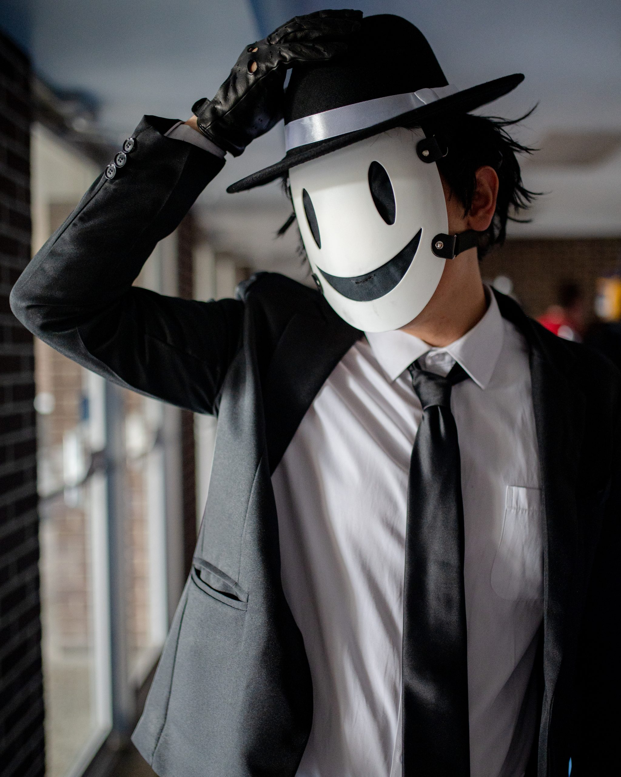 Sylvia Harkai, dressed as The Projectionist from the video game series “Bendy,” poses for a photo during the Cosplay Contest at Really Cool Comic Con at the Dort Financial Center in Flint, Mich. on August 6, 2022. (Michael Indriolo | Flint Beat)