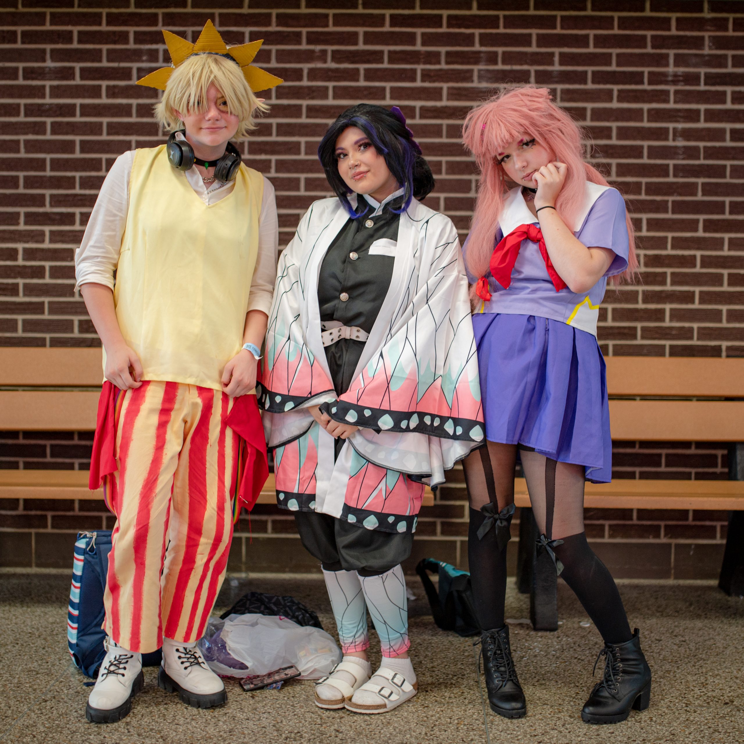 Famed actor Johnny Yong Bosch poses for a photo with Aaron Torpey and Gavin Torpey during Really Cool Comic Con at the Dort Financial Center in Flint, Mich. on August 6, 2022. Bosch has acted in multiple “Power Rangers” television series, and he has voiced characters in notable anime productions such as “Akira” and “Bleach.” (Michael Indriolo | Flint Beat)Axel McCullough, dressed as Sundrop form the video game “Five Nights at Freddie’s,” Jodi Vidal, dressed as Shinobu Kocho from the anime “Demon Slayer,” and Aspen Spencer, dressed as Yuno Gasai from the manga “Future Diary” pose for a photo during Really Cool Comic Con at the Dort Financial Center in Flint, Mich. on August 6, 2022. (Michael Indriolo | Flint Beat)