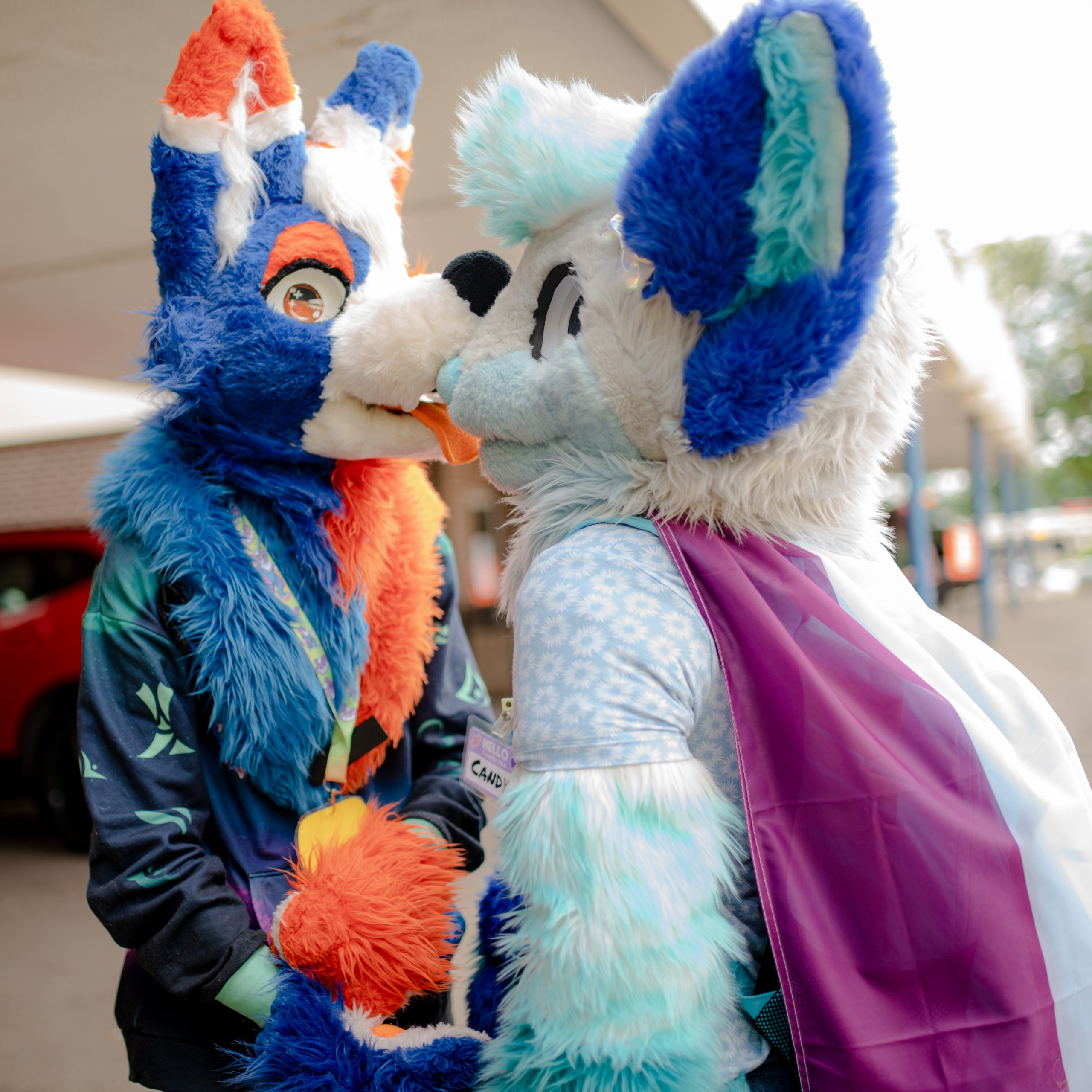 Glaycier and Tided pod bump snouts during Really Cool Comic Con at the Dort Financial Center in Flint, Mich. on August 6, 2022. (Michael Indriolo | Flint Beat)