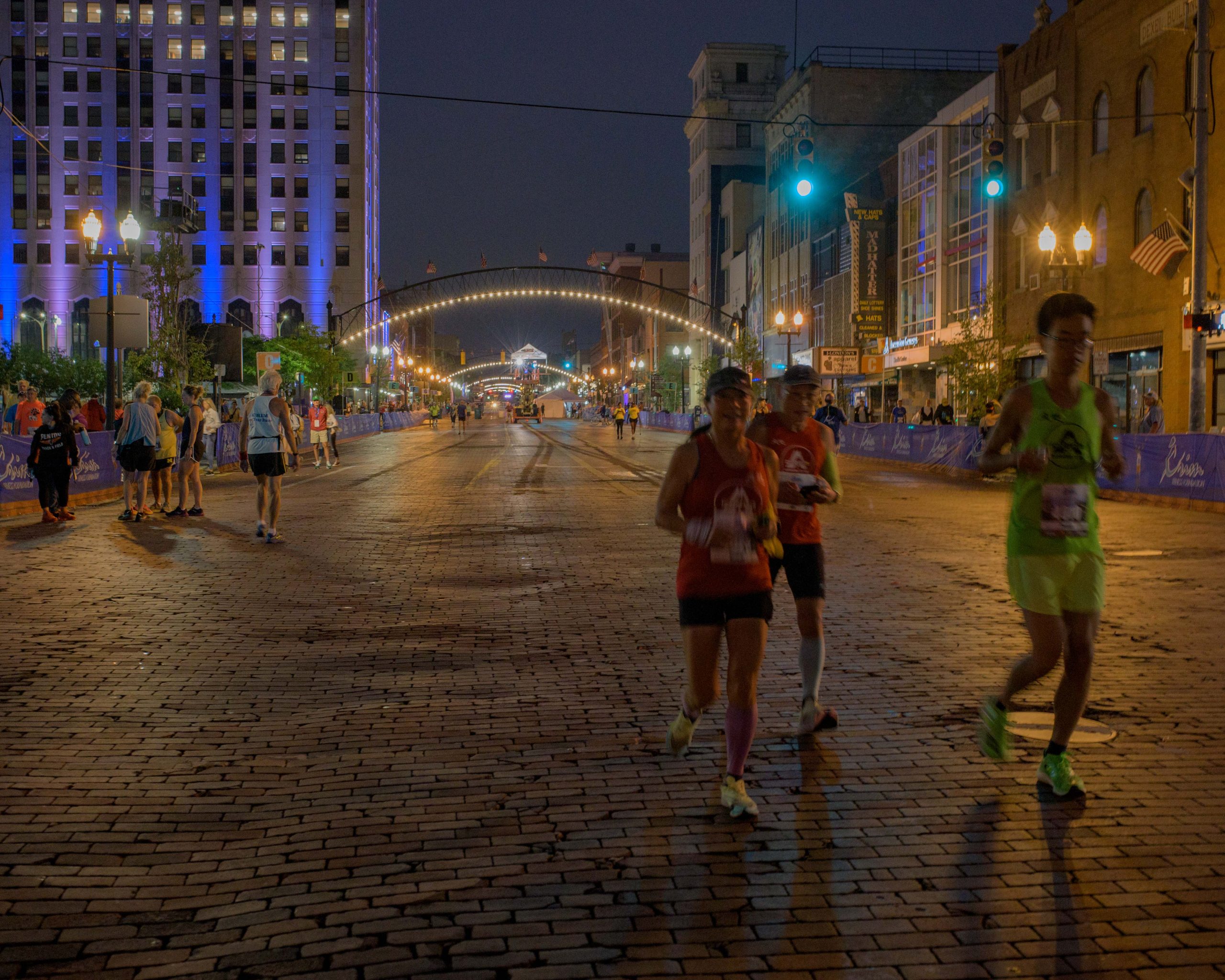 10-mile runners warm up for their race during the 46th annual HAP Crim Festival of Races in downtown Flint, Mich. on Saturday, Aug. 26, 2023. (Michael Indriolo | Flint Beat)