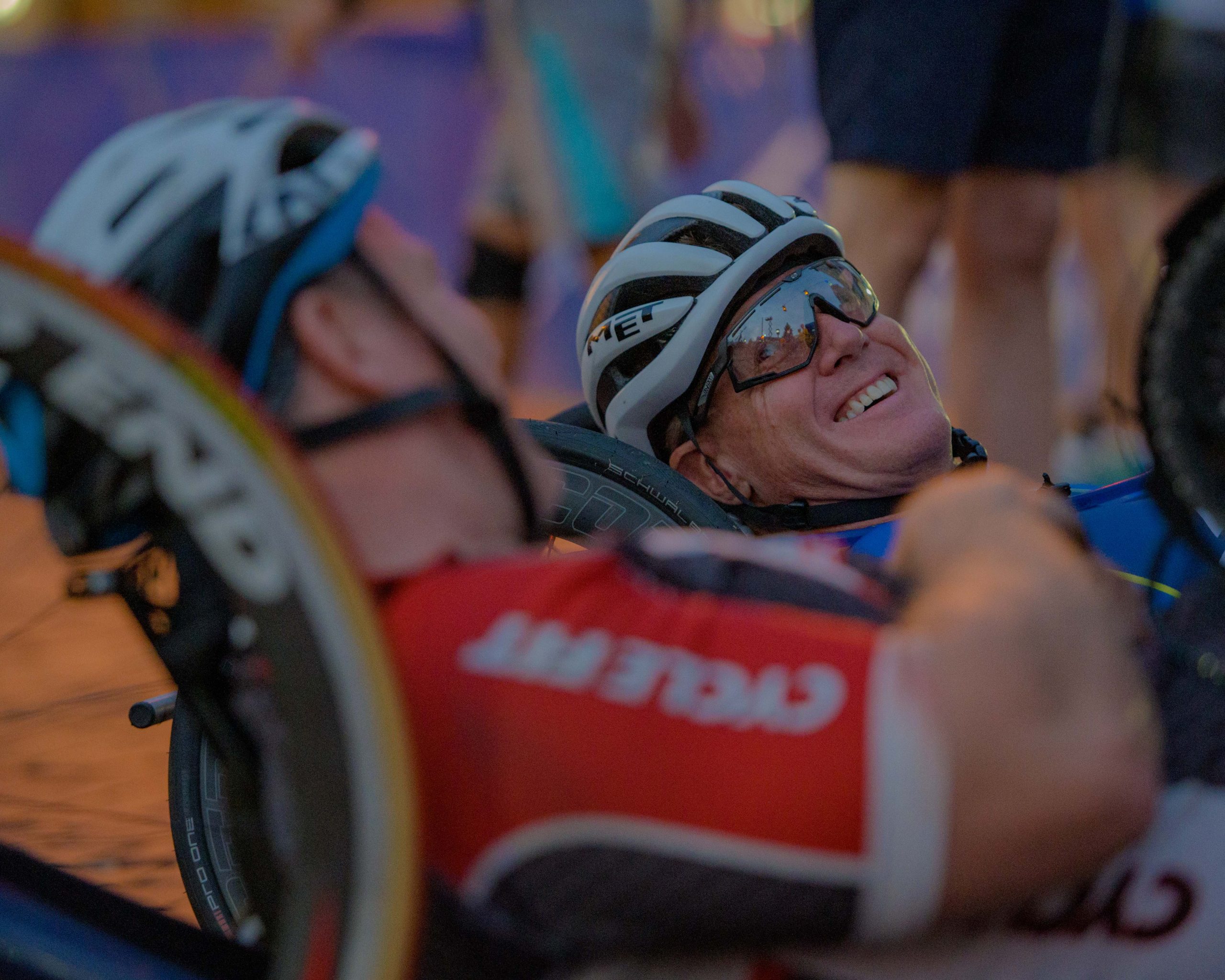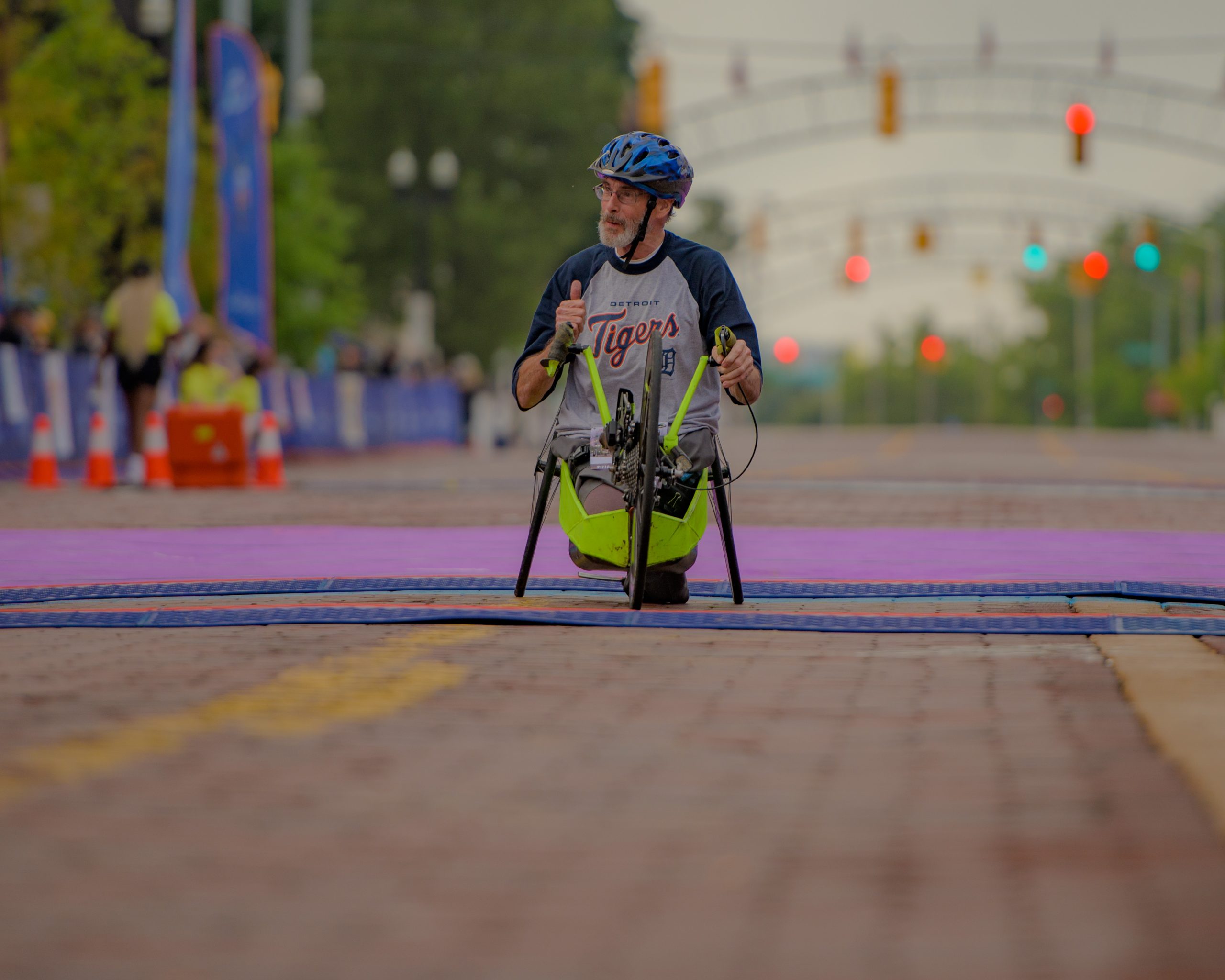 Hand cyclist Travis Peruski warms up for the 46th annual HAP Crim Festival of Races in downtown Flint, Mich. on Saturday, Aug. 26, 2023. (Michael Indriolo | Flint Beat)