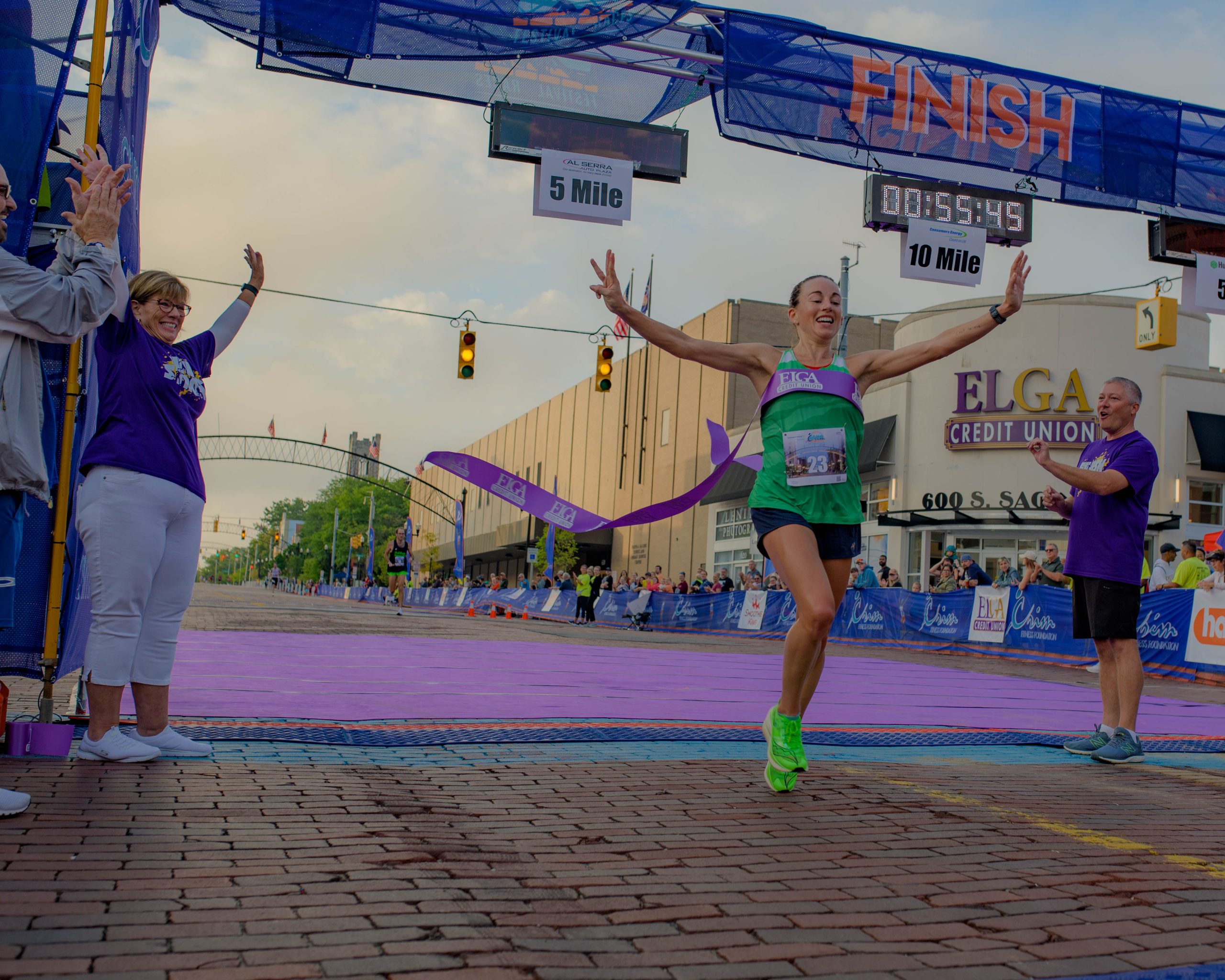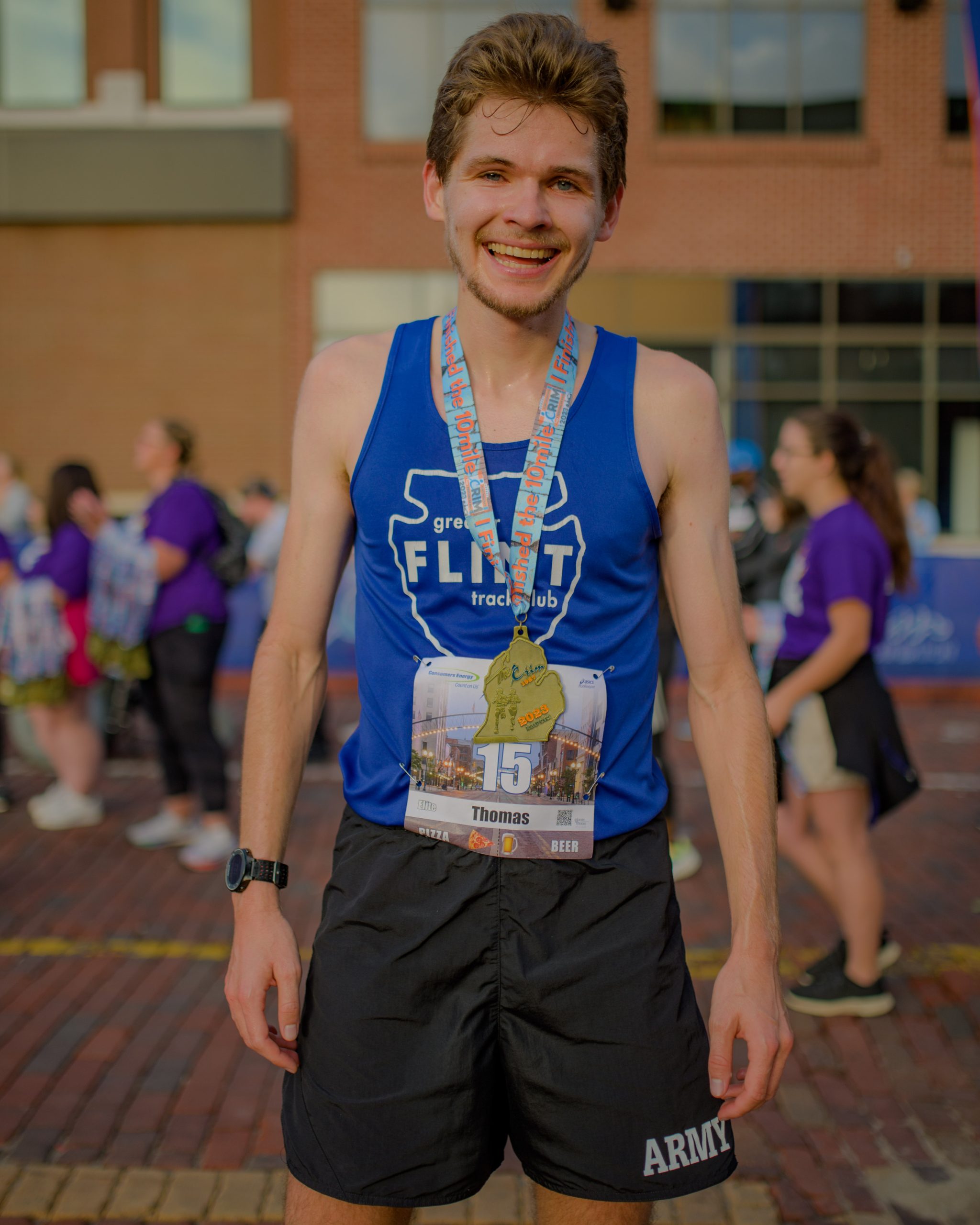 10-mile racers take off from the start line during the 46th annual HAP Crim Festival of Races in downtown Flint, Mich. on Saturday, Aug. 26, 2023. (Michael Indriolo | Flint Beat)Thomas Mueller poses for a photo ahead of the 10-mile race during the 46th annual HAP Crim Festival of Races in downtown Flint, Mich. on Saturday, Aug. 26, 2023. (Michael Indriolo | Flint Beat)10-mile racers take off from the start line during the 46th annual HAP Crim Festival of Races in downtown Flint, Mich. on Saturday, Aug. 26, 2023. (Michael Indriolo | Flint Beat)10-mile racers head down Saginaw Street during the 46th annual HAP Crim Festival of Races in downtown Flint, Mich. on Saturday, Aug. 26, 2023. (Michael Indriolo | Flint Beat)Hand cyclist Steve Trahey gives a thumbs up as he crosses the finish line during the 46th annual HAP Crim Festival of Races in downtown Flint, Mich. on Saturday, Aug. 26, 2023. (Michael Indriolo | Flint Beat)Sydney Devore finishes first for women in the 10-mile during the 46th annual HAP Crim Festival of Races in downtown Flint, Mich. on Saturday, Aug. 26, 2023. This marks her third consecutive first-place finish at the Crim. (Michael Indriolo | Flint Beat)