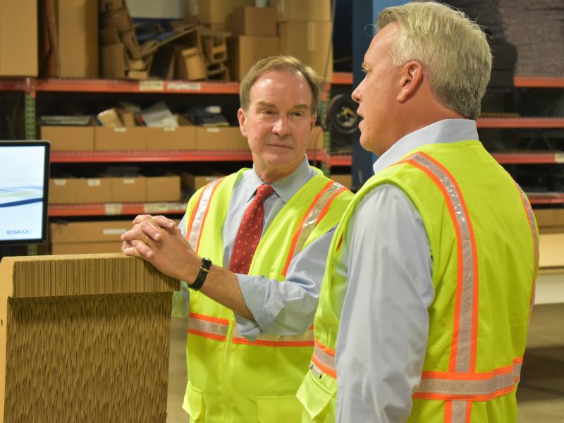 NorthGate, which hosted the tour, designs customized cardboard boxes for their clients. Because packaging is inexpensive for clients to purchase, the company’s top officials say they simply don’t have the funds necessary to pay most employees a livable wage – but they have a system in place to get their dedicated workers into higher paying jobs.