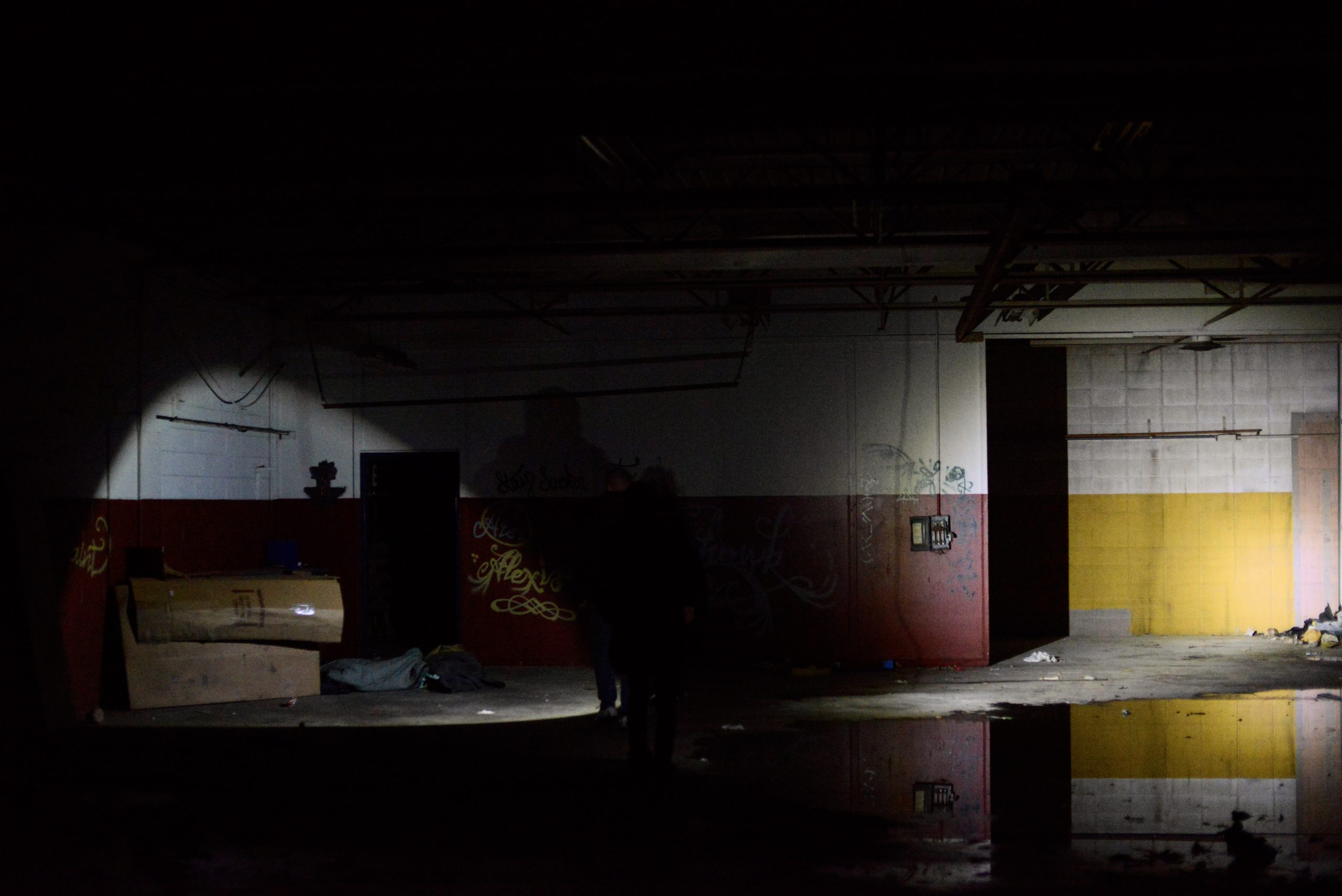 One group headed first toward an abandoned property nearby. Outreach workers on the team had previously checked in on the spot a handful of times, given a makeshift shelter and blankets they had seen inside the building. Like before, there wasn’t anyone in the building on Wednesday night.