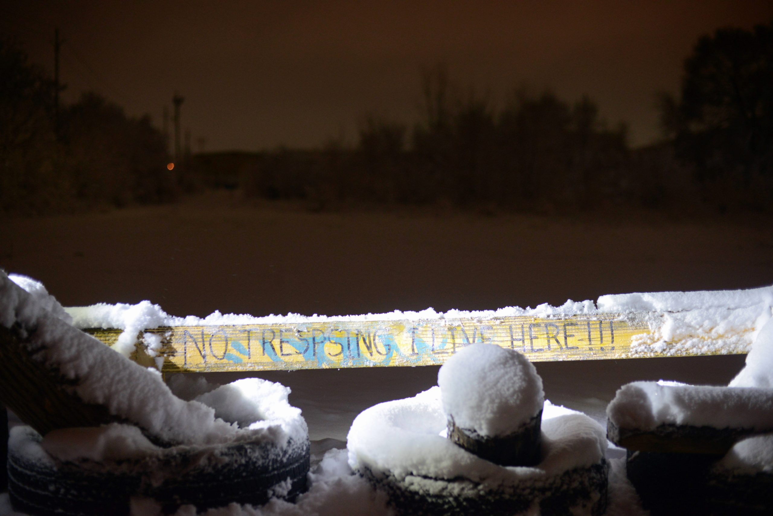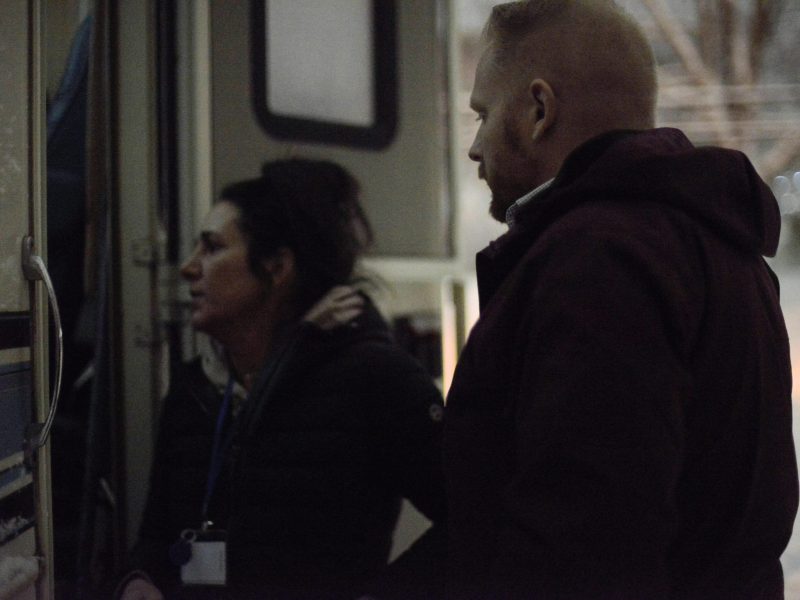 Inside the snow-covered RV sat a small group of individuals. The team greeted the group, handed out donated food and personal hygiene items, and explained that they were hoping to ask a few survey questions for a count of people experiencing homelessness.