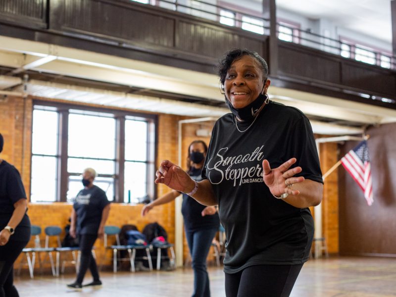 Flint, MI– There are twenty other women around Delois Jackson following her steps and sways and snaps in a recreation room in Berston Field House–but she doesn’t see them.