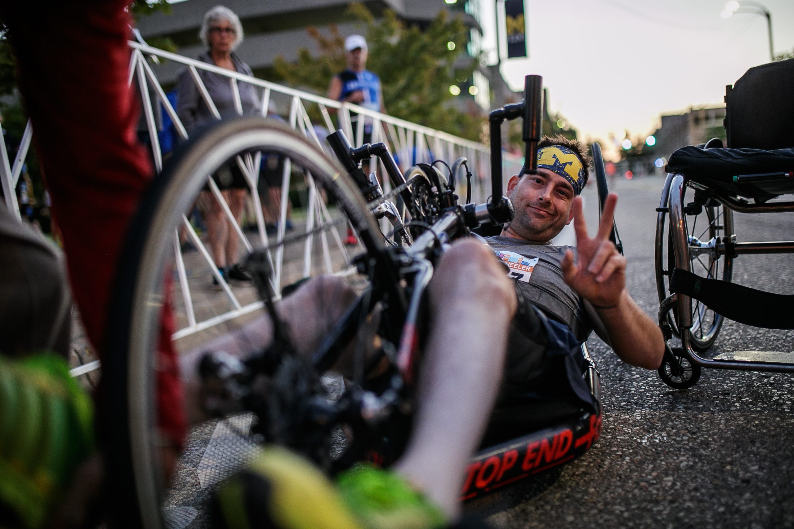For Douglas Edmonson, the morning trek to the starting line was all too familiar. Edmonson, 35, has been competing in the 10-mile wheel Crim for 12 years. Accompanying him to the starting line was his grandfather Bernie Mieslike who has helped him into his handcycle and gear every year.
