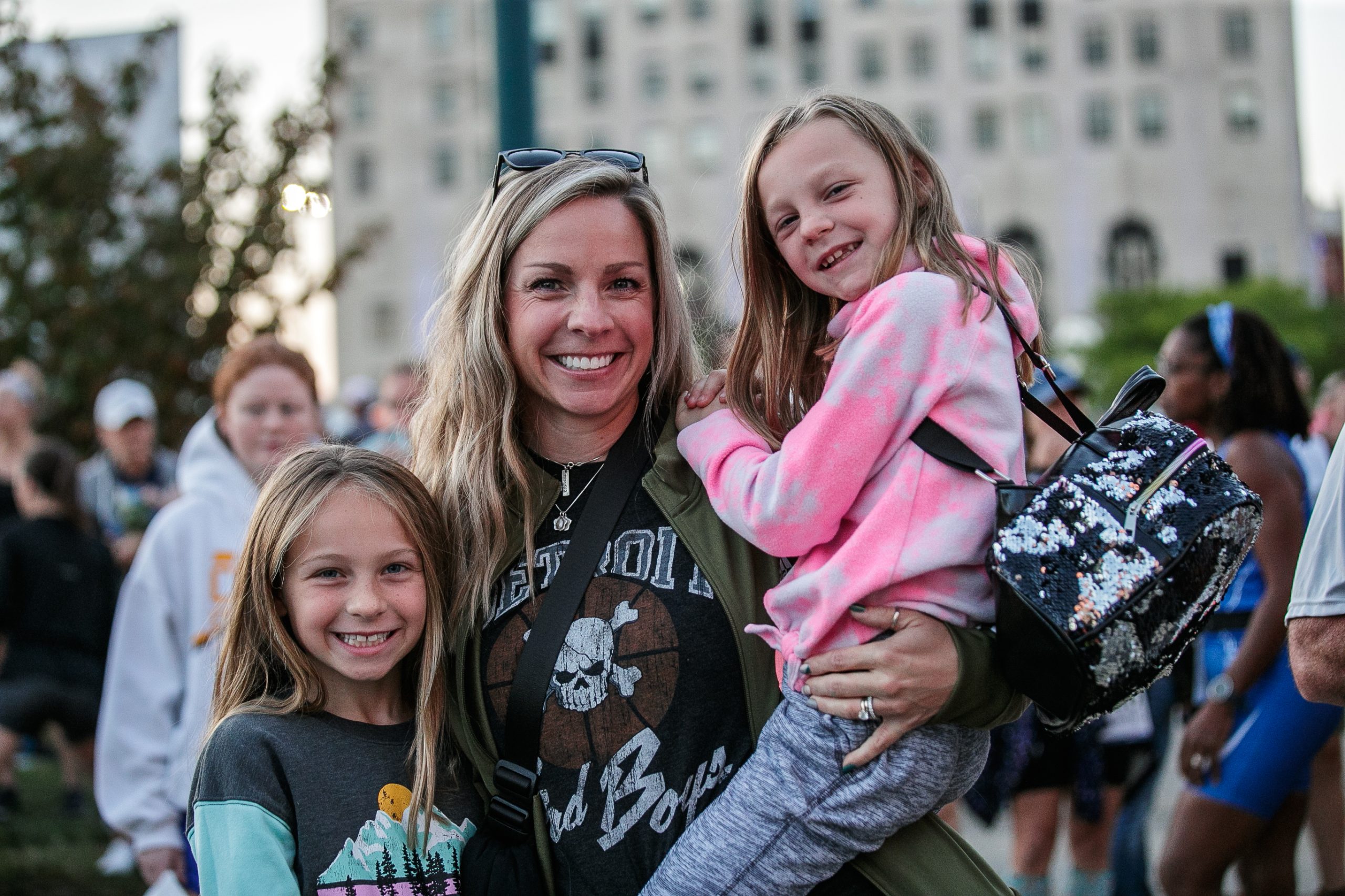 Crim participants dressed up as Carebears poses for a photo during the 45th annual Crim Festival of Races on Saturday, Aug. 27, 2022 in downtown Flint. (Jenifer Veloso | Flint Beat)Kelli Renee, while waiting for her husband to line up on the starting line for the 10 mile run, poses for a portrait with her two daughters during the 45th annual Crim Festival of Races on Saturday, Aug. 27, 2022 in downtown Flint. (Jenifer Veloso | Flint Beat)