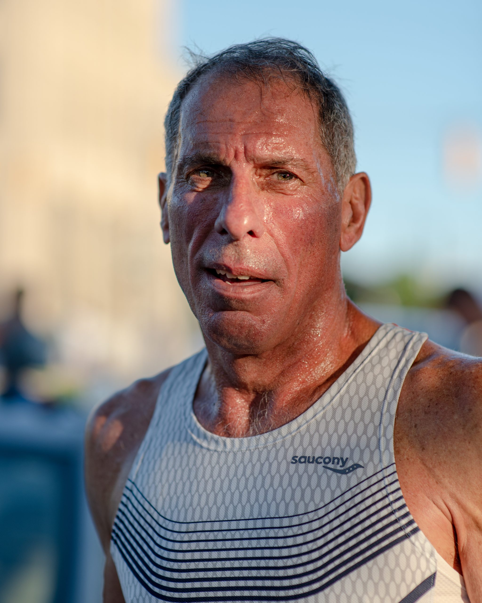 Ed LaBair poses for a photo after finishing 9th in the Michigan Mile, a race in the Crim Festival of Races, in Downtown Flint, Mich. on Friday, Aug. 26, 2022. LaBair, who is now 62 years old, has been running since he was in fourth grade, he said. (Michael Indriolo | Flint Beat)