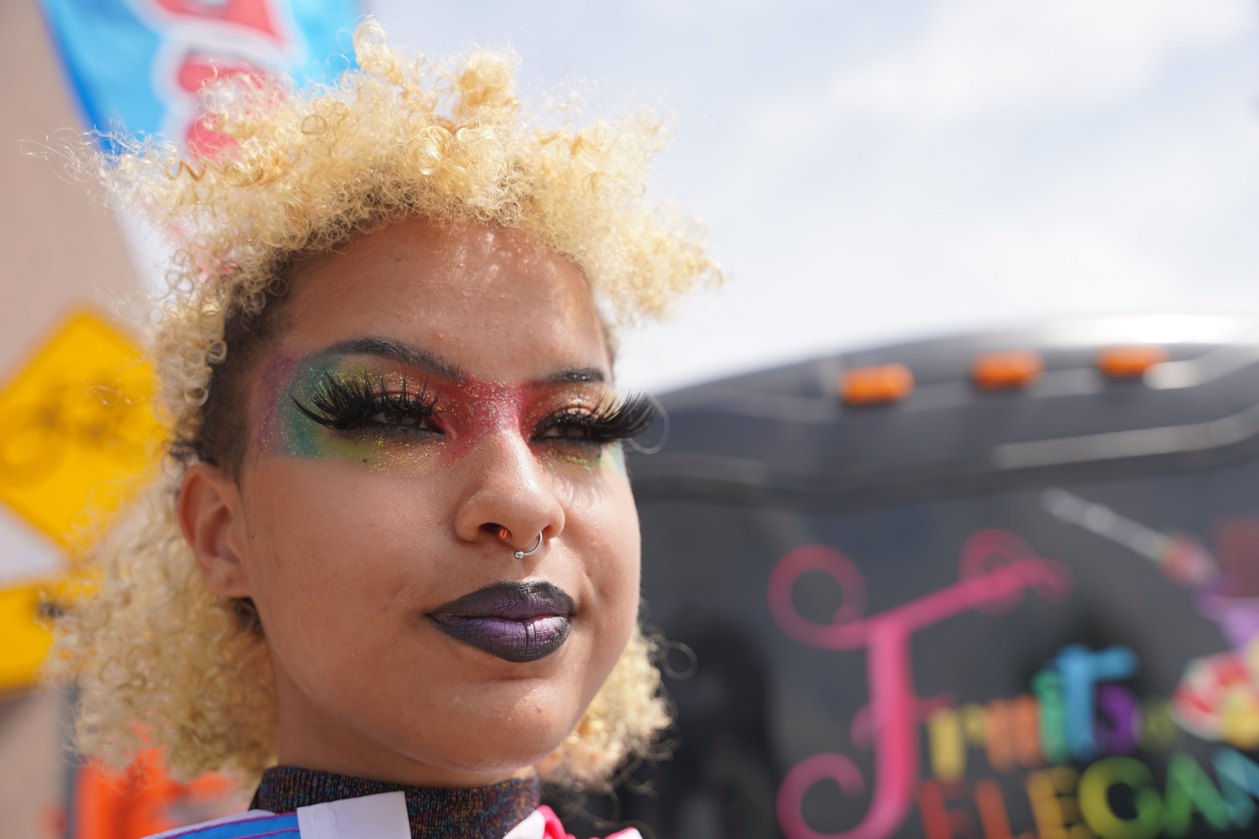 A woman pictured at the 14th annual Flint Pride Festival in Riverbank Park on June 29, 2024. (Joshua Johnson | Flint Beat)