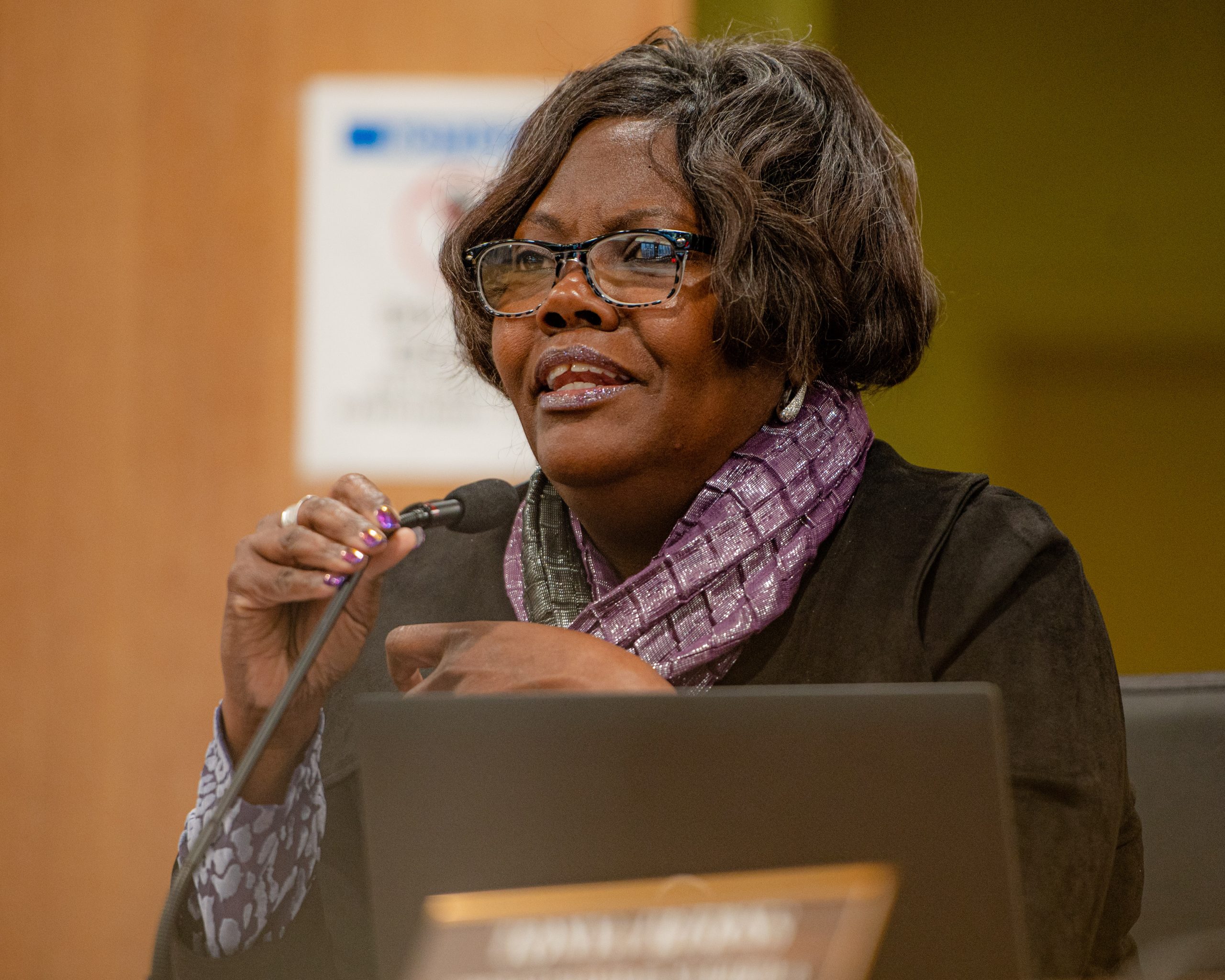 Flint City Council member Jerri Winfrey-Carter speaks during a Flint City Council meeting at Flint City Hall on Monday, March 13, 2023. (Michael Indriolo | Flint Beat)