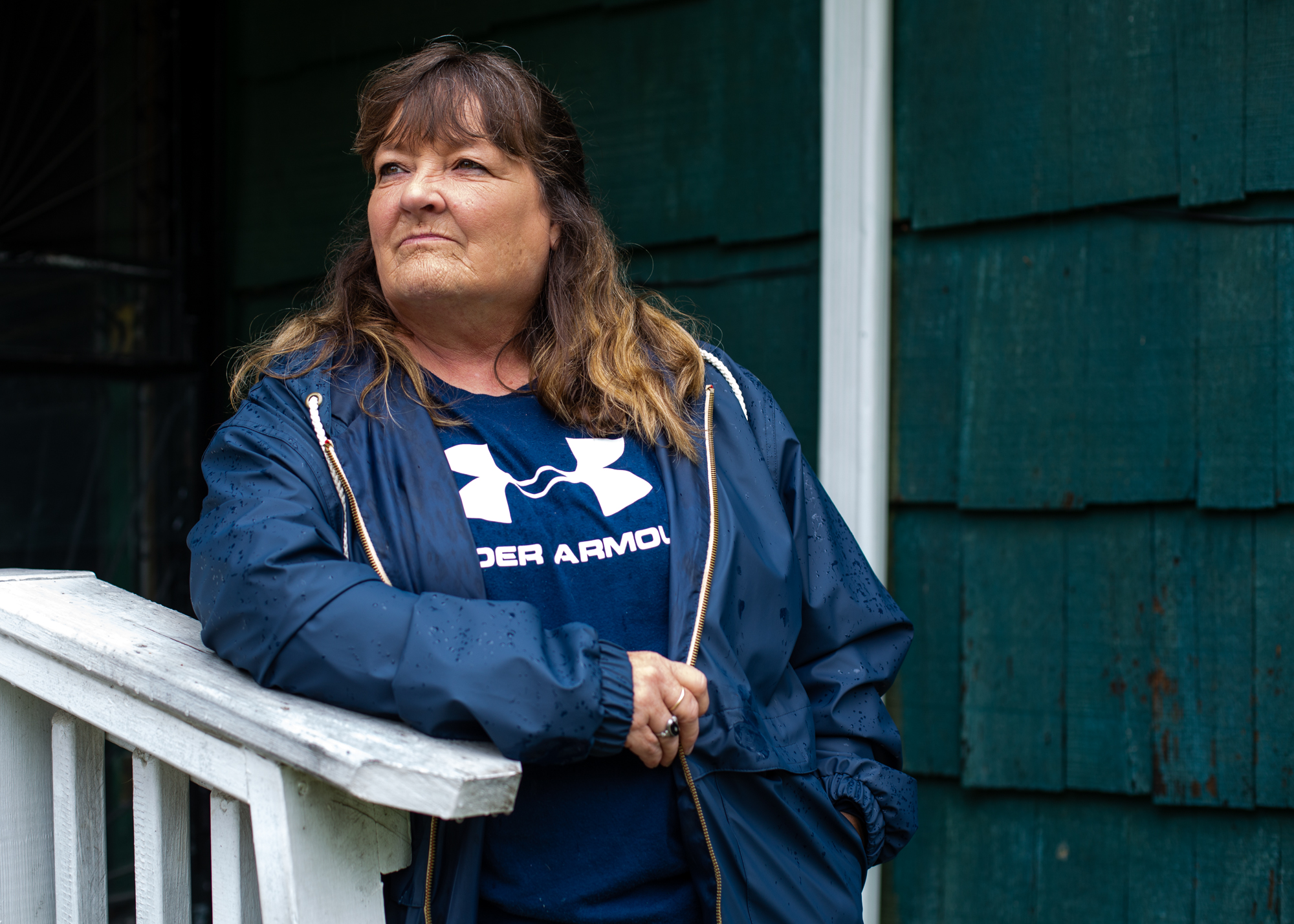 Flint resident Annette Reynolds has been hearing a mysterious ‘boom’ sound in her Third Ward neighborhood on occasion over the last two years. She on her front porch on May 25, 2022, a day after she heard the sound once again. (KT Kanazawich | Flint Beat)