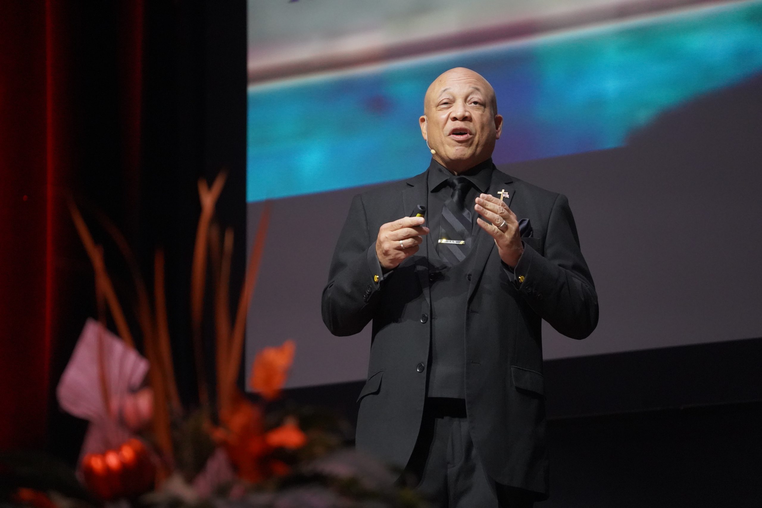Mayor of Flint Sheldon Neeley speaks at the State of the City address held at the Capitol Theatre in downtown Flint, Mich. on November 12, 2024. (Joshua Johnson | Flint Beat)