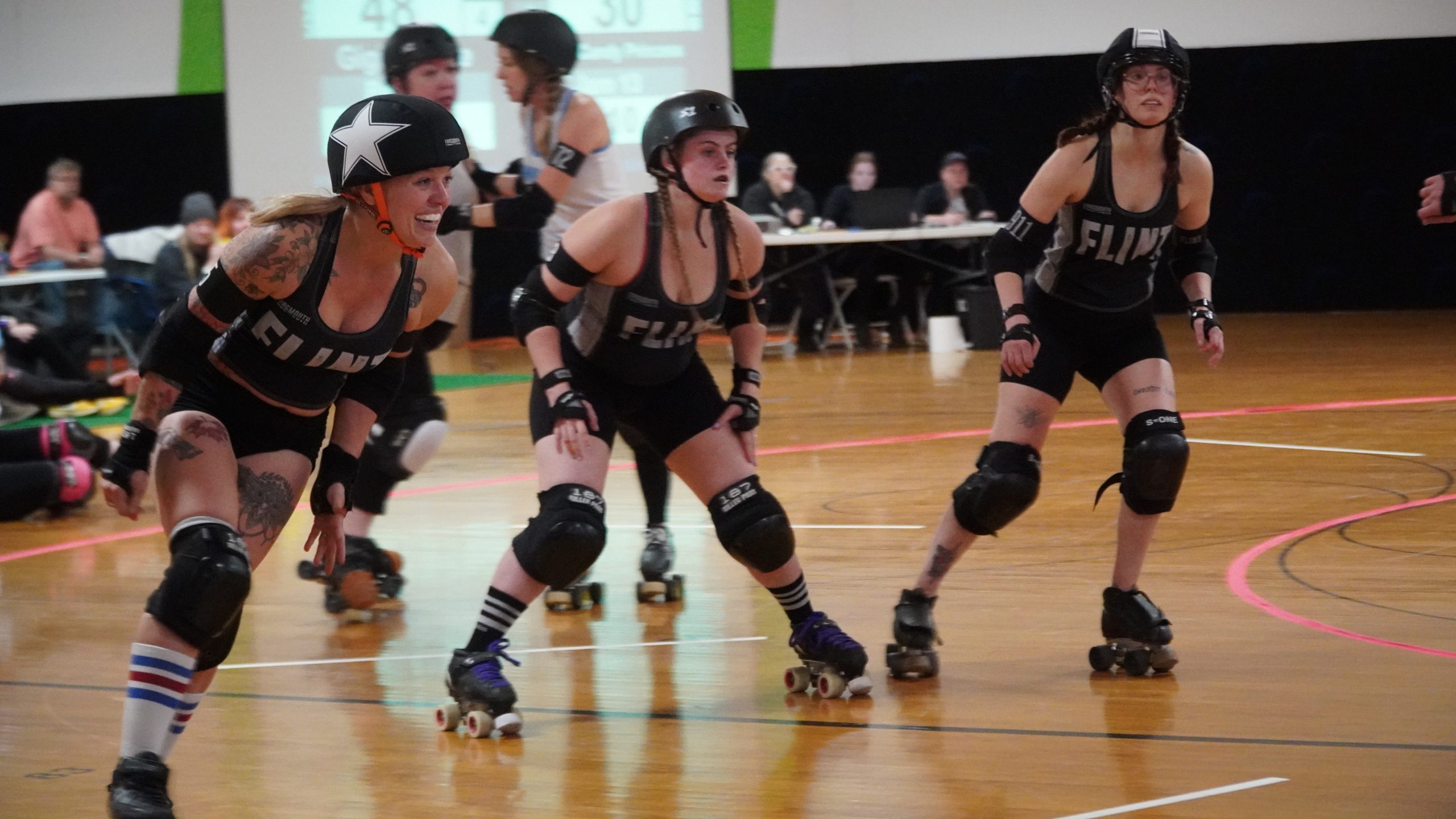 Flint Roller Derby competes against the Downriver Dolls at Rollhaven in Grand Blanc, Mich. on Sunday, Nov. 20, 2022. (Joshua Johnson | Flint Beat)