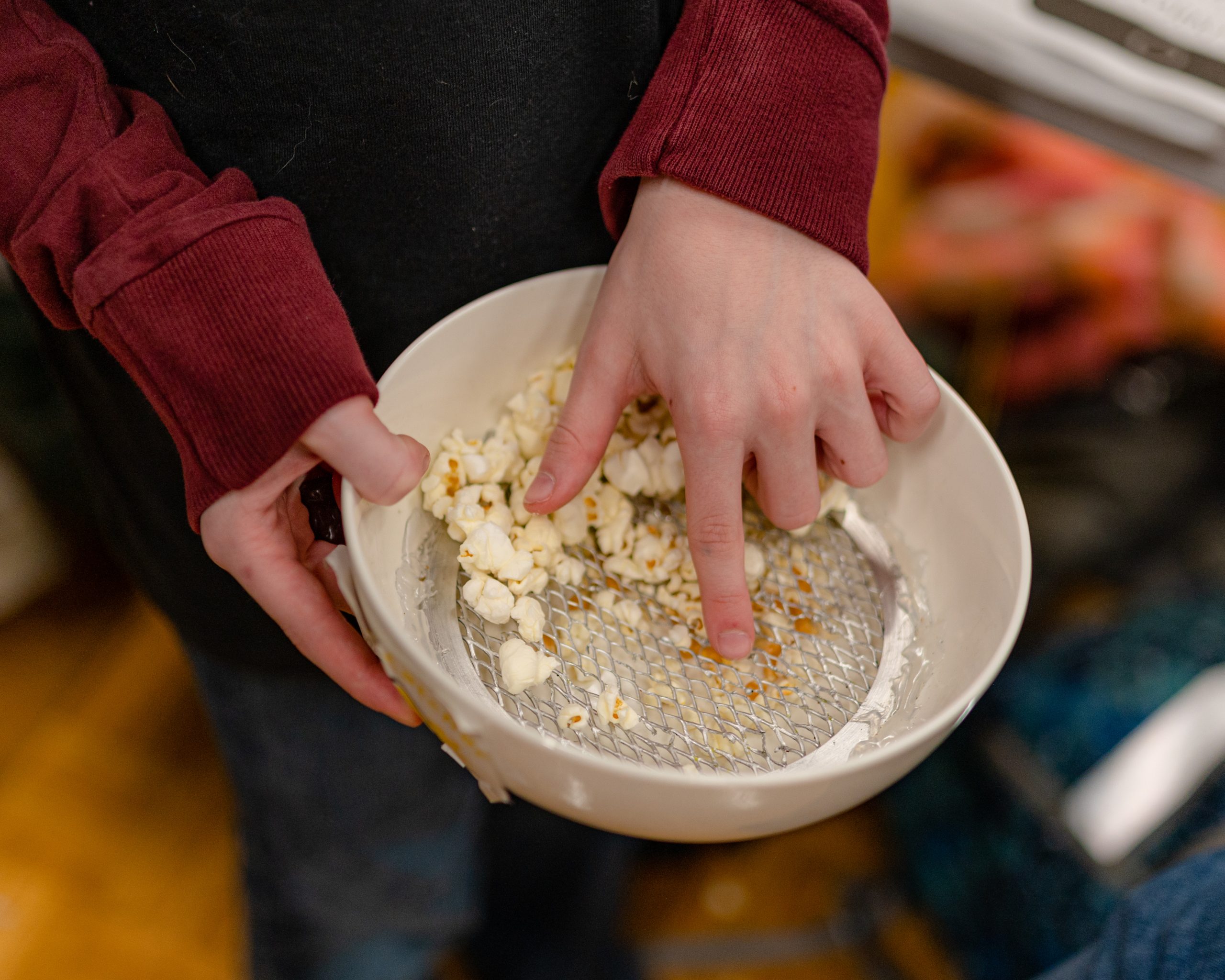 “They did a fantastic job,” Vallimont said. “They started off with problem-finding in their journey and as part of that, they went through a couple ideas. Watching movies and eating popcorn was one of their favorite things to do. So, they were looking upon trying to improve getting more actual popcorn that they can eat and not stuff their hand in a bunch of kernels.”