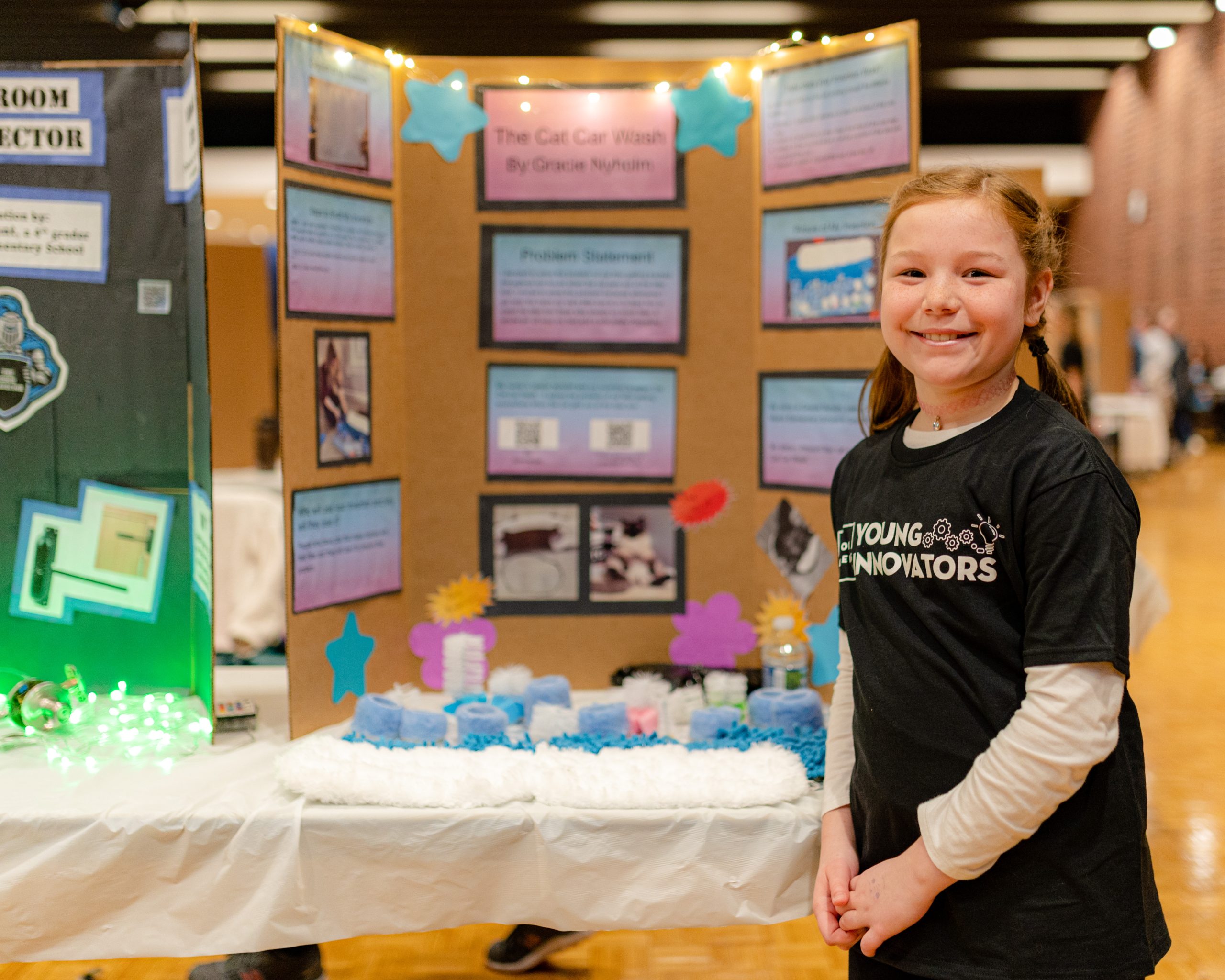 For Gracie Nyholm, her cat Theodore’s litter-spreading was the problem to solve in her family’s home. So, the fourth grader at Myers Elementary School in Grand Blanc created “The Cat Car Wash” to help address the issue.